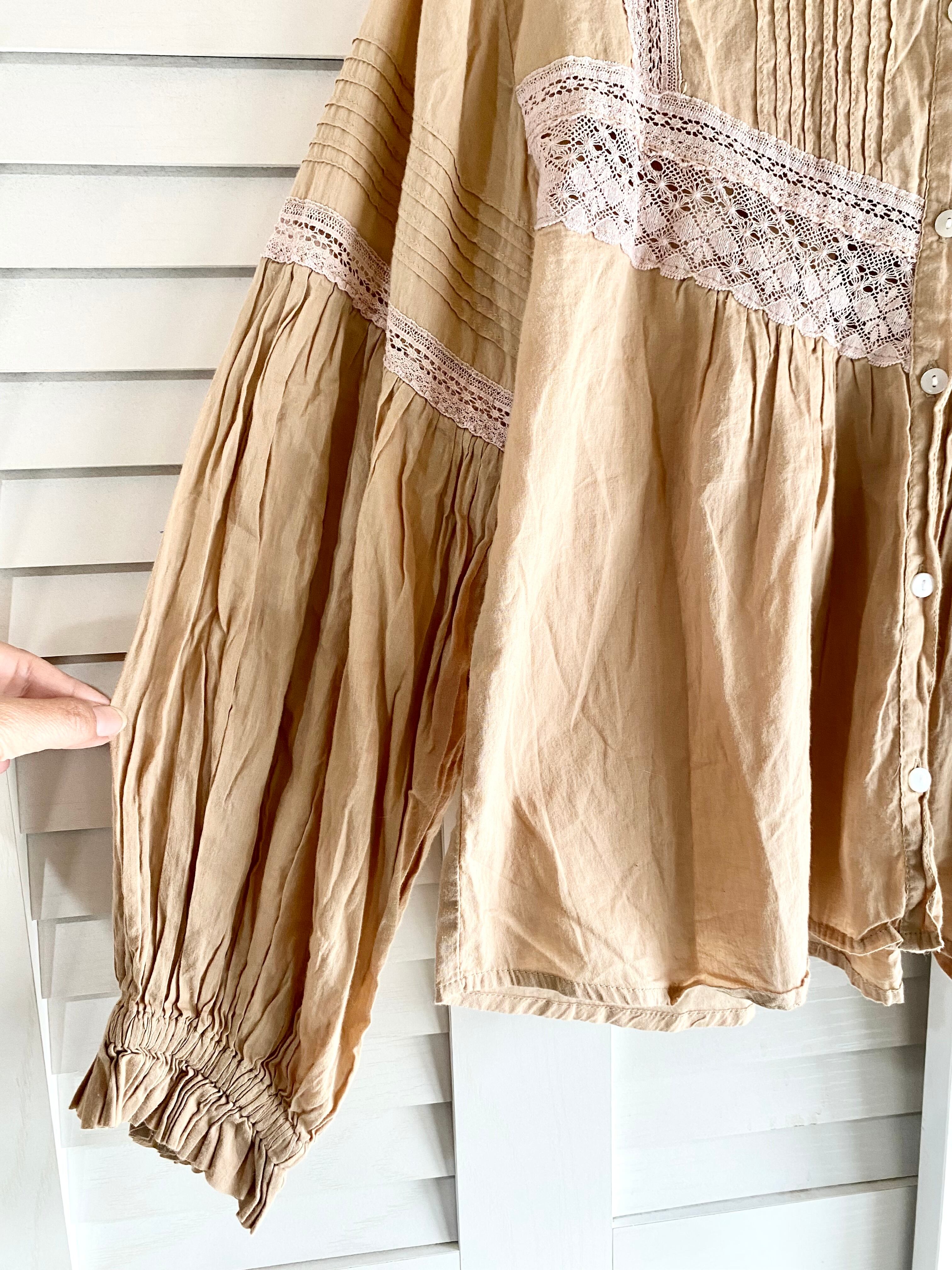 #197 select MOCA ピンタック&アンティークレース バルーンスリーブクラシカルブラウス イエローベージュ