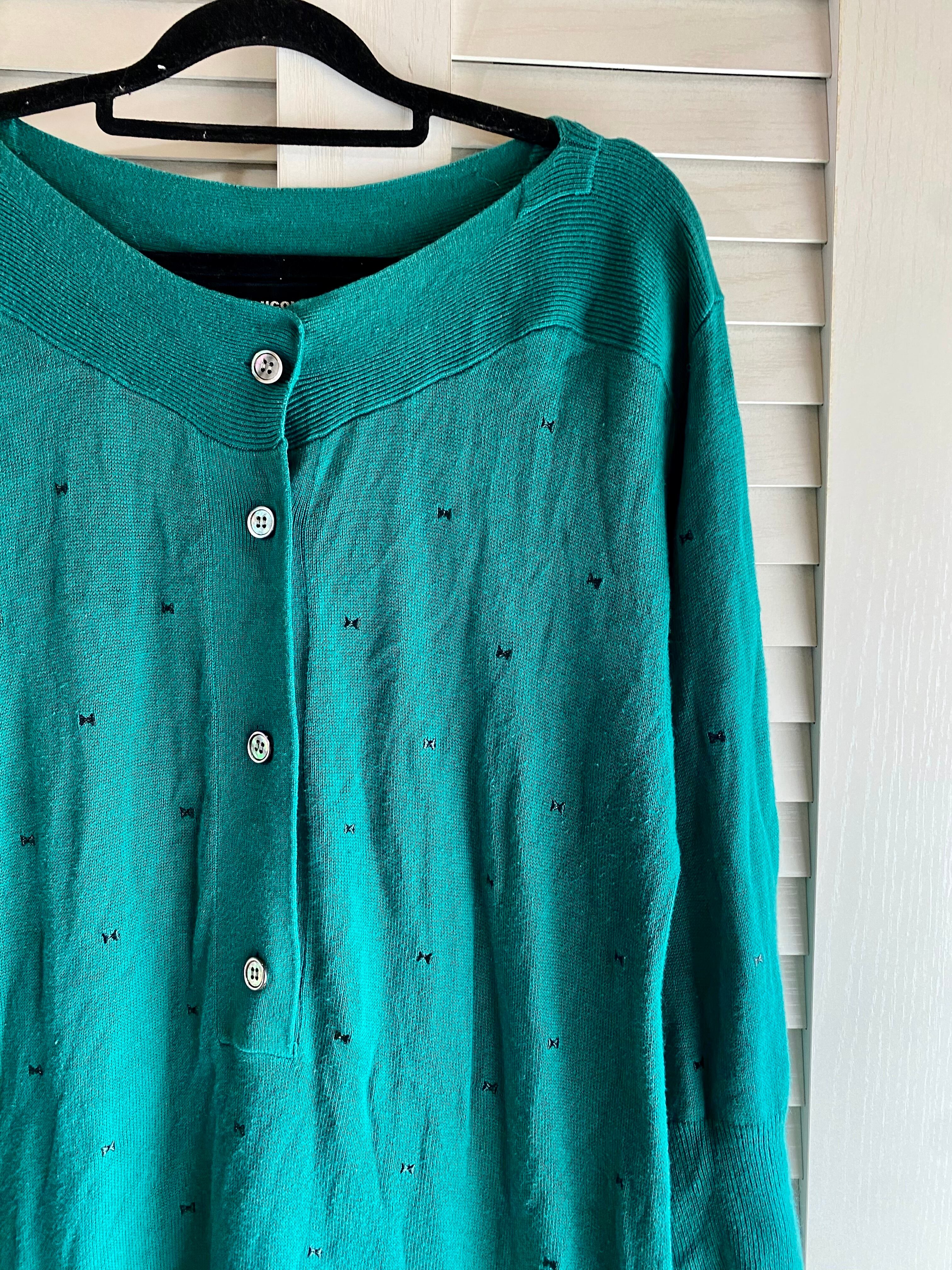#197 mercibeaucoup, リボンドット刺繍 コットンレーヨンニットワンピ エメラルドグリーン