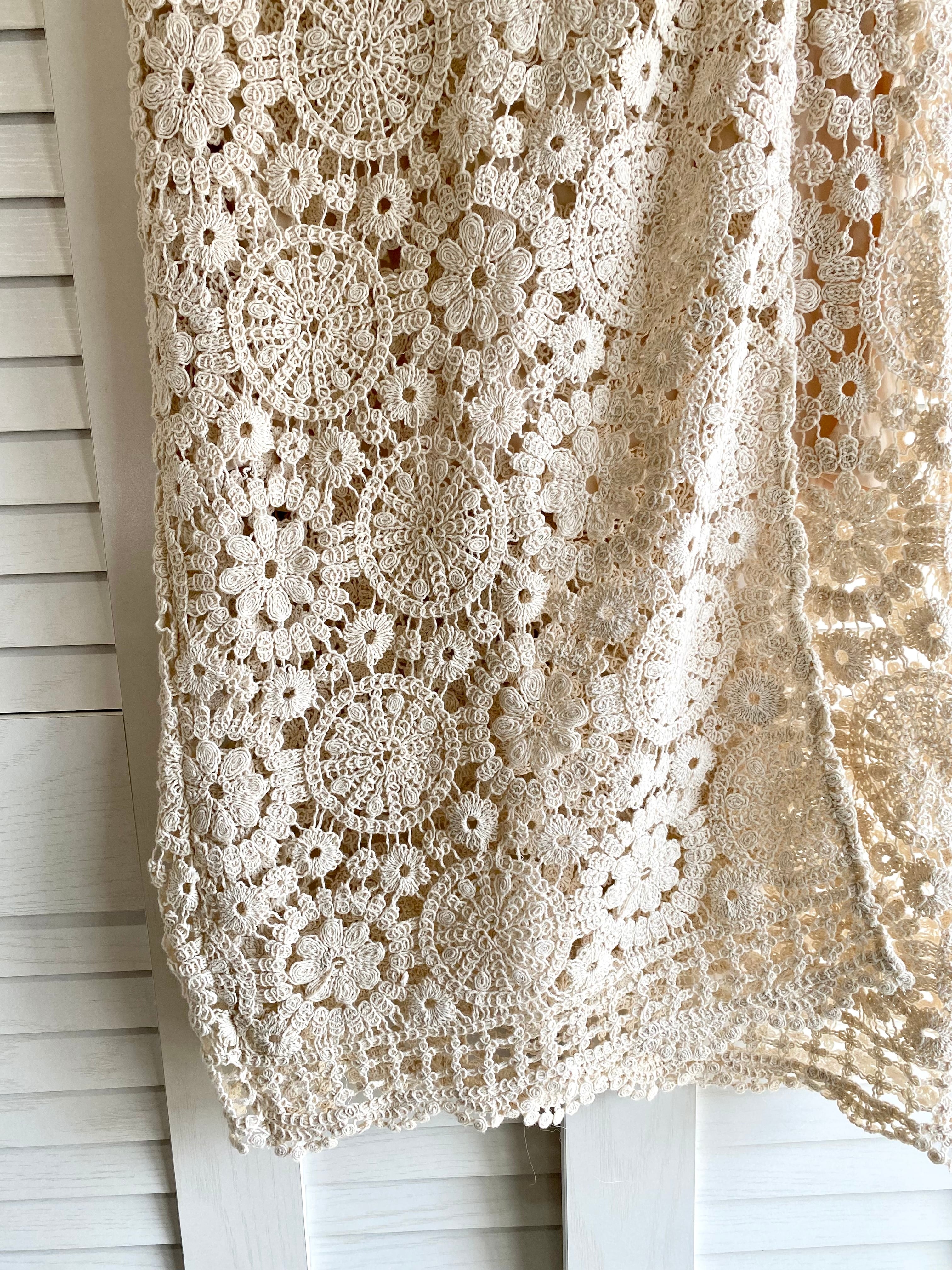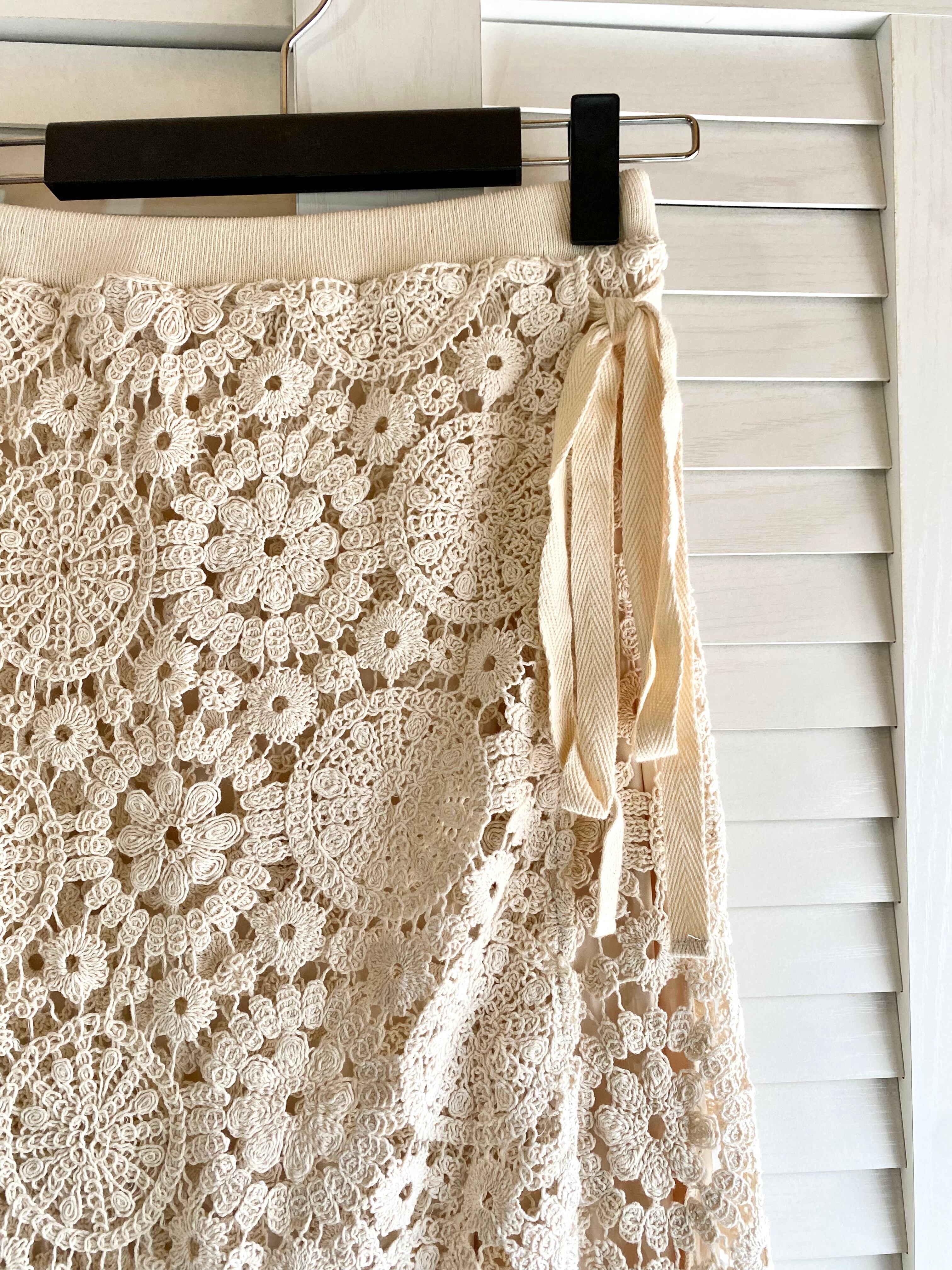#198 LOWRYS FARM 総レース ラップ風カギ編みレースロングスカート アイボリー