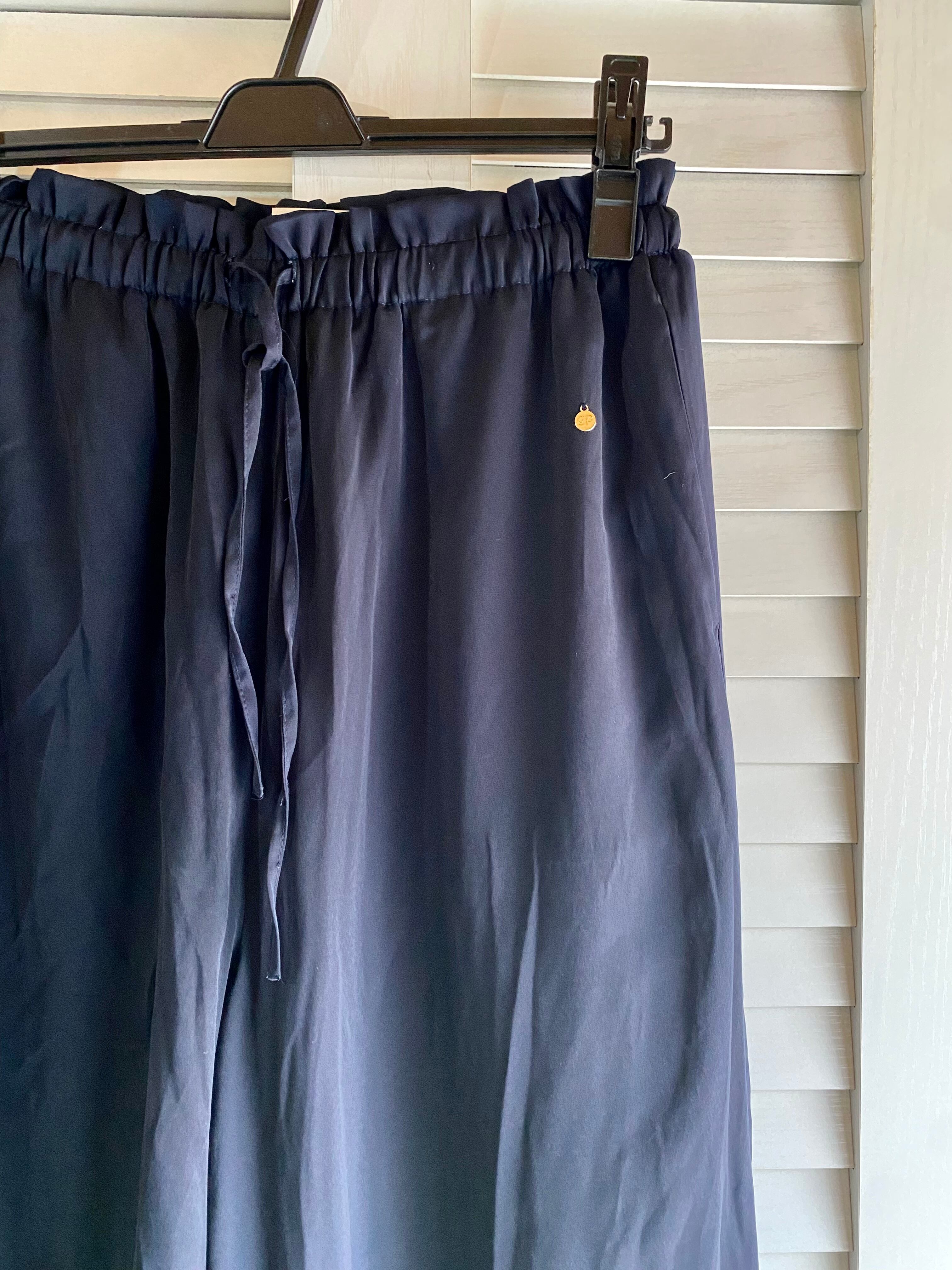 #198 gelato pique ランジェリーレース ヴィンテージサテン 裏地付きルーズワイドパンツ ネイビー