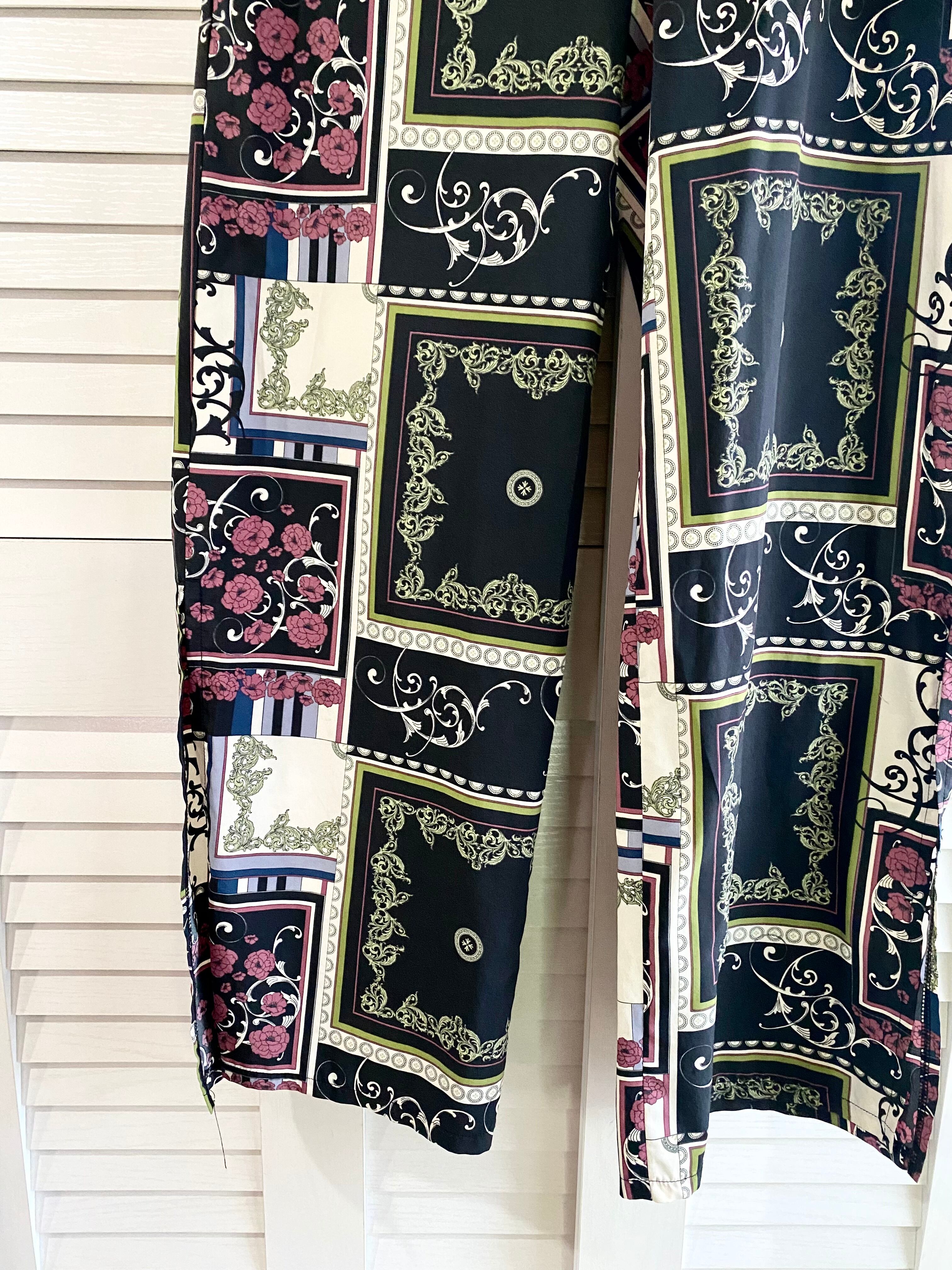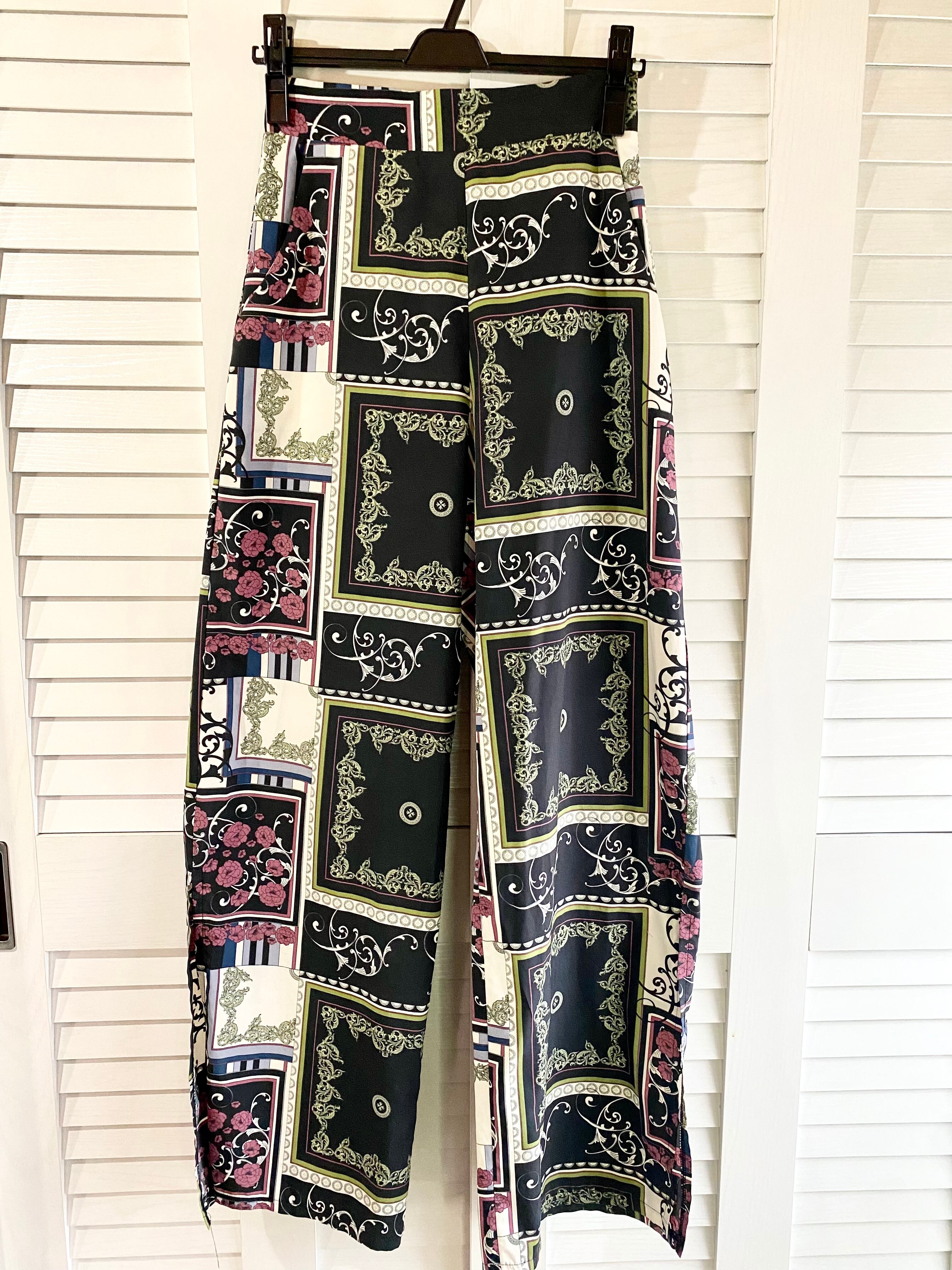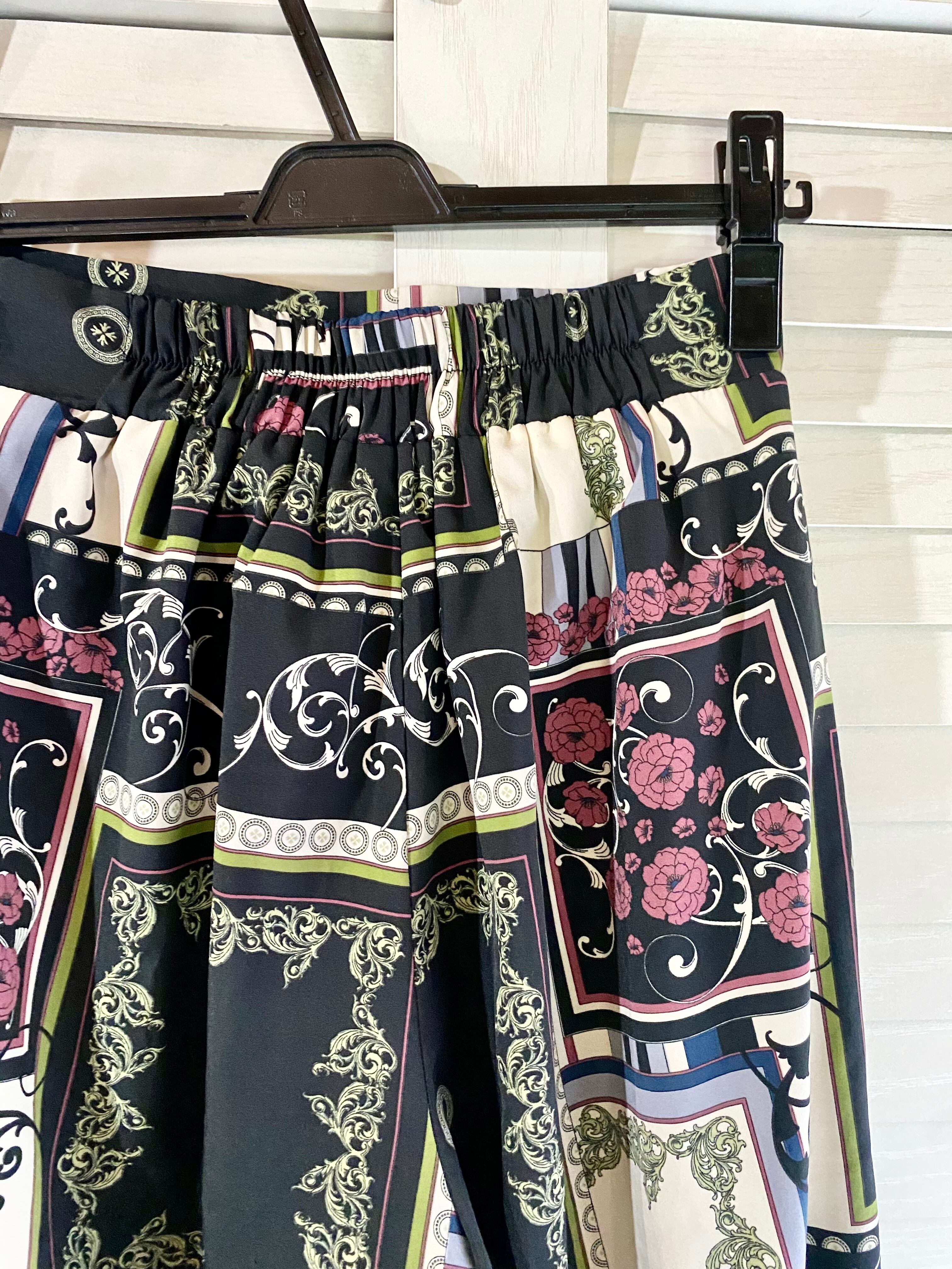 #200 BARAK ヨーロピアンアンティークパネルプリントワイドパンツ ブラック