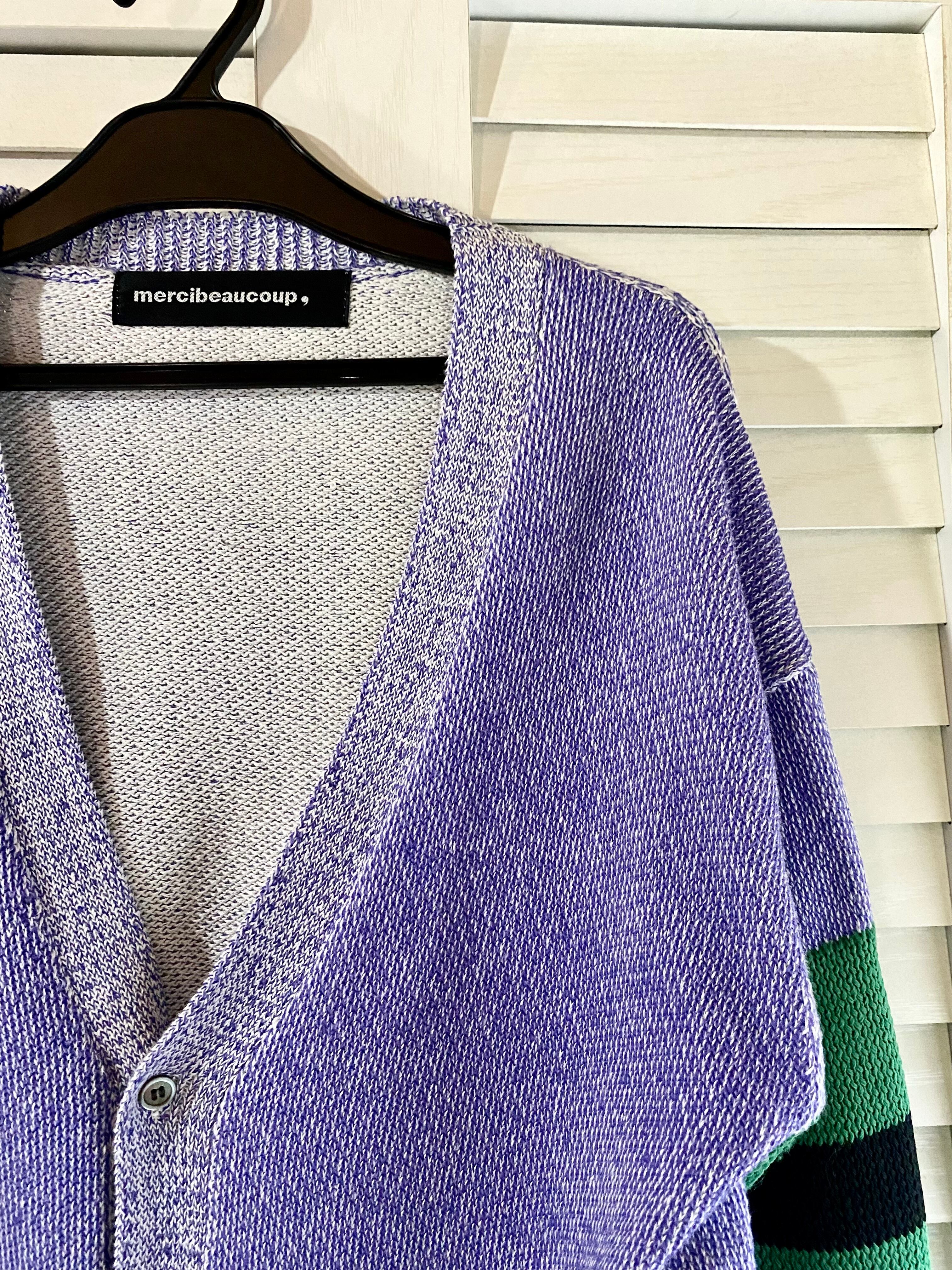 #200 mercibeaucoup, ライン切替 ジャガードコットンニットカーデ パープル