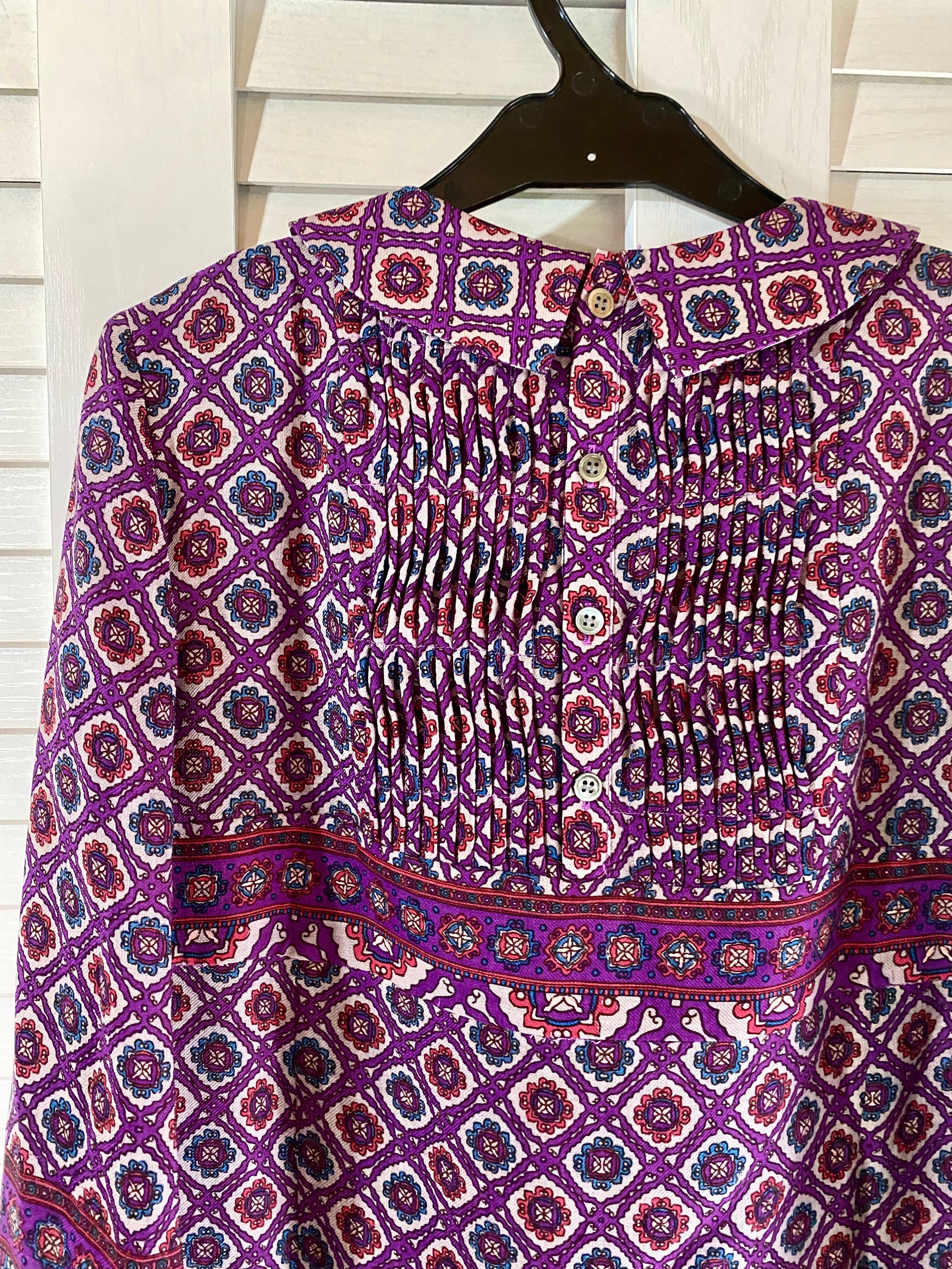 #201 SUNAOKUWAHARA クールウール 総柄ピンタック シャツカラーチュニックワンピ パープル