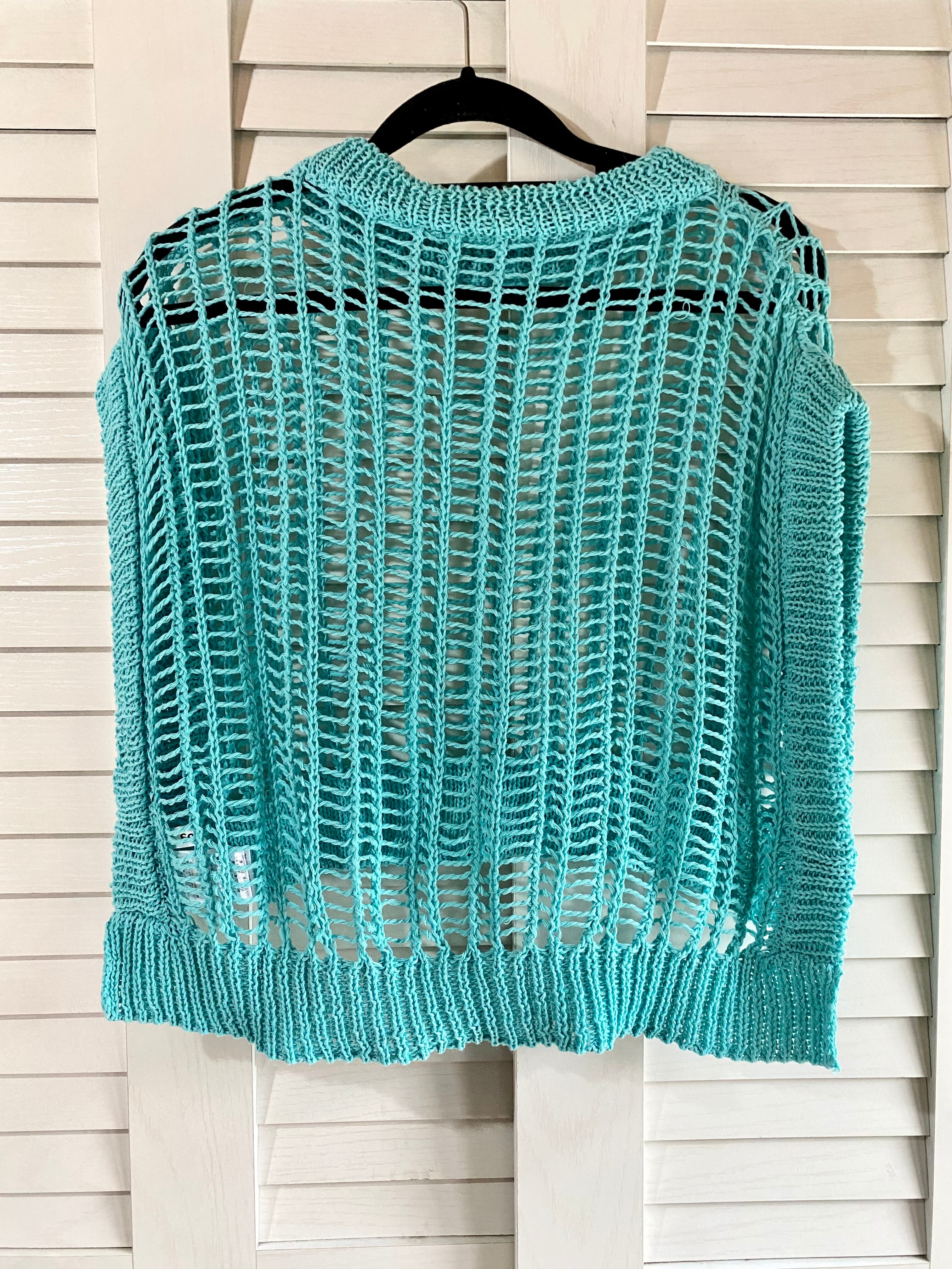 #201 Solace ショート丈 オーバーサイズメッシュニット ライトブルー