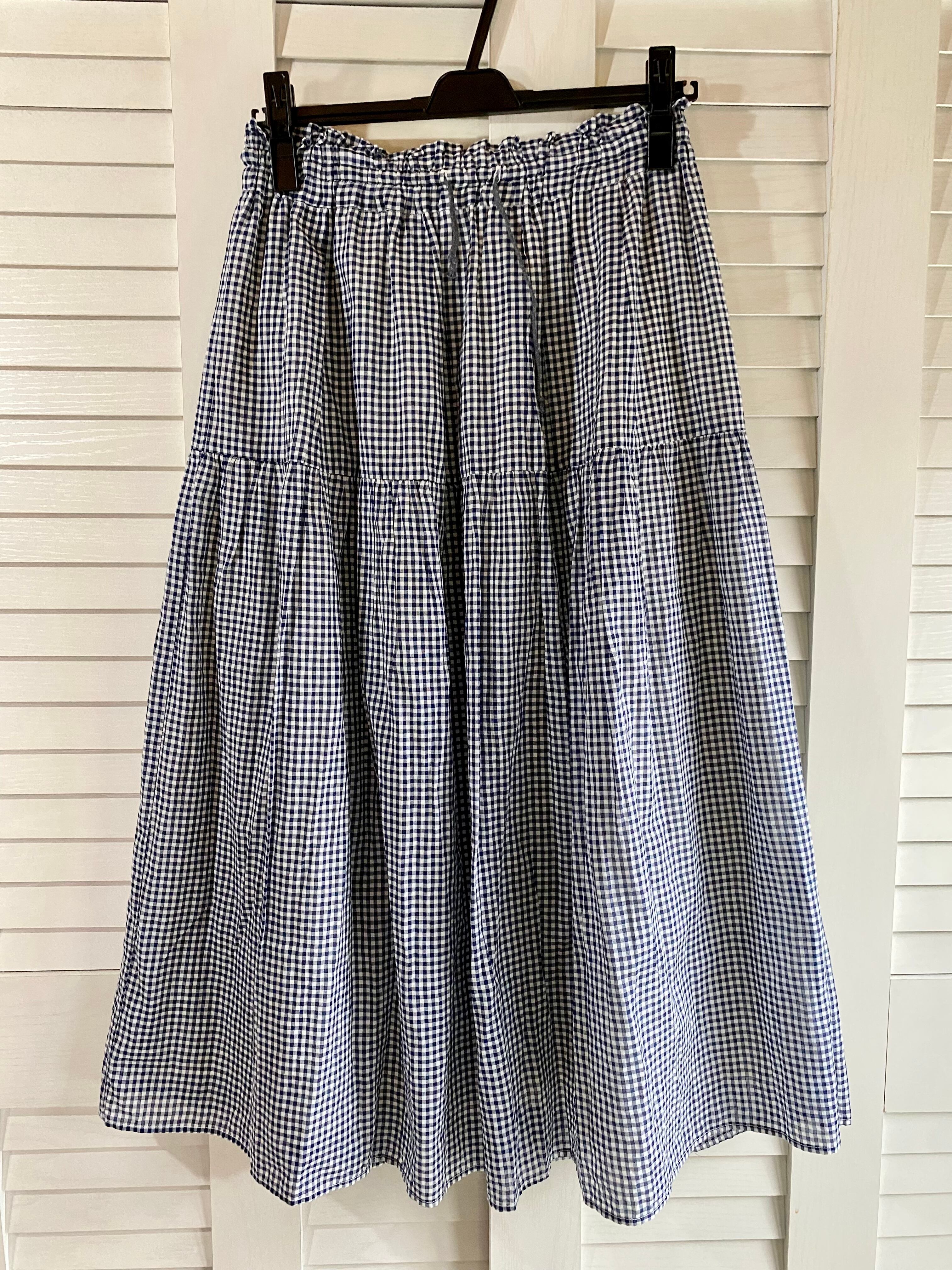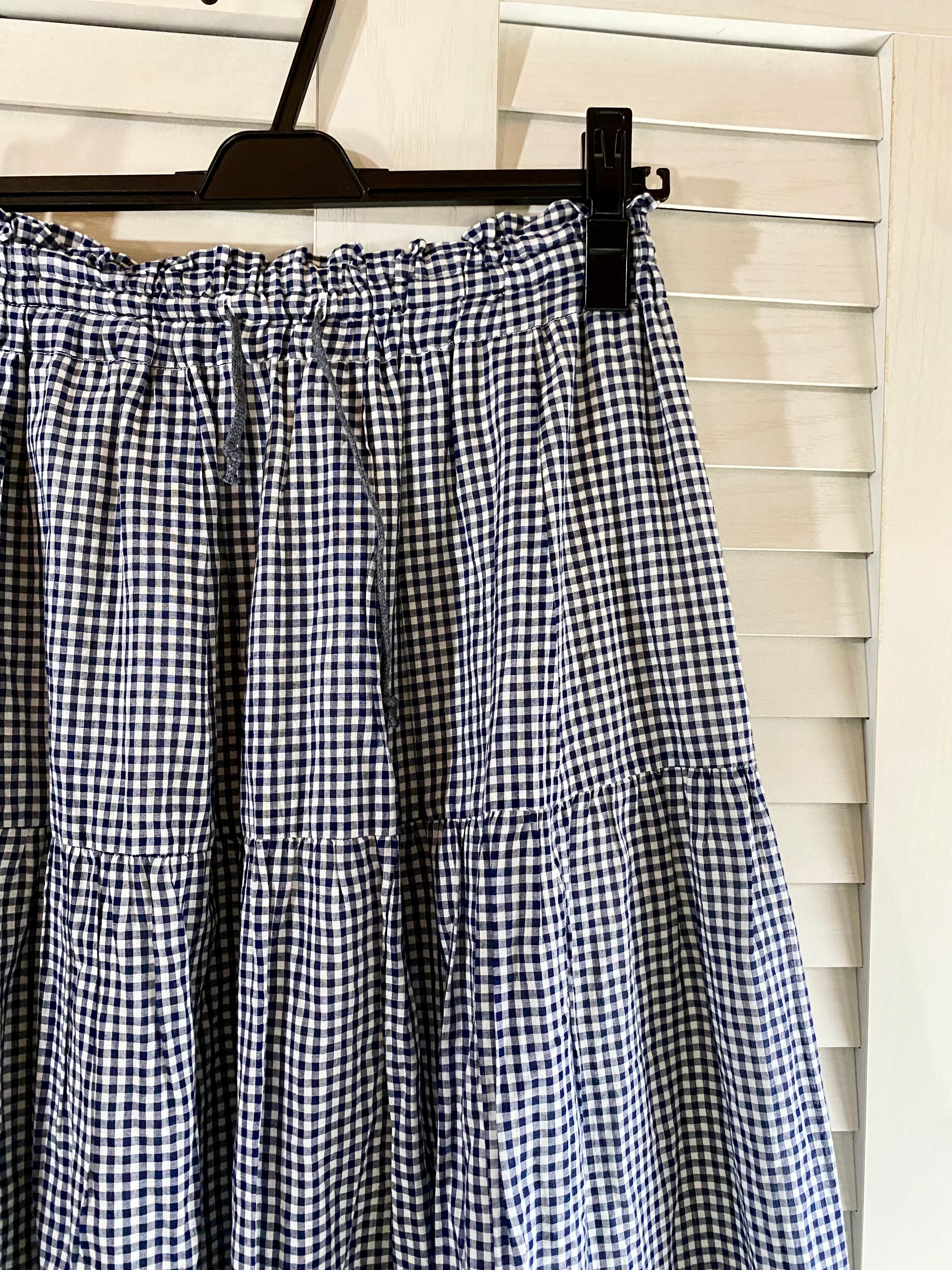 専用◎#201 DO!FAMILY 激レア!綿ローンギンガムチェック 2段ティアードボリュームスカート ネイビー