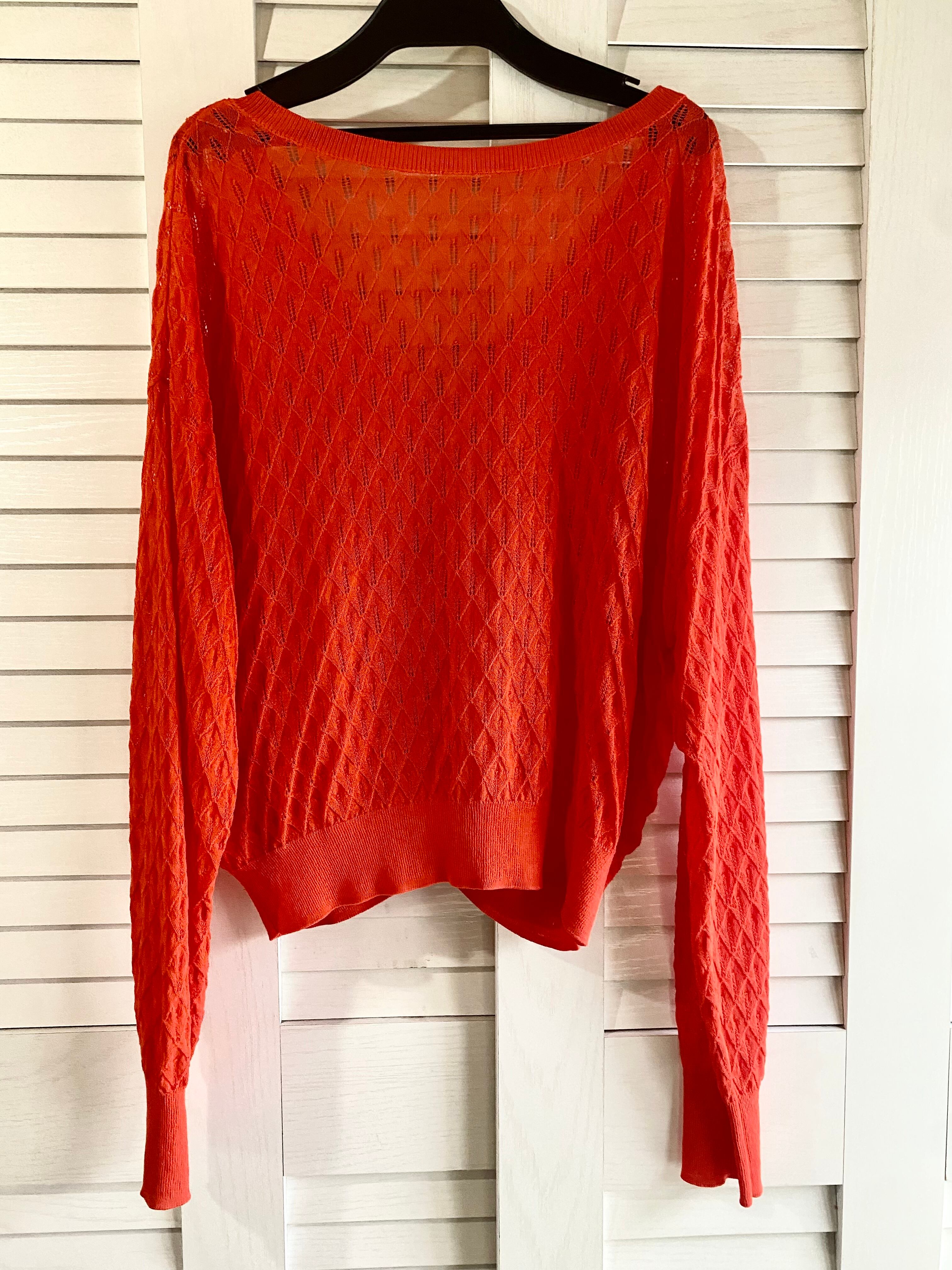 #202 KBF レーヨンナイロン リーフ針抜きニットカーデ レッド | お洋服屋さん 『GOKKO』