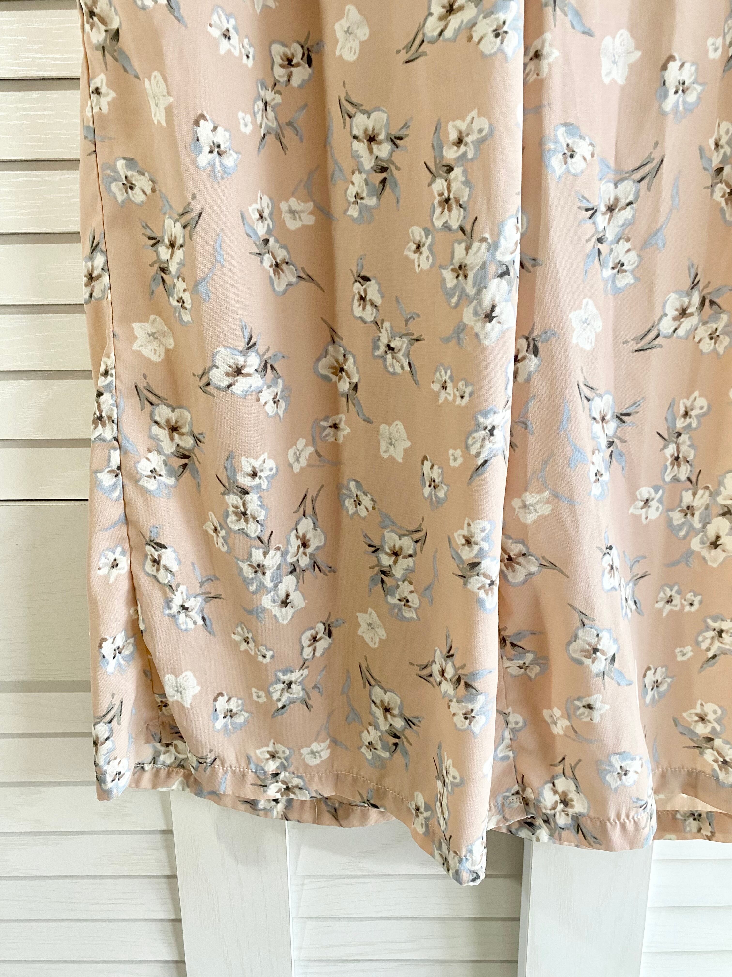 #202 E hyphen world gallery フラワージョーゼット ツータックワイドパンツ サーモンピンク