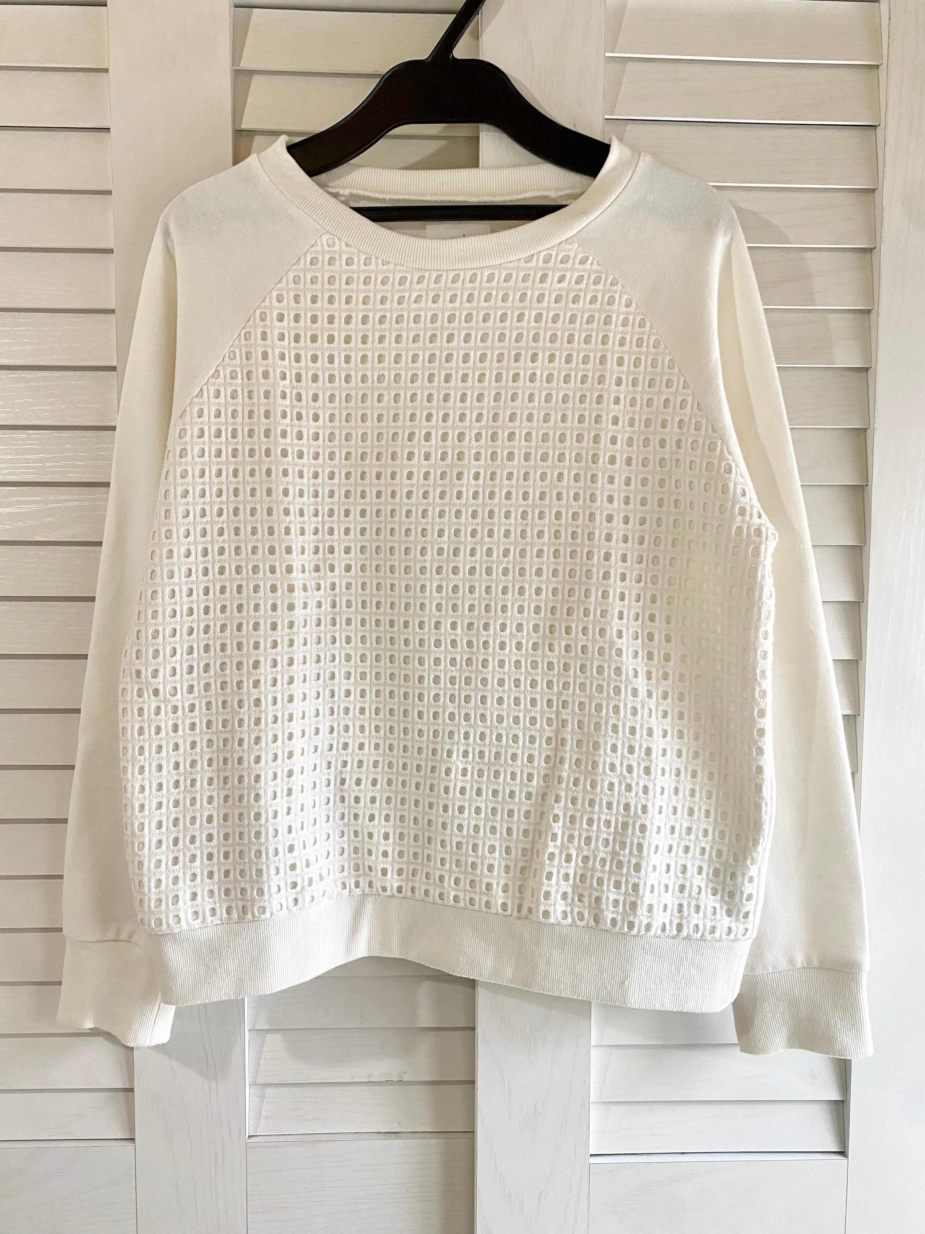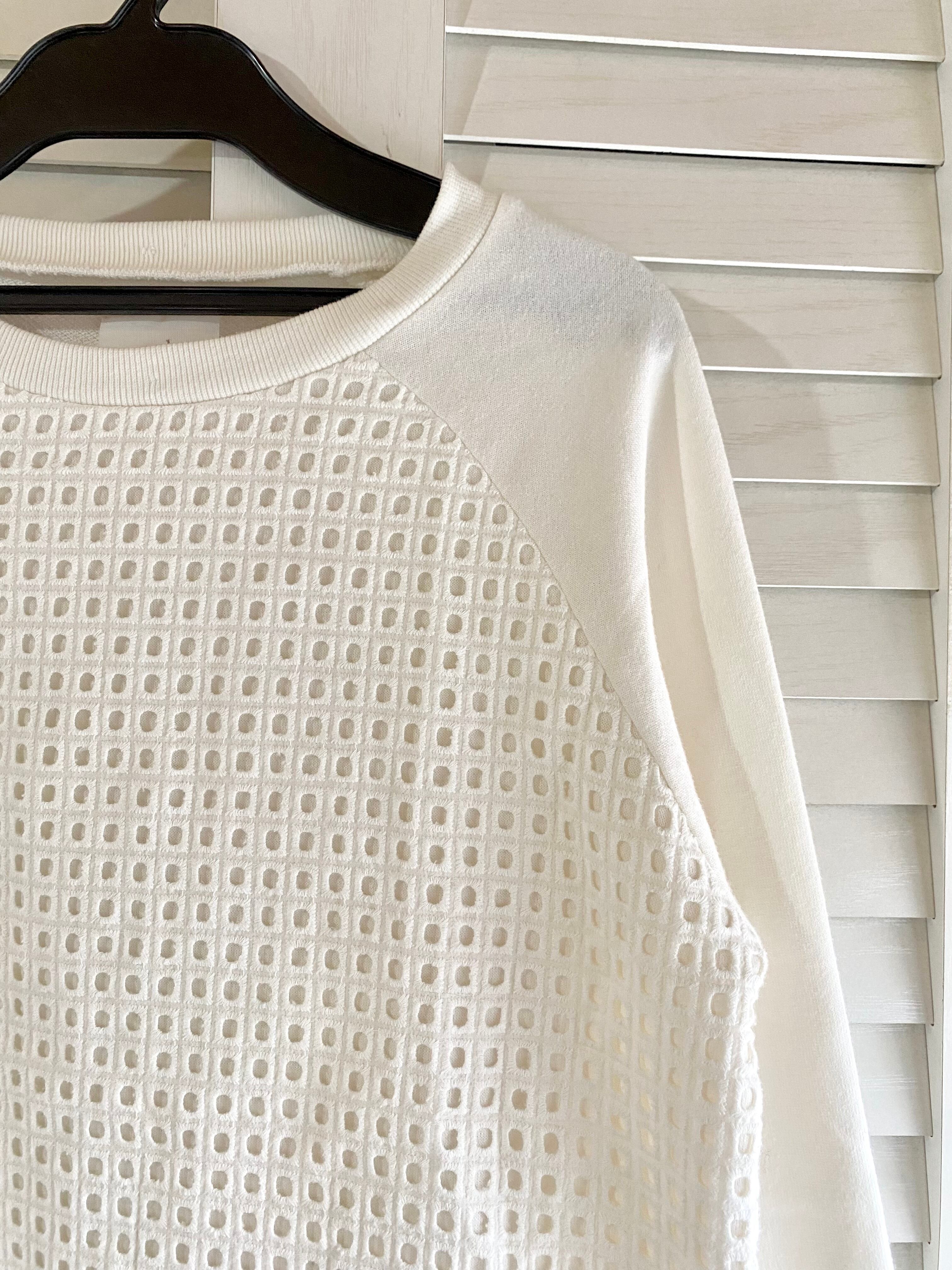 #202 a.g.plus スクエアカッティングレース切替 スウェットプルオーバートップス オフホワイト