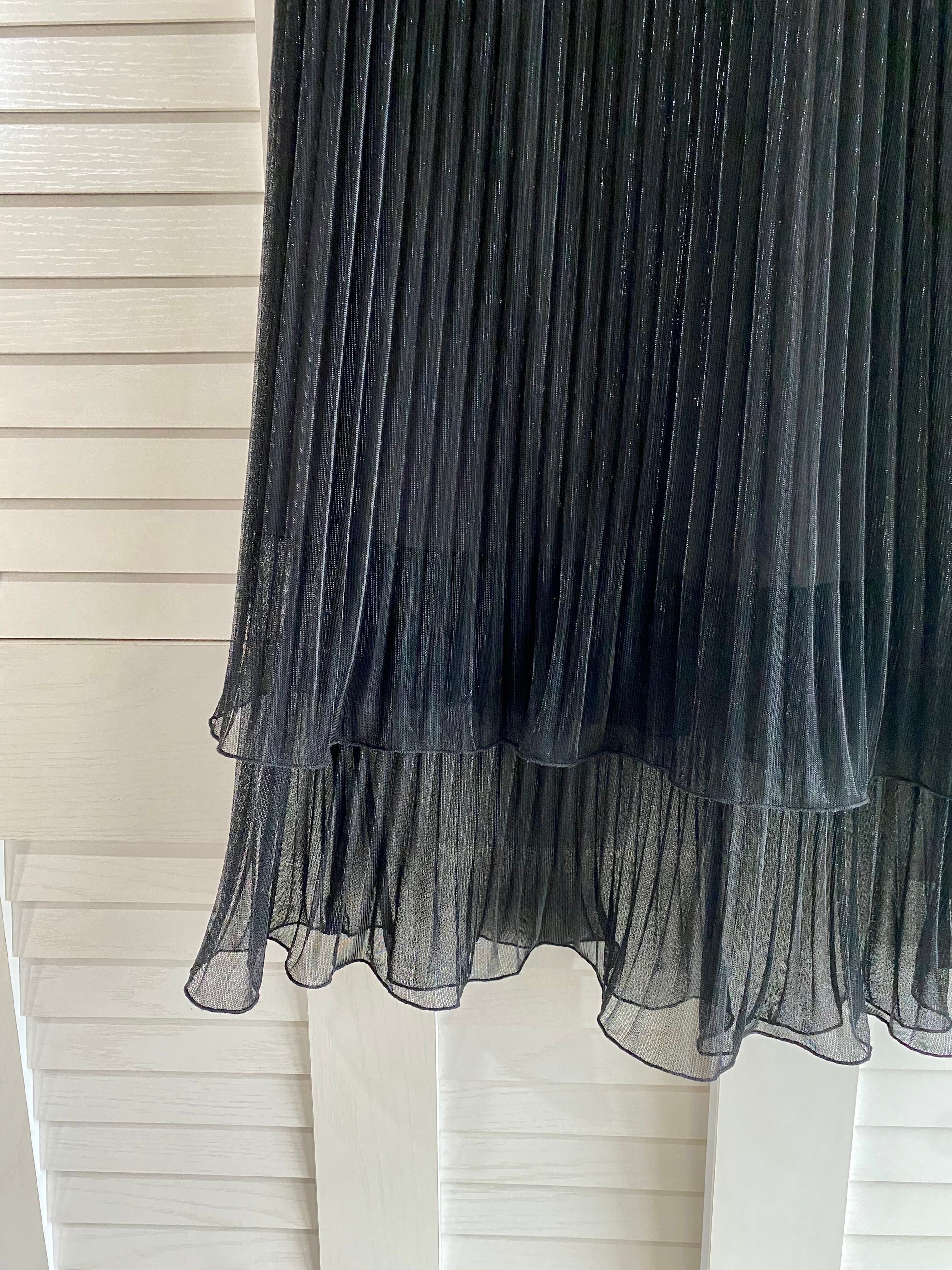 #204 JEANASIS シャイニーメッシュチュールダブルプリーツスカート ブラック