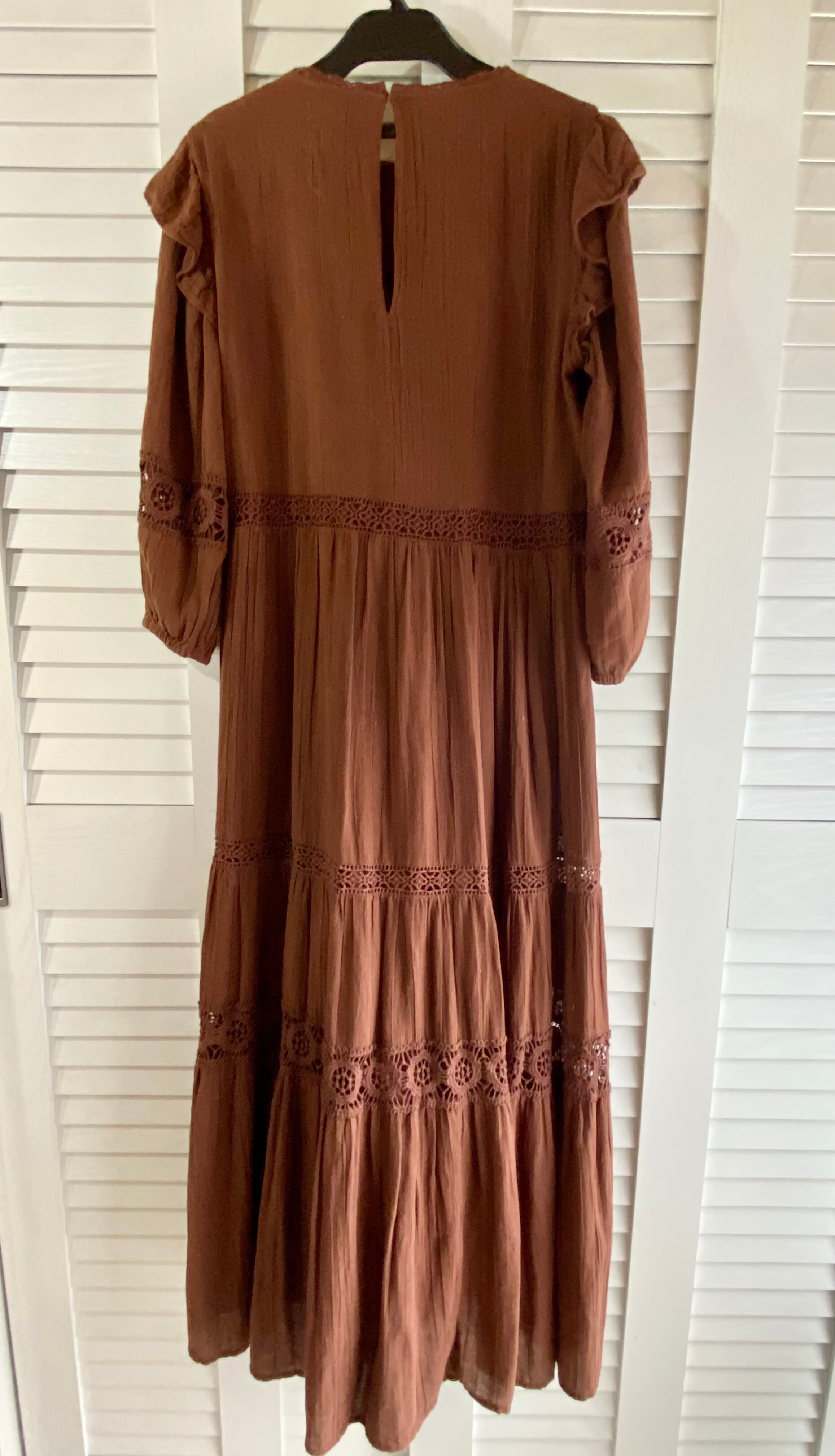 #204 ZARA 刺繍&レース 楊柳ティアードワンピ ブラウン