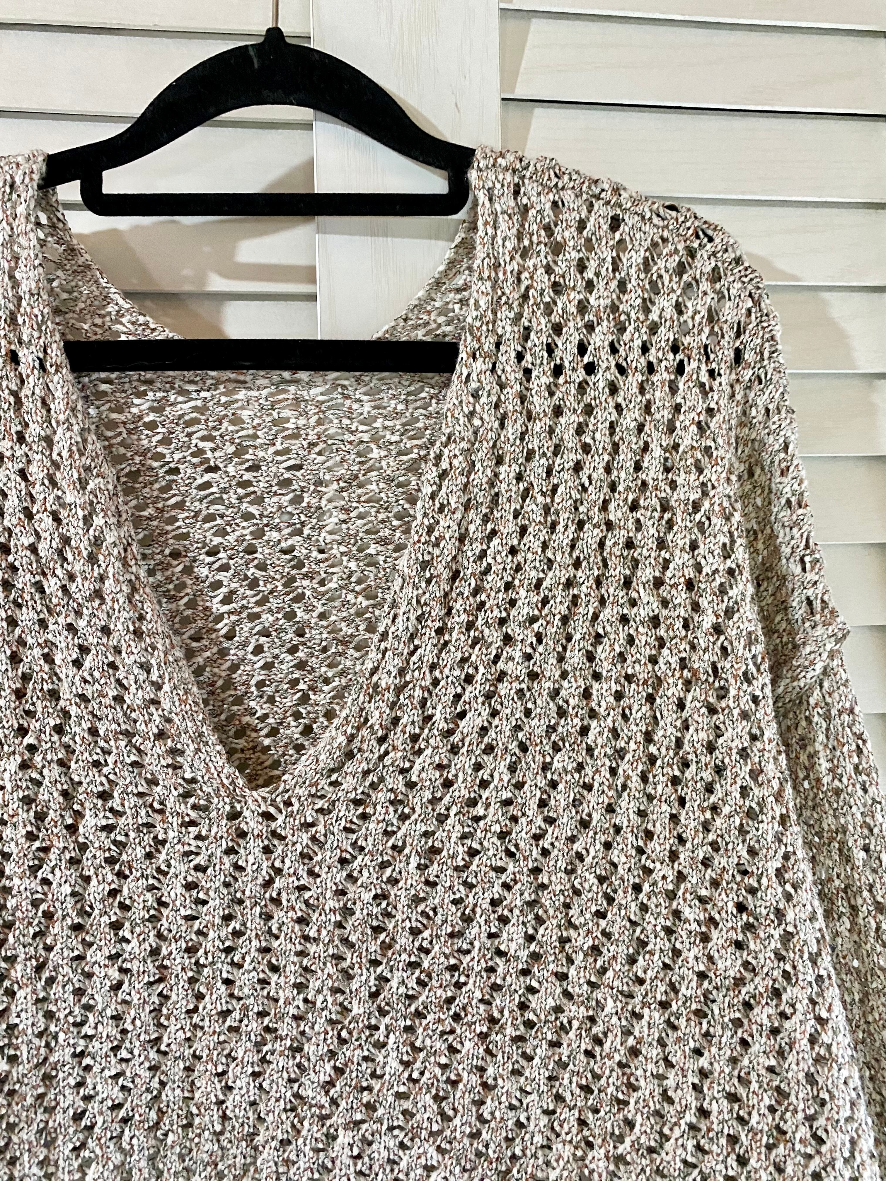 #205 mystic ミックスヤーン 透かし編み コットンポリ ショート丈ニット オートミール