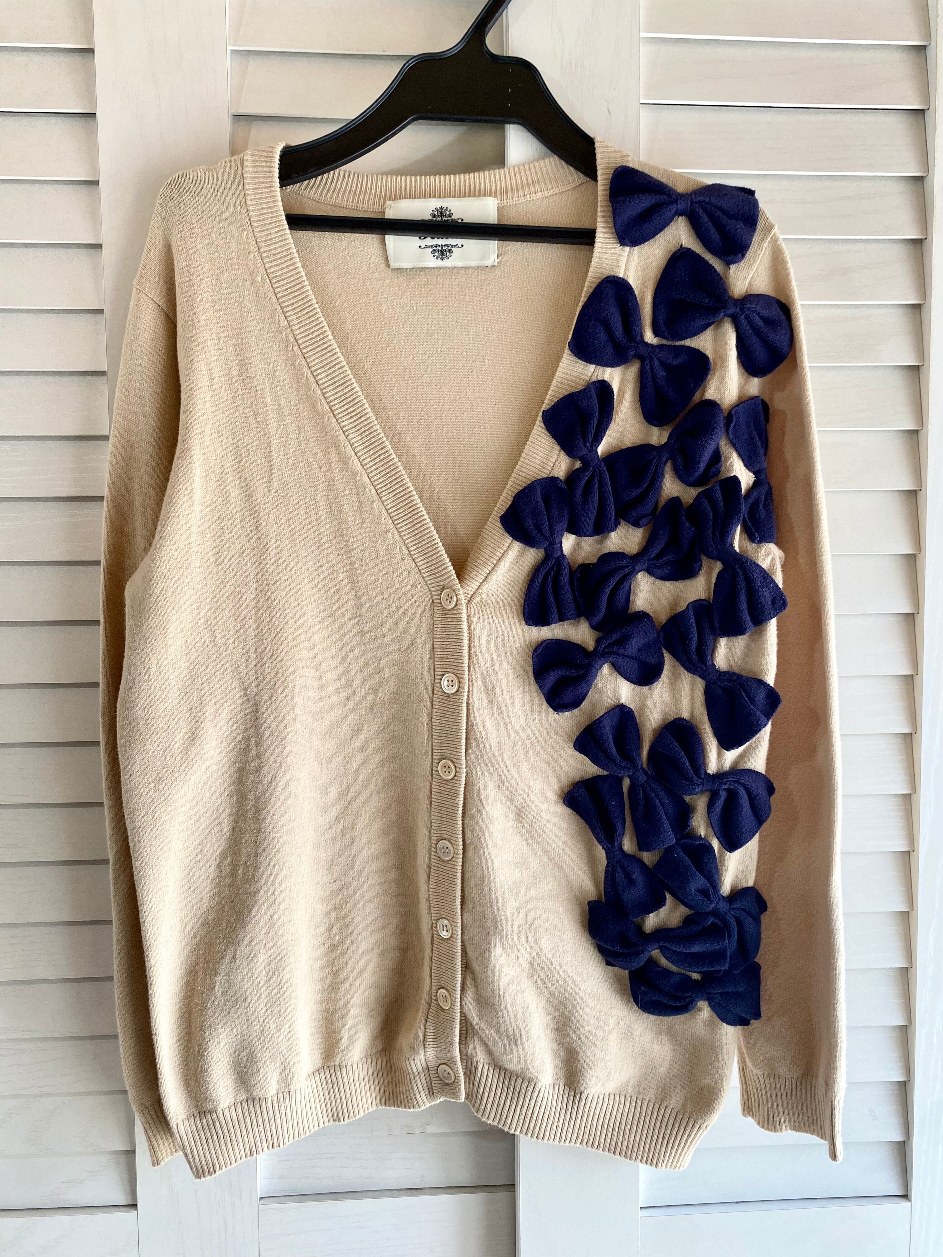 #206 Kaon リボンモチーフコットンニットカーデ ライトベージュ | お洋服屋さん 『GOKKO』