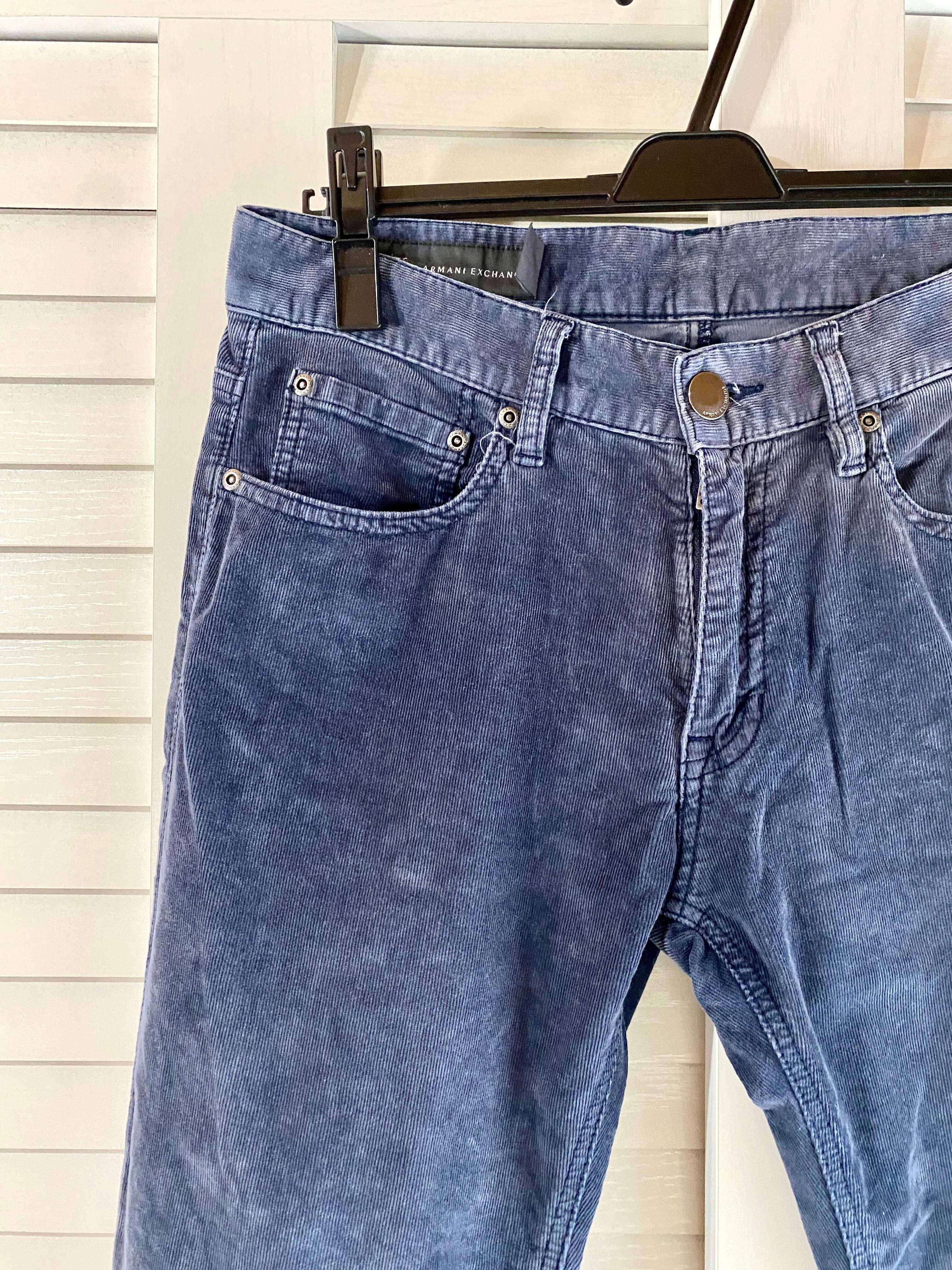 専用◎#207 ARMANI ユーズド加工 スーパーストレッチ 細コールストレートパンツ ブルーグレー