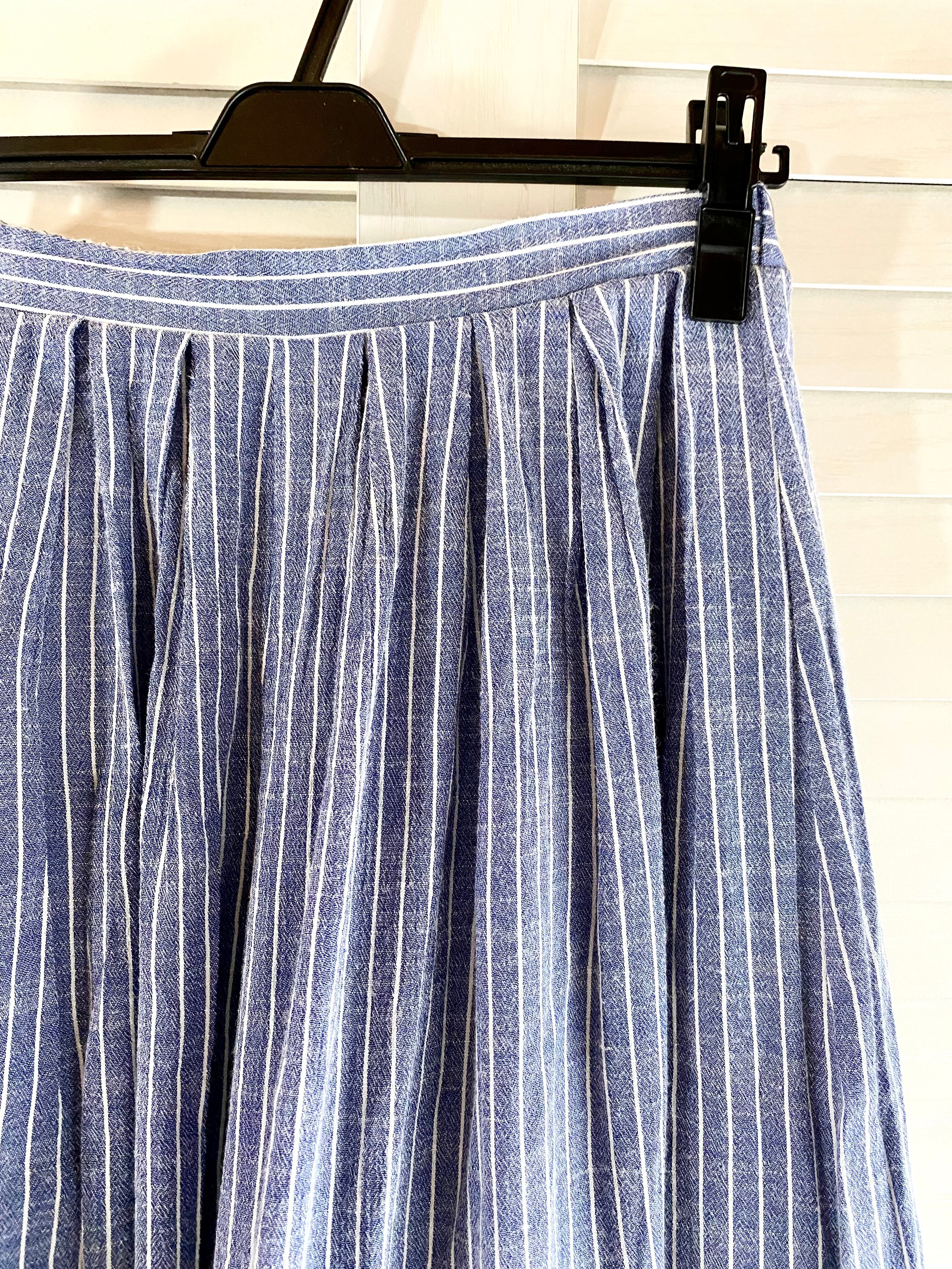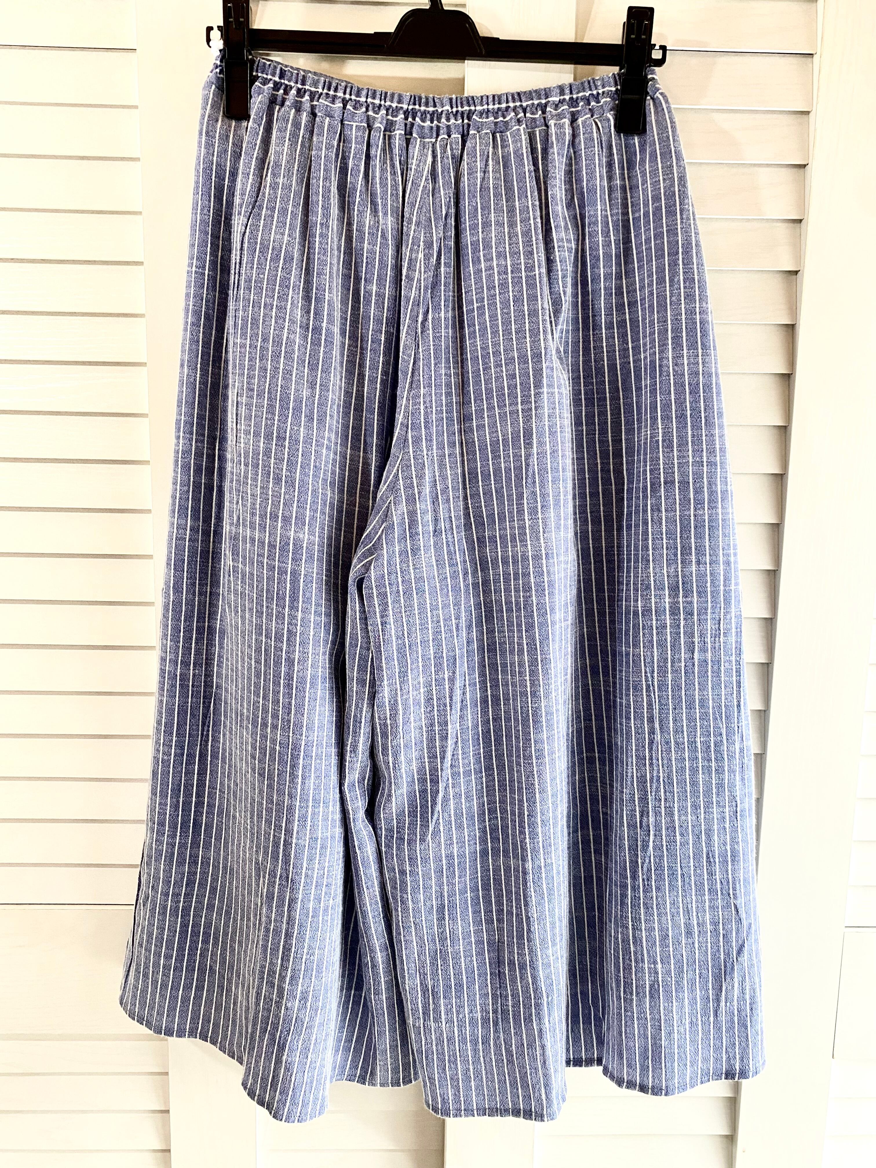 専用◎#207 Samansa Mos2 ペンシルストライプ リネン風レーヨンワイドボリュームパンツ ライトブルー