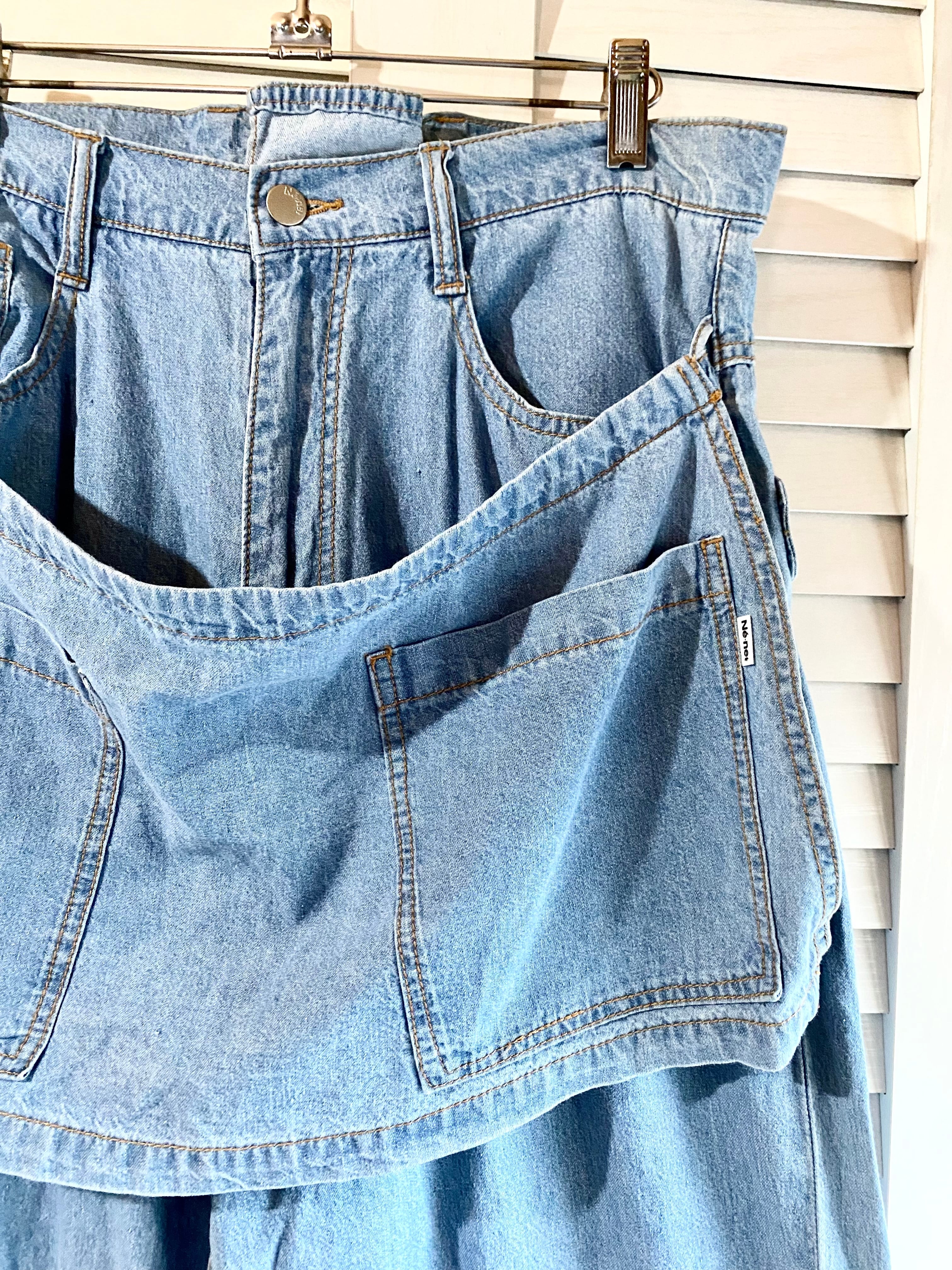 専用◎#208 Ne-net 食パンくんポケット サロンエプロン付きワイドデニムパンツ ライトブルー