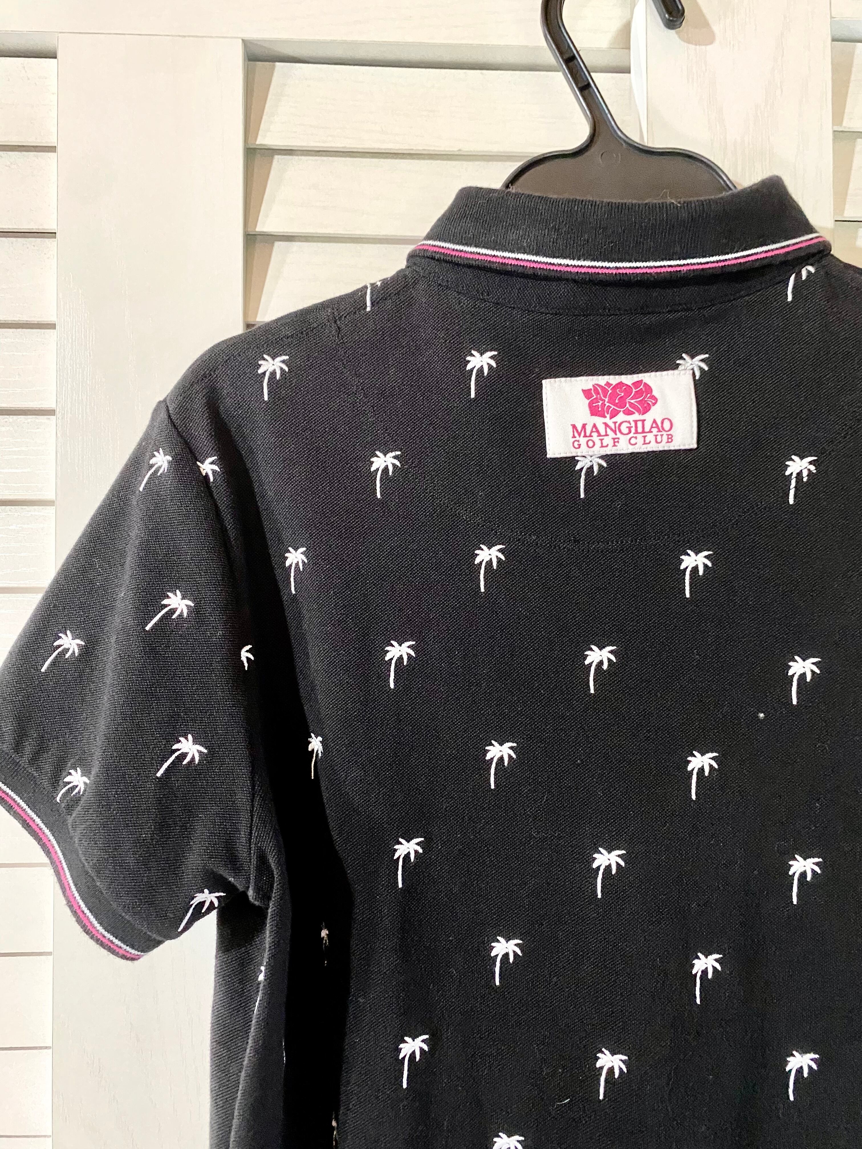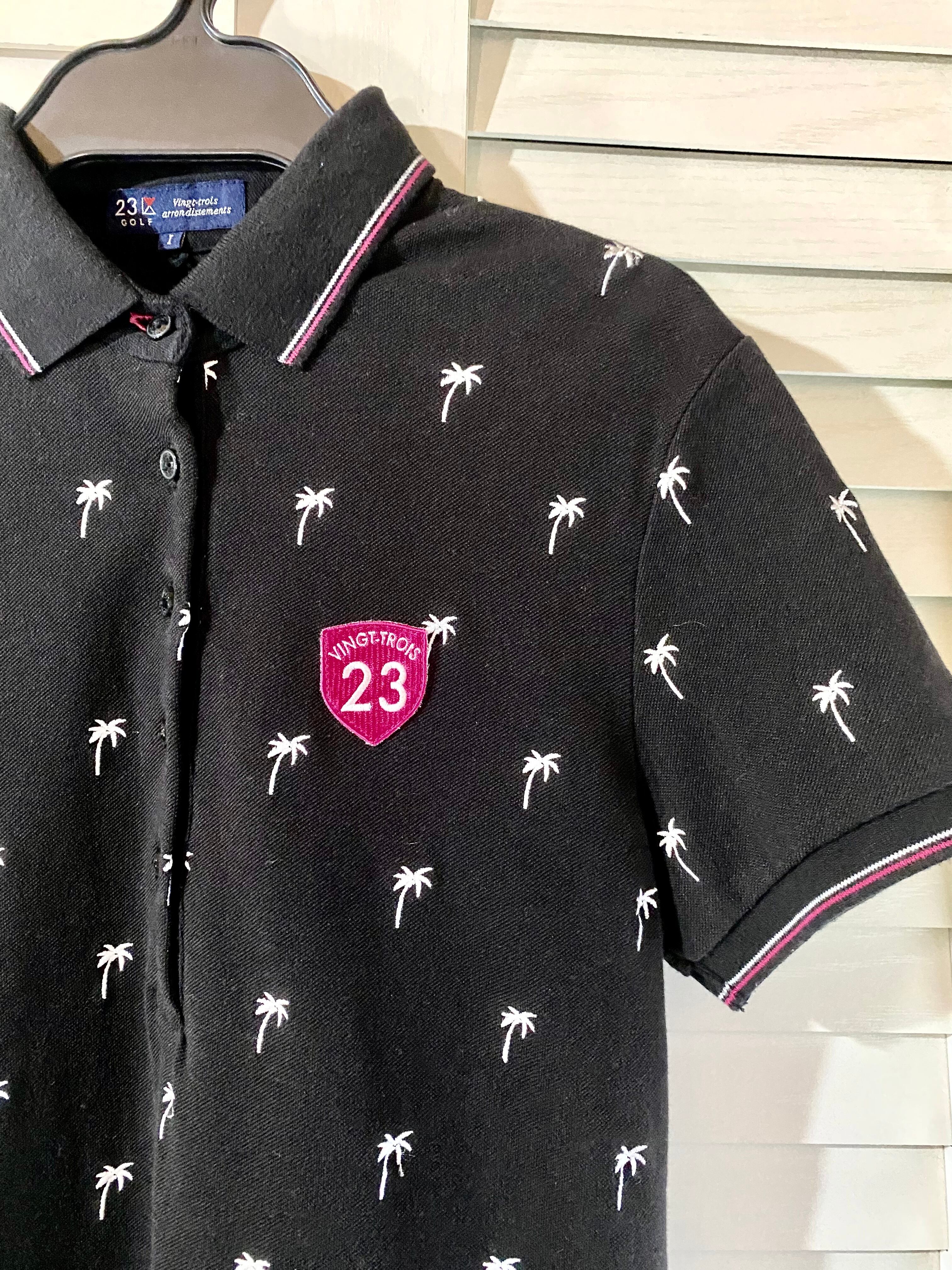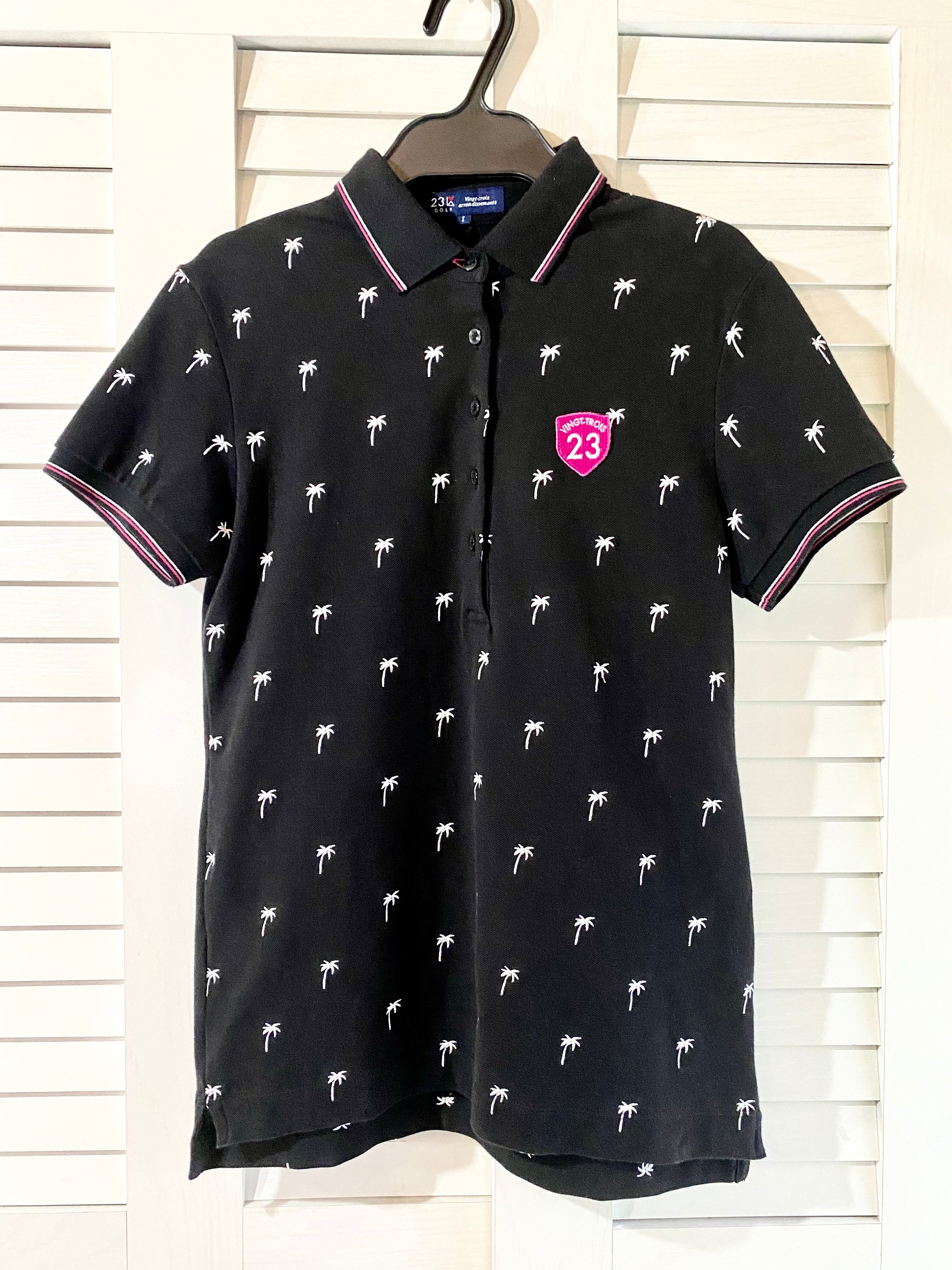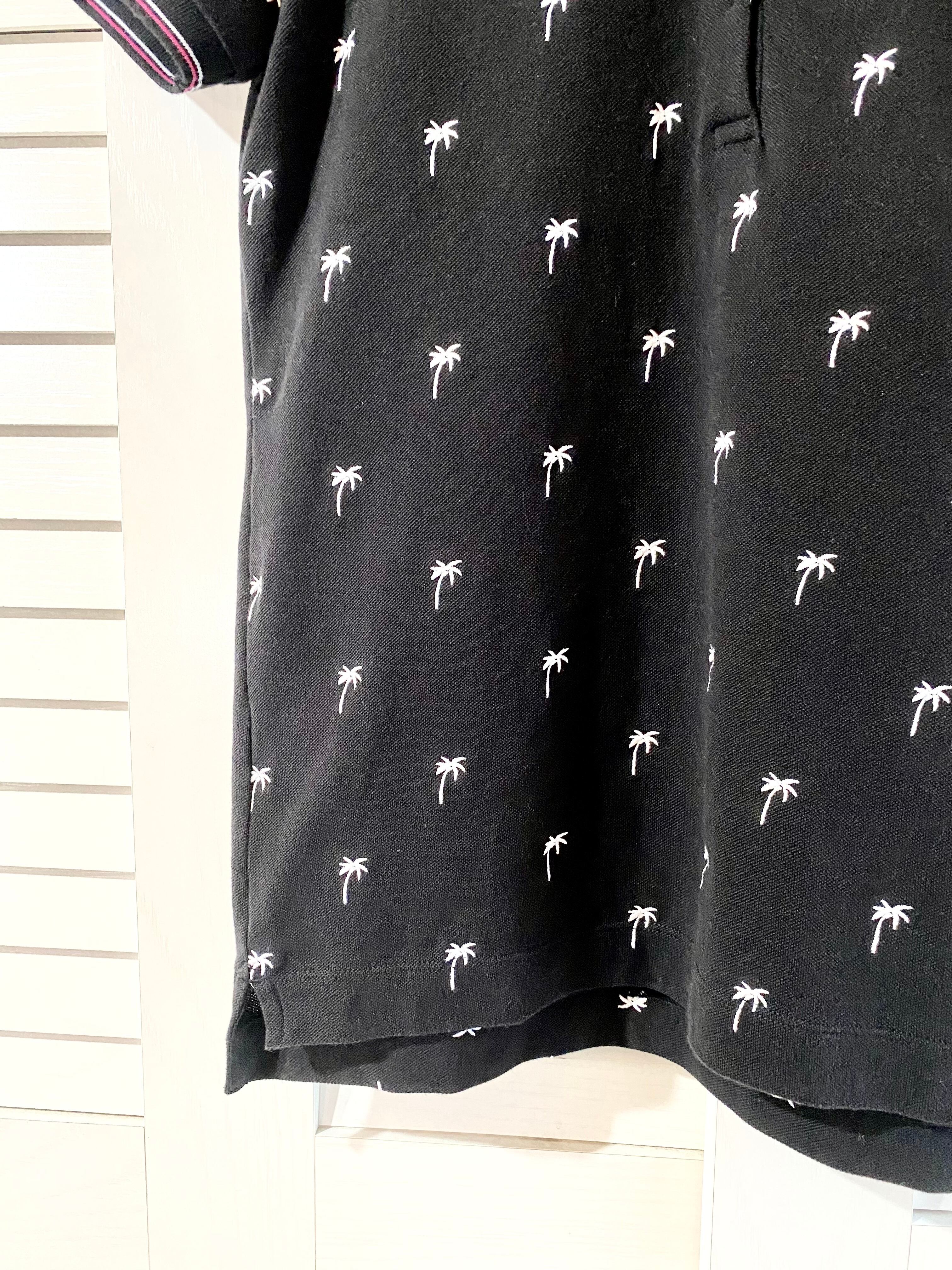 #209 23区 ヤシの木刺繍柄カノコポロシャツ ブラック