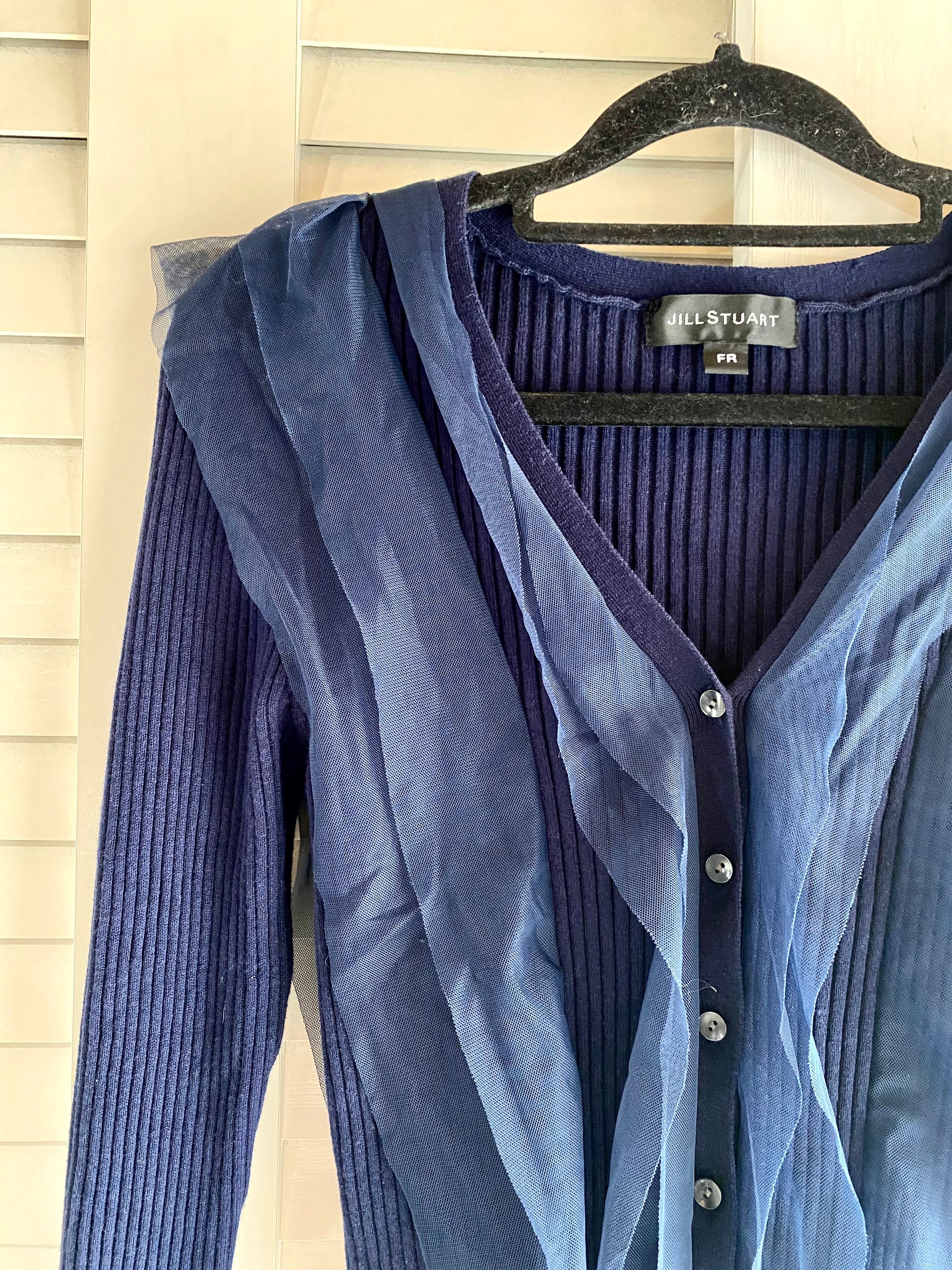 #210 JILL STUART チュールレース シルク混コットンレーヨンリブニットカーデ ネイビー