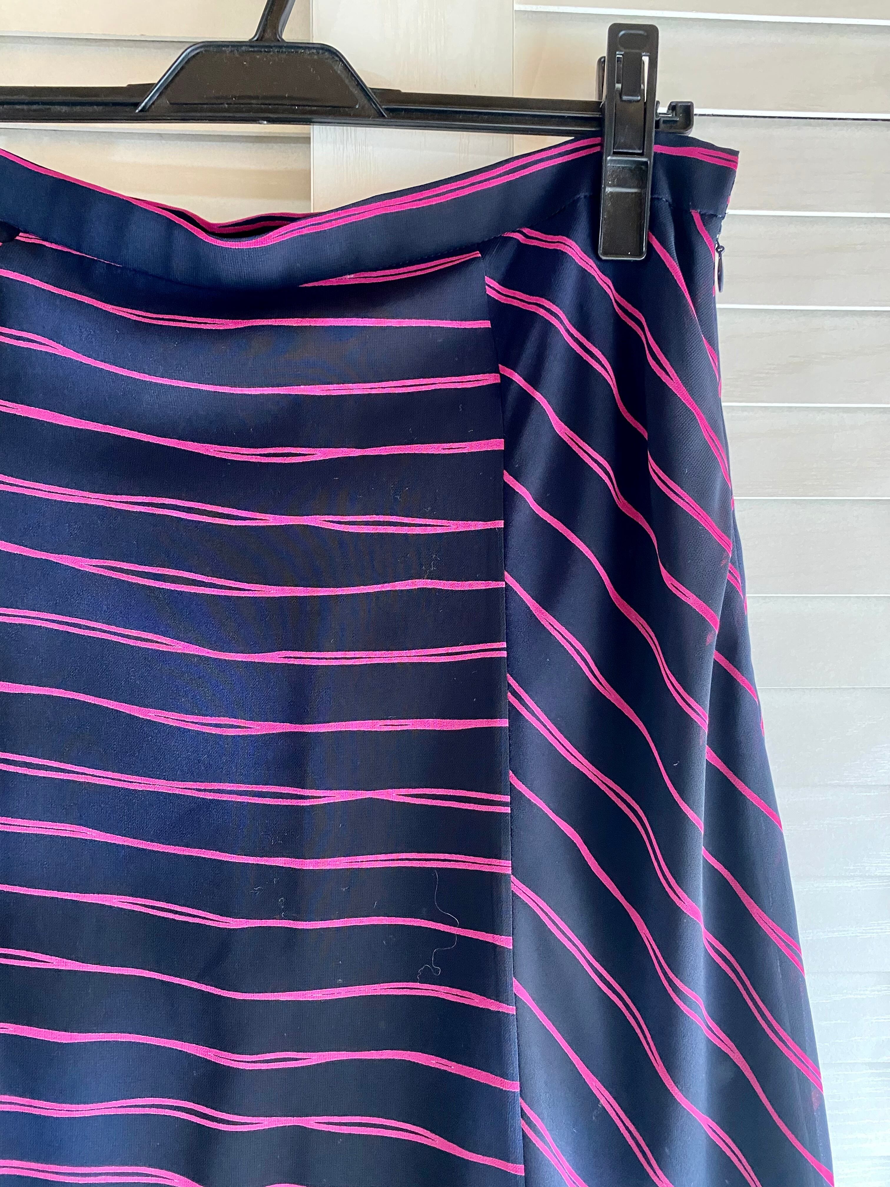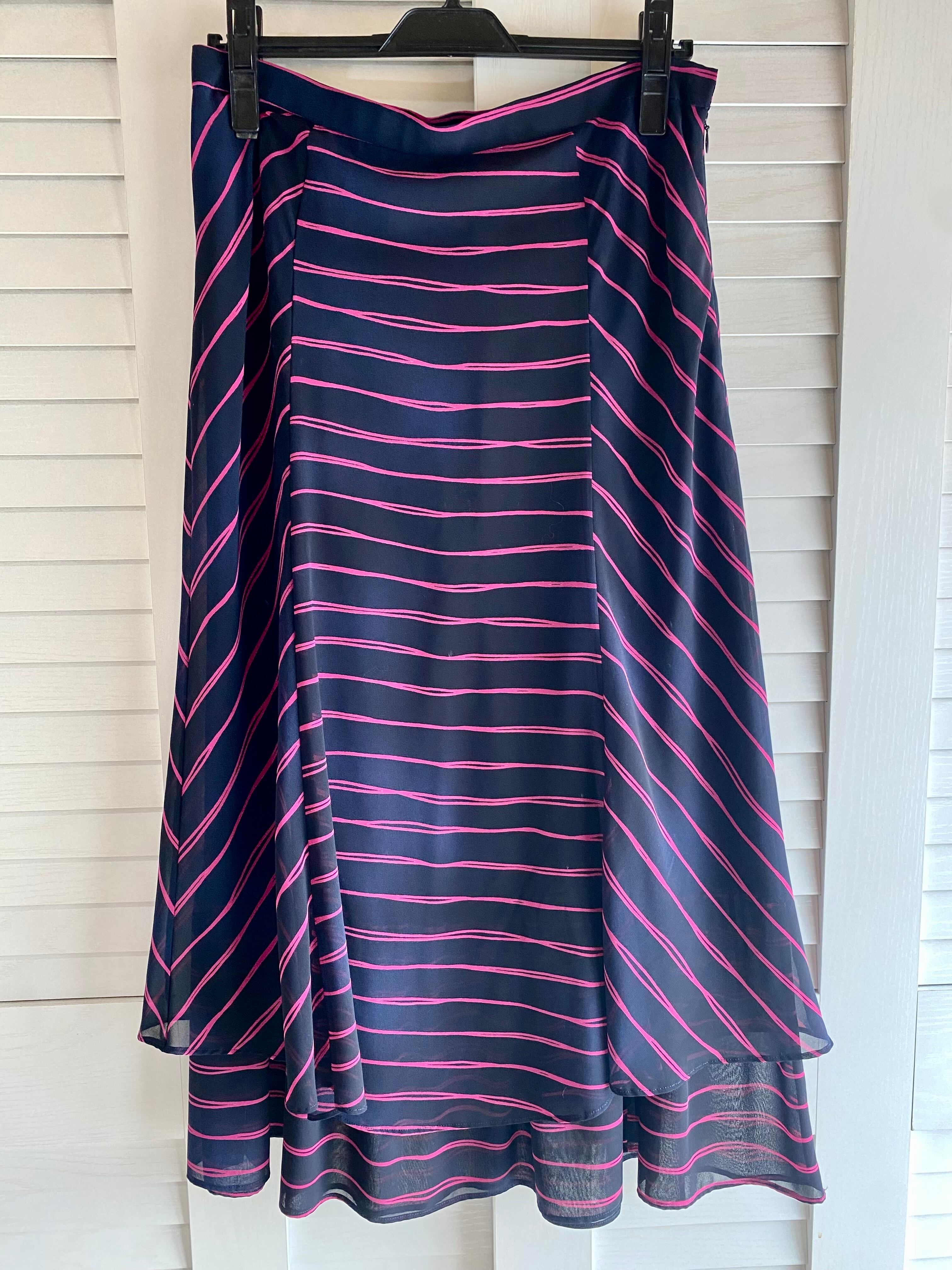 #210 INTELLECTION 手描きボーダー 切替ティアードフレアー シフォンスカート ネイビー