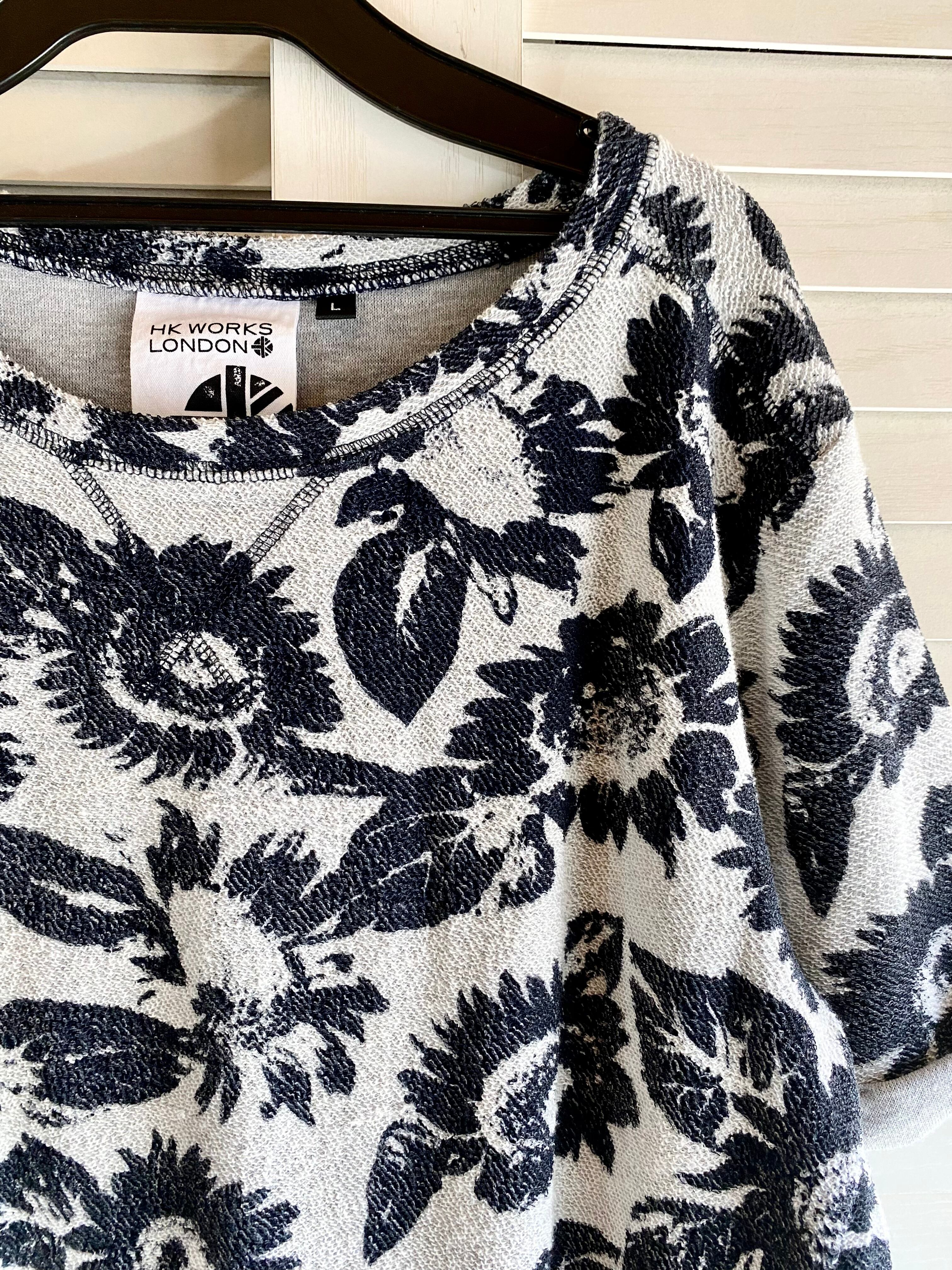 #211 MK WORKS LONDON モノトーンフラワープリント パイル地オーバーサイズプルオーバートップス ライトグレー×ブラック