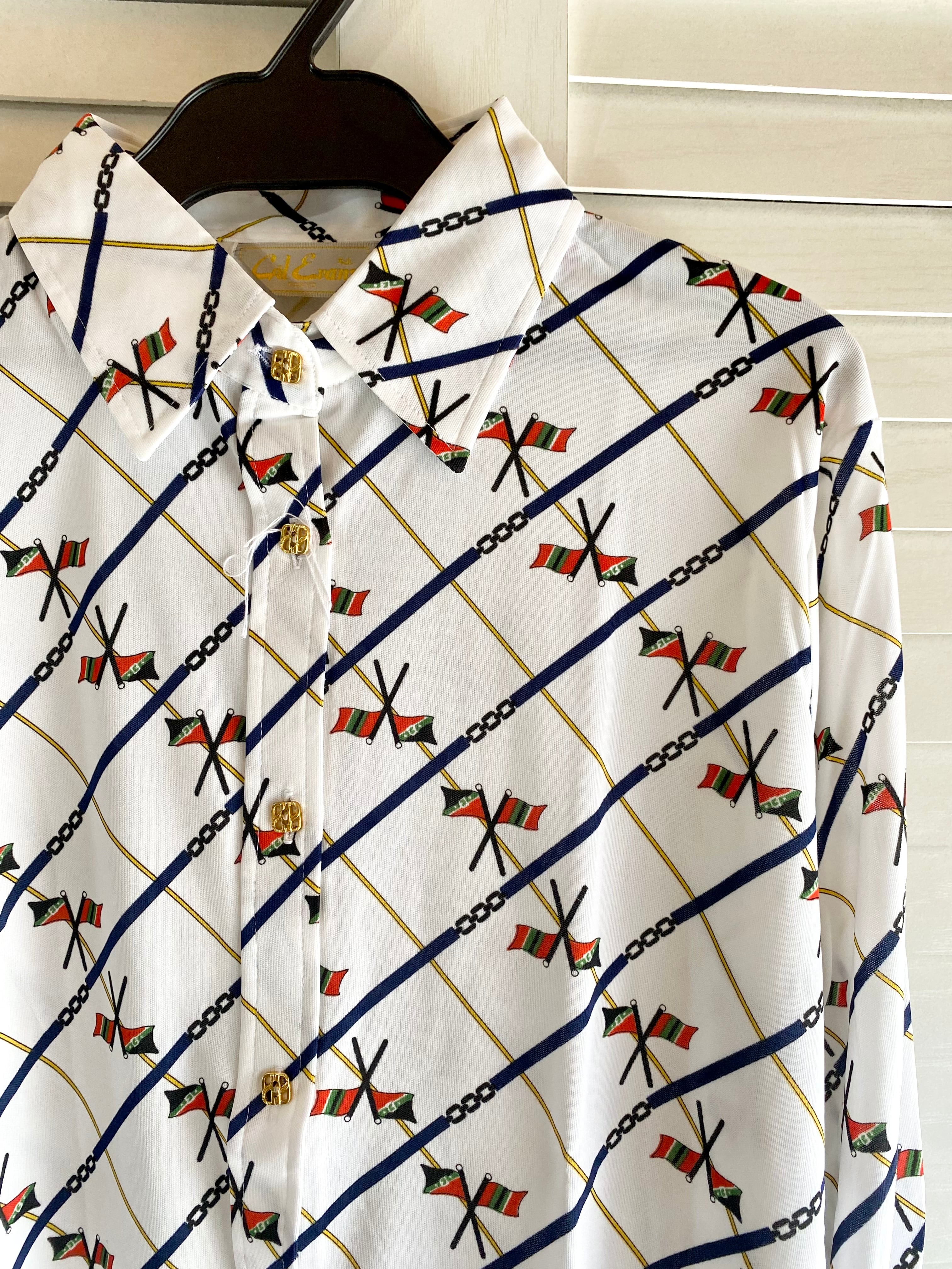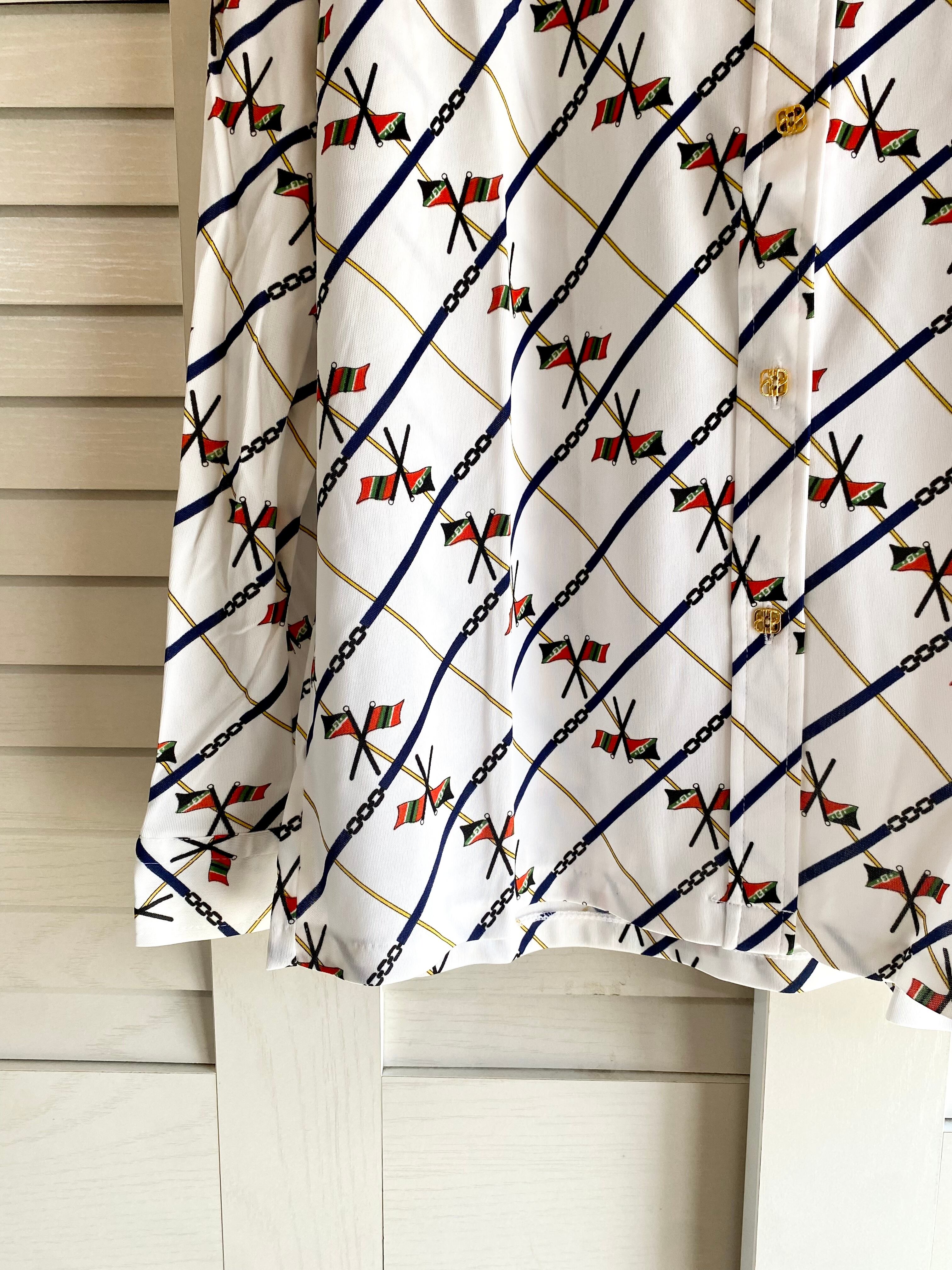 専用◎#211【国産古着】70Sデッドストック ヴィンテージ フラッグプリント ストレッチシャツ オフホワイト | お洋服屋さん 『GOKKO』