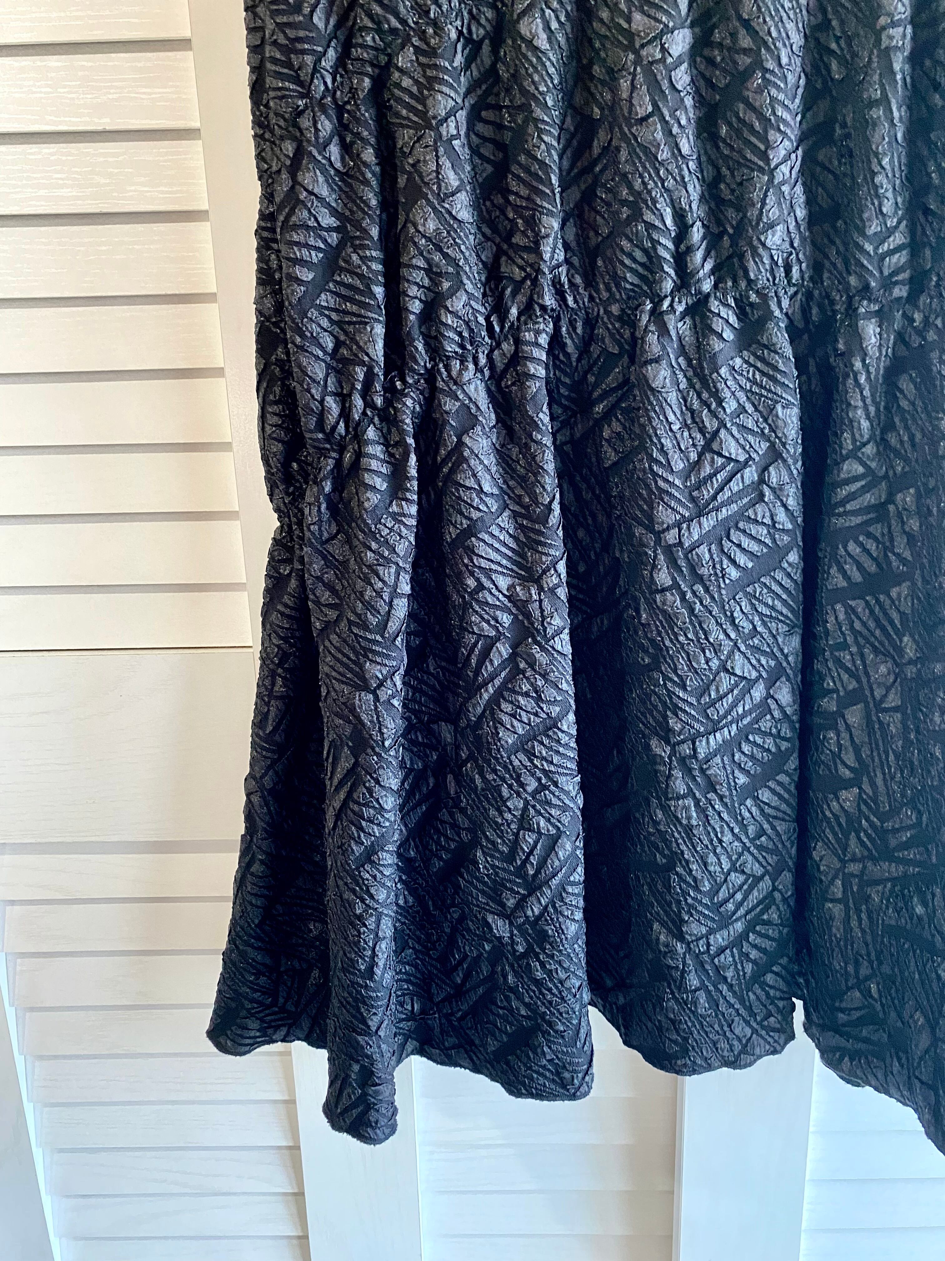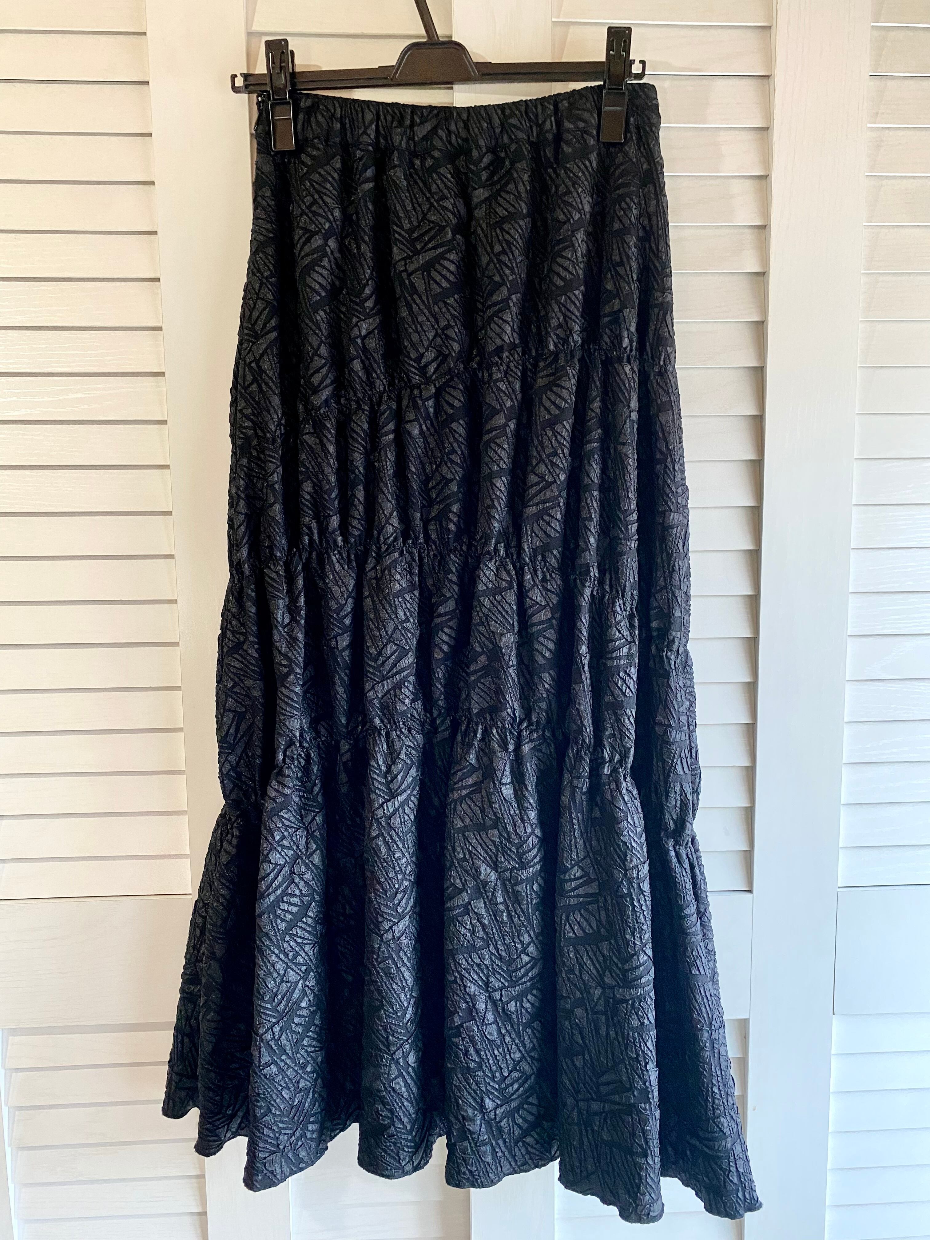 #212 Apert by lowlys フクレジャガード ラウンドシャーリングティアードスカート ブラック