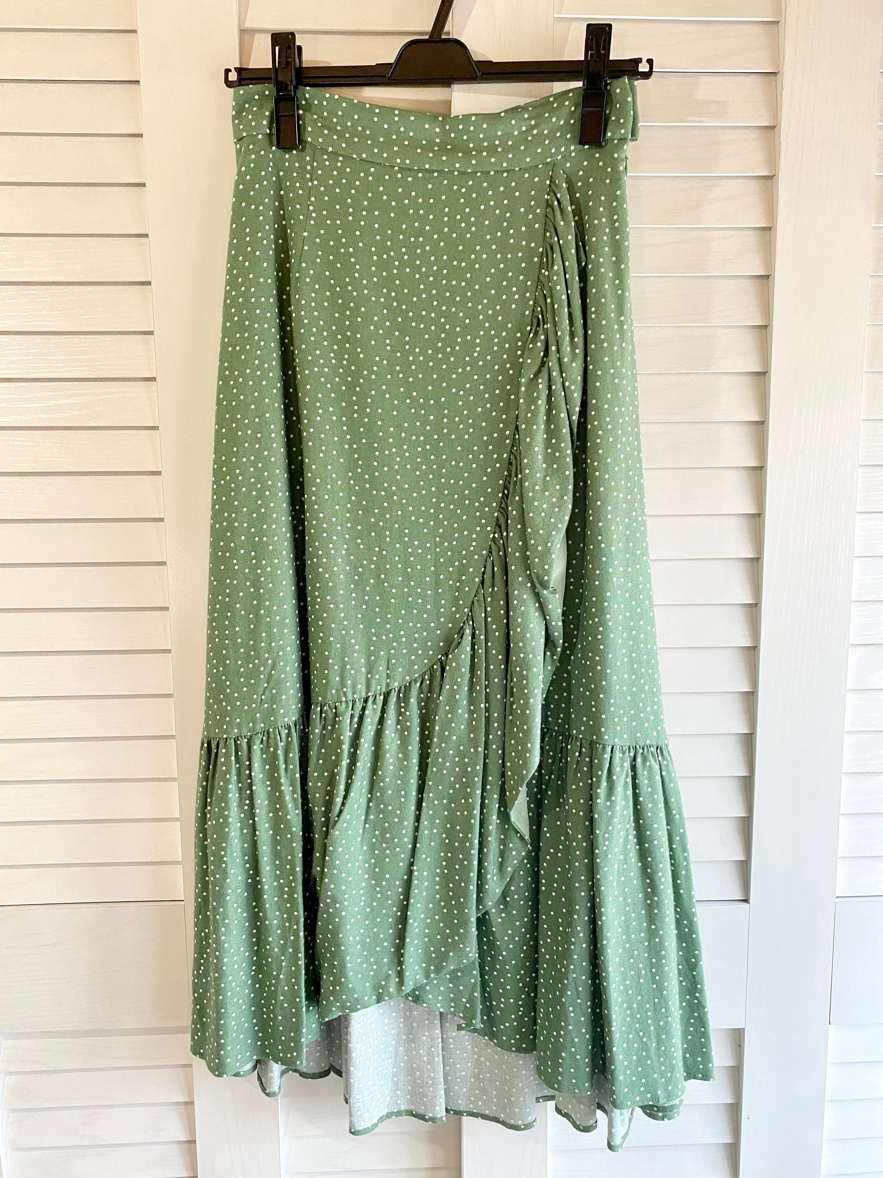#212 31 Sons de mode レーヨンリネン フリルラップ風ドットスカート ライトグリーン | お洋服屋さん 『GOKKO』