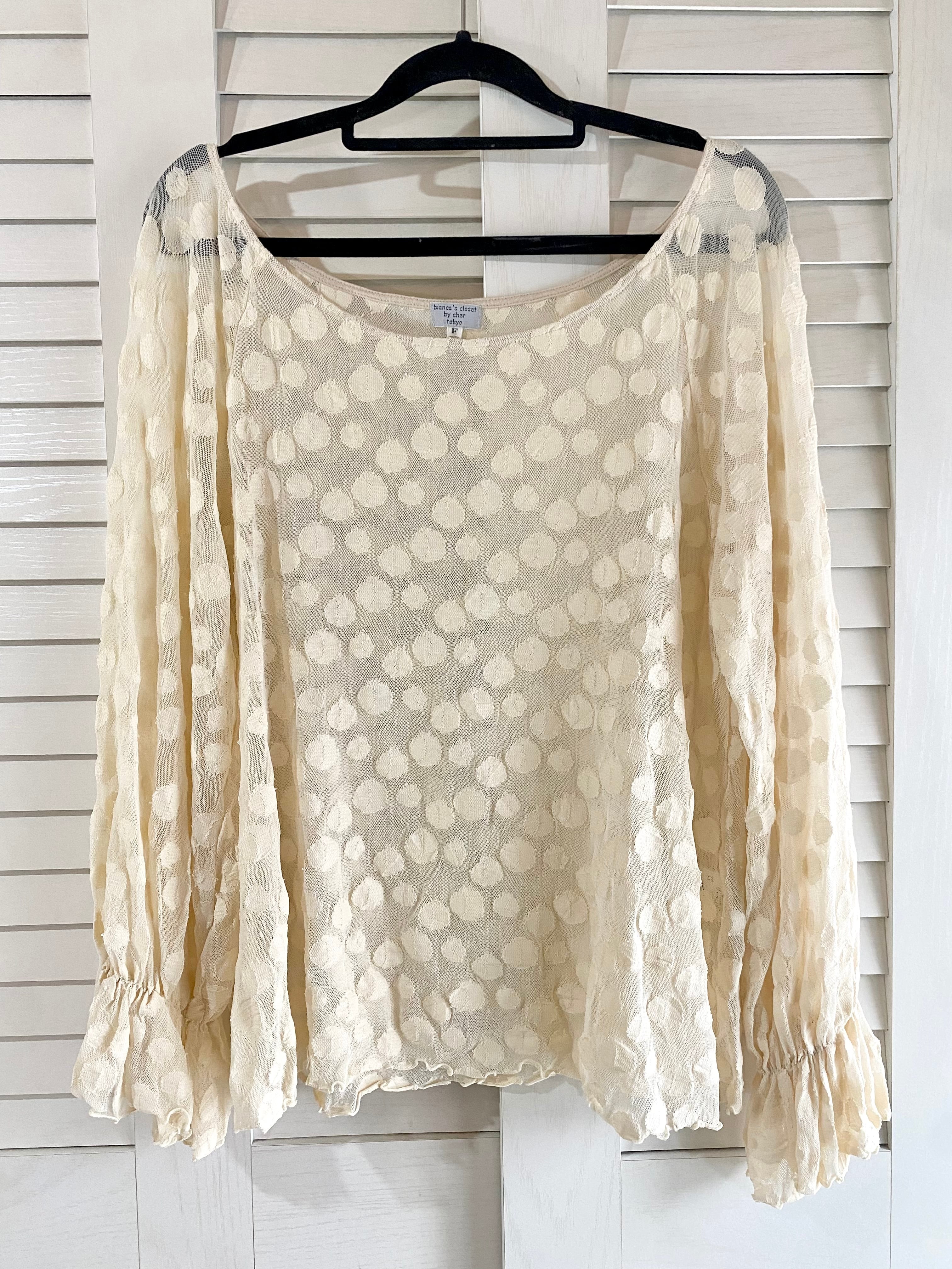 #212 cher キャンディースリーブ ドットジャガードメッシュブラウス クリーム