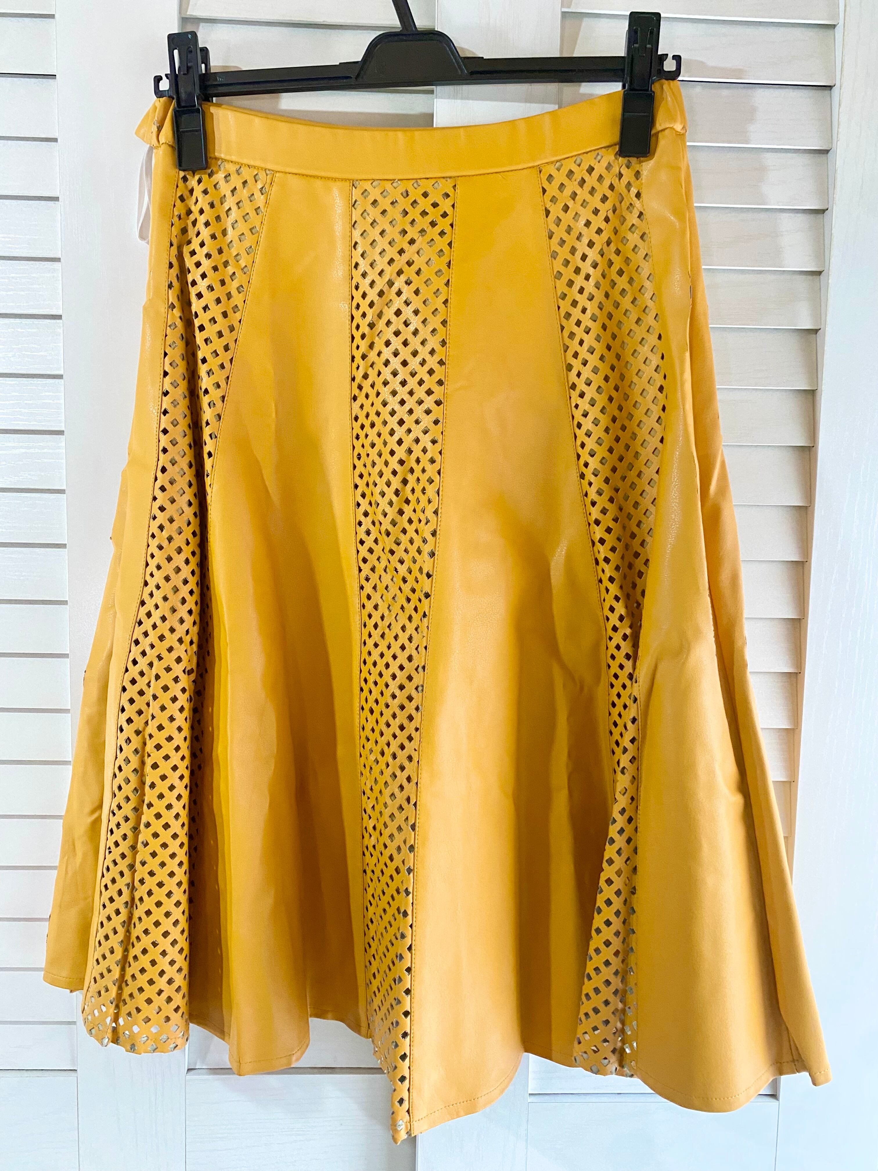 #213 Re.Verofonna ストレッチエコレザー スクエアパンチング切替フレアースカート イエロー