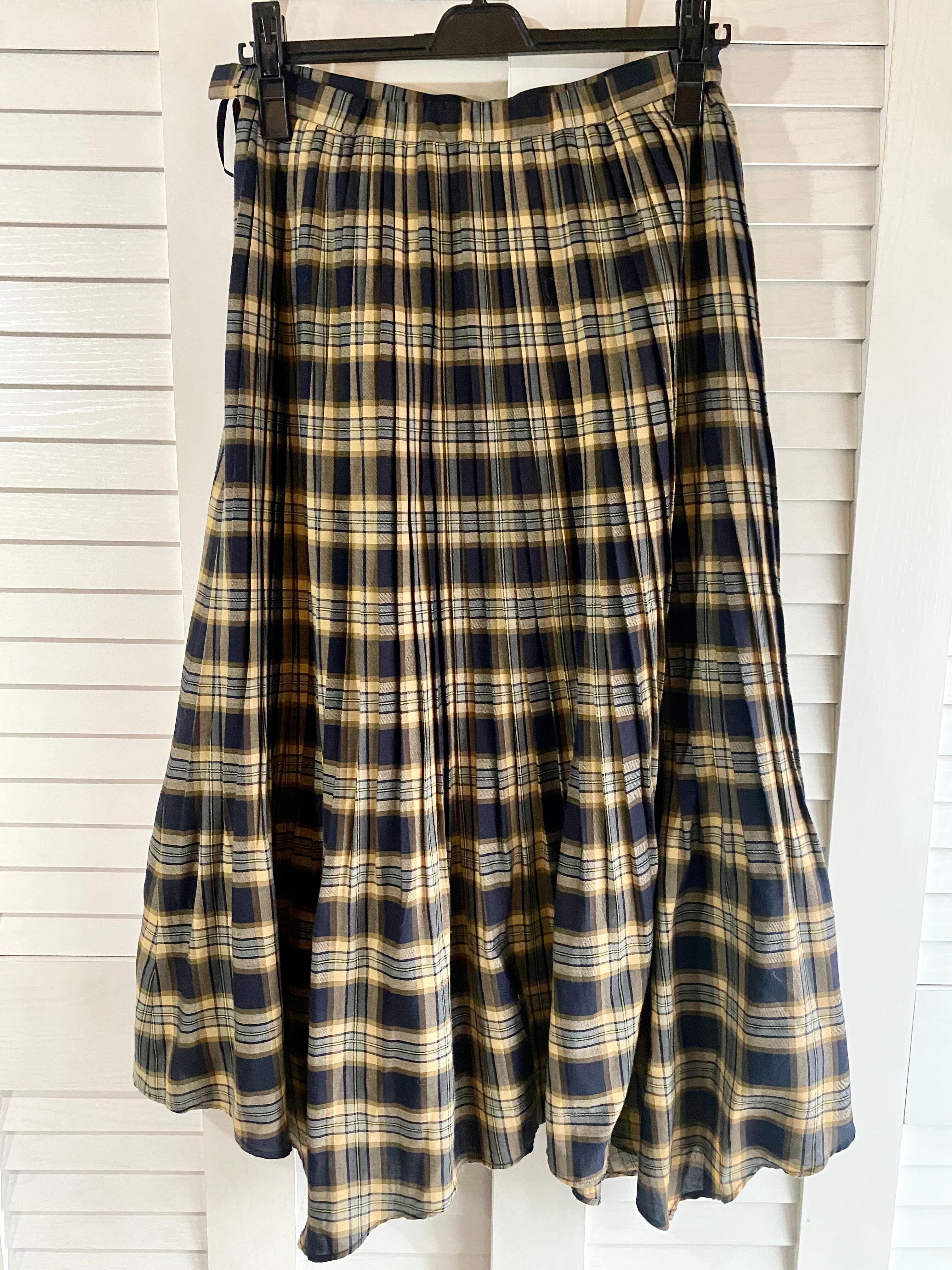 #213 LANVIN イレギュラーヘム タータンチェックプリーツスカート ライトベージュ×ネイビー