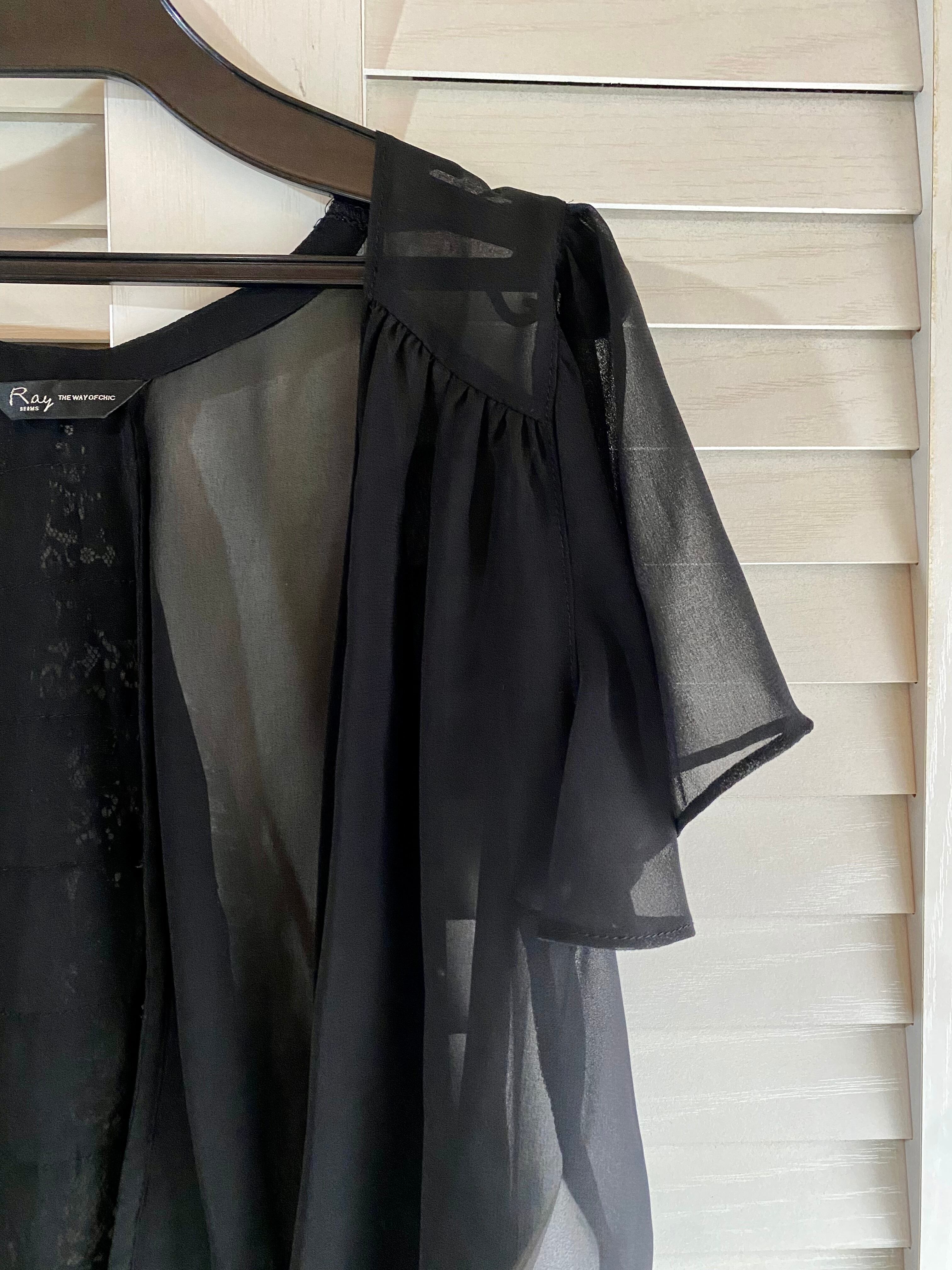 #215 Ray BEAMS バックフリルレース切替 シフォンボレロ ブラック | お洋服屋さん 『GOKKO』