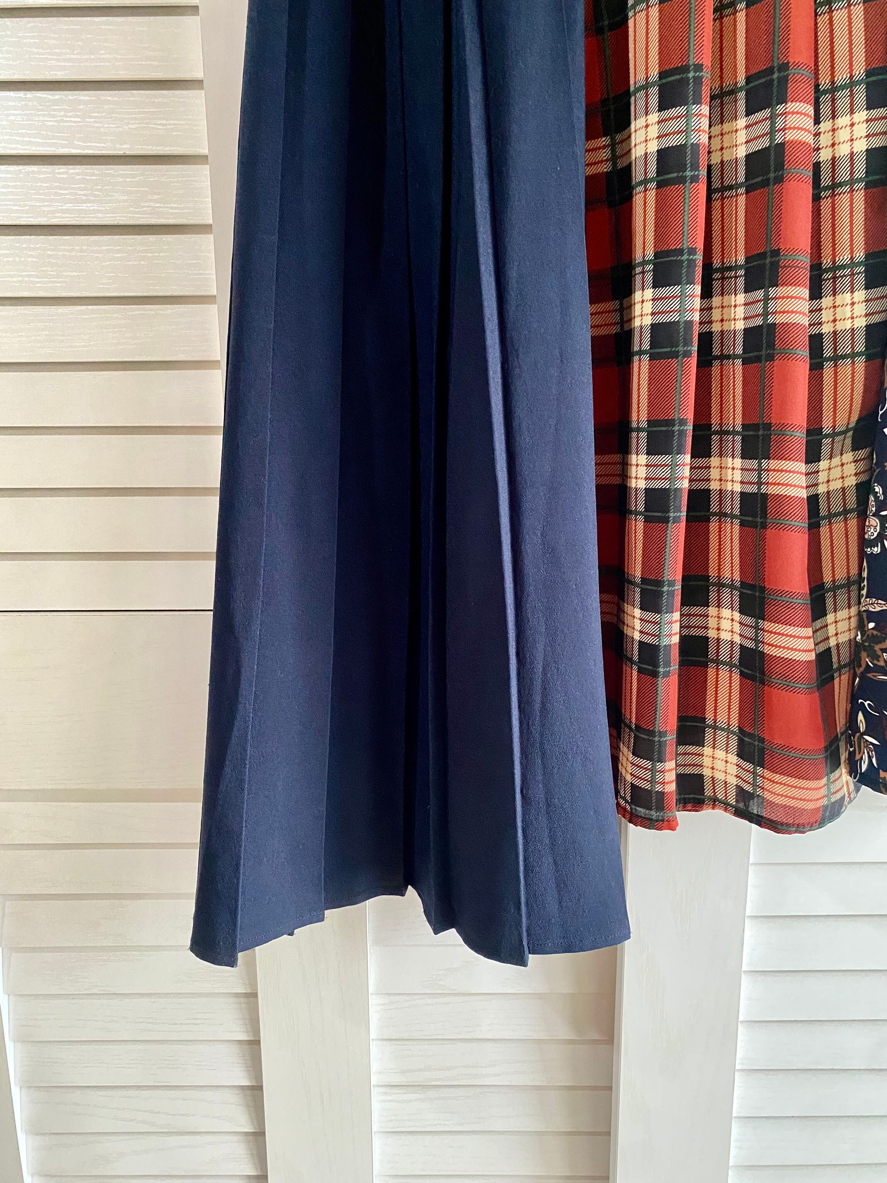 #215 PAGE BOY タータンチェック×フラワープリント×プリーツ切替デザインスカート ネイビー