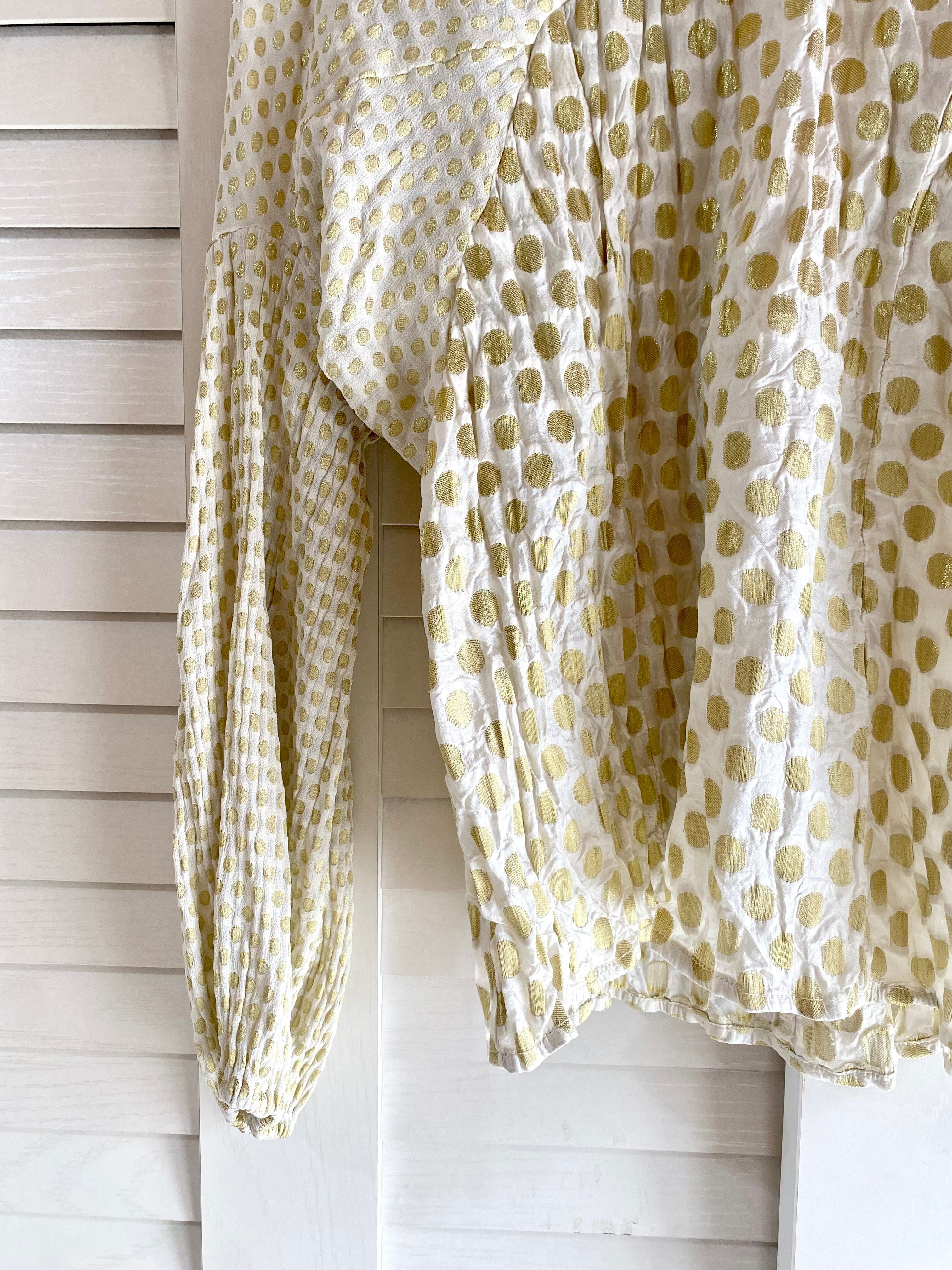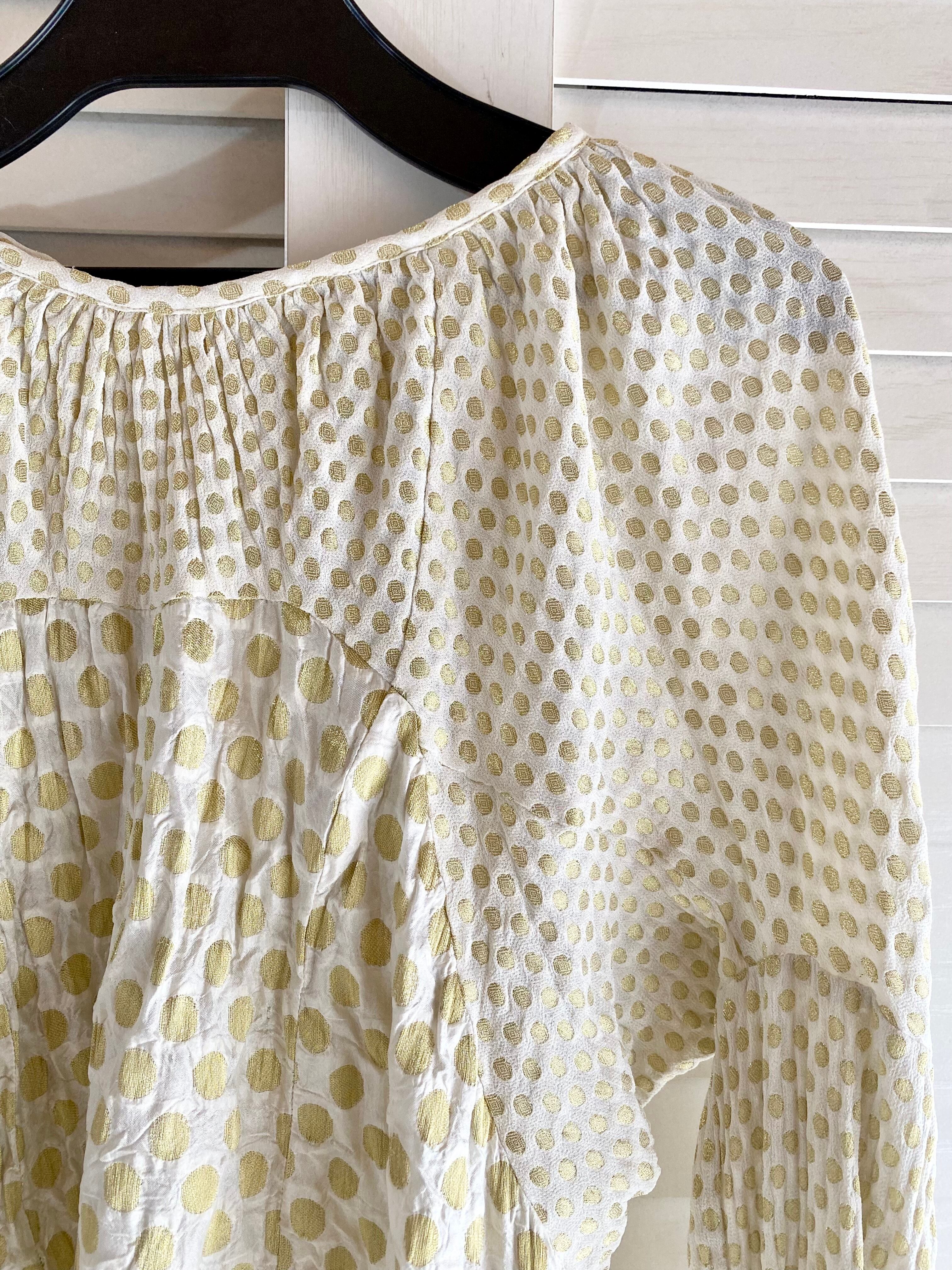 専用◎#216 ahcahcum リップル加工ゴールドダブルドット切替ブラウス ライトベージュ