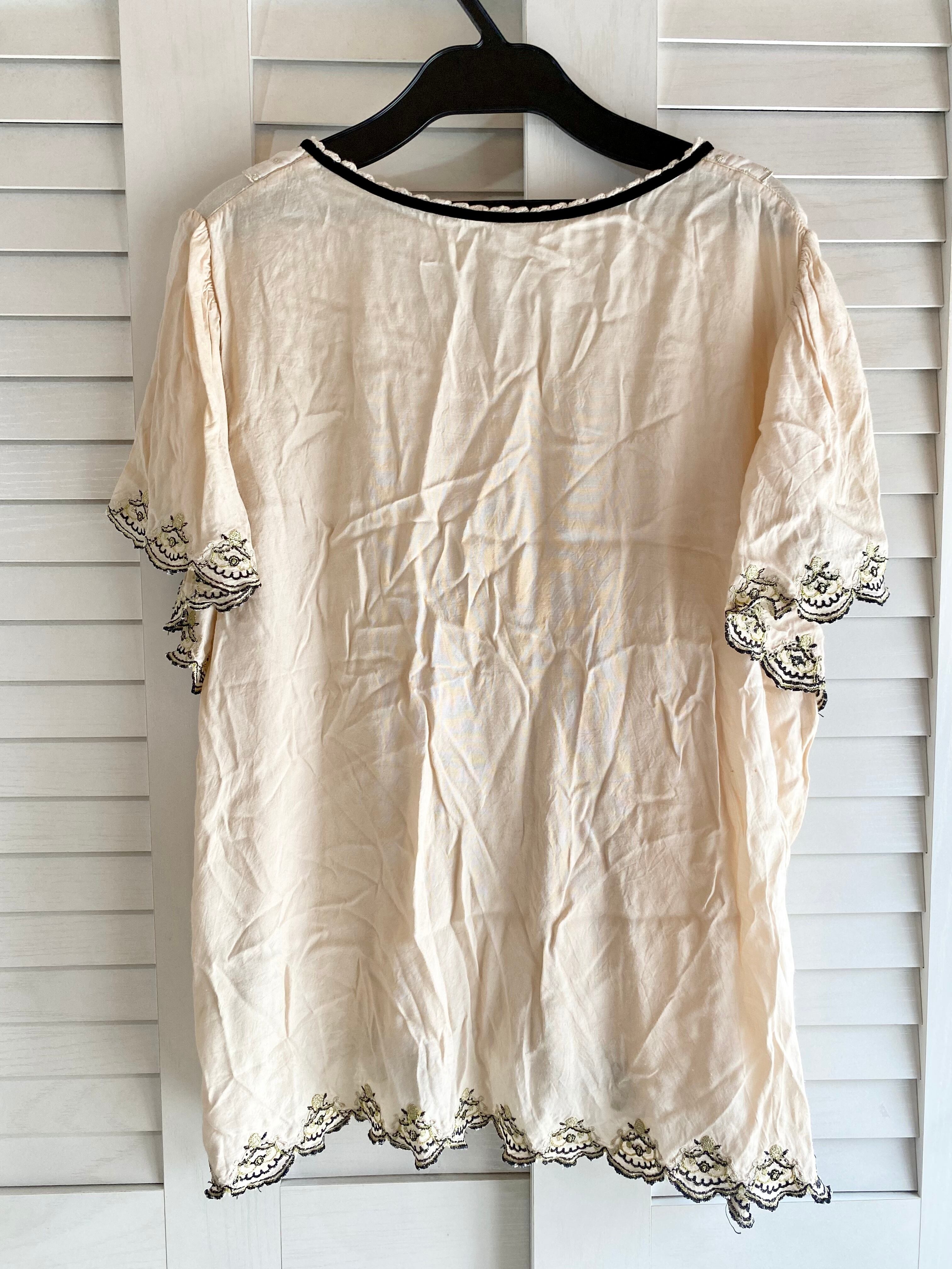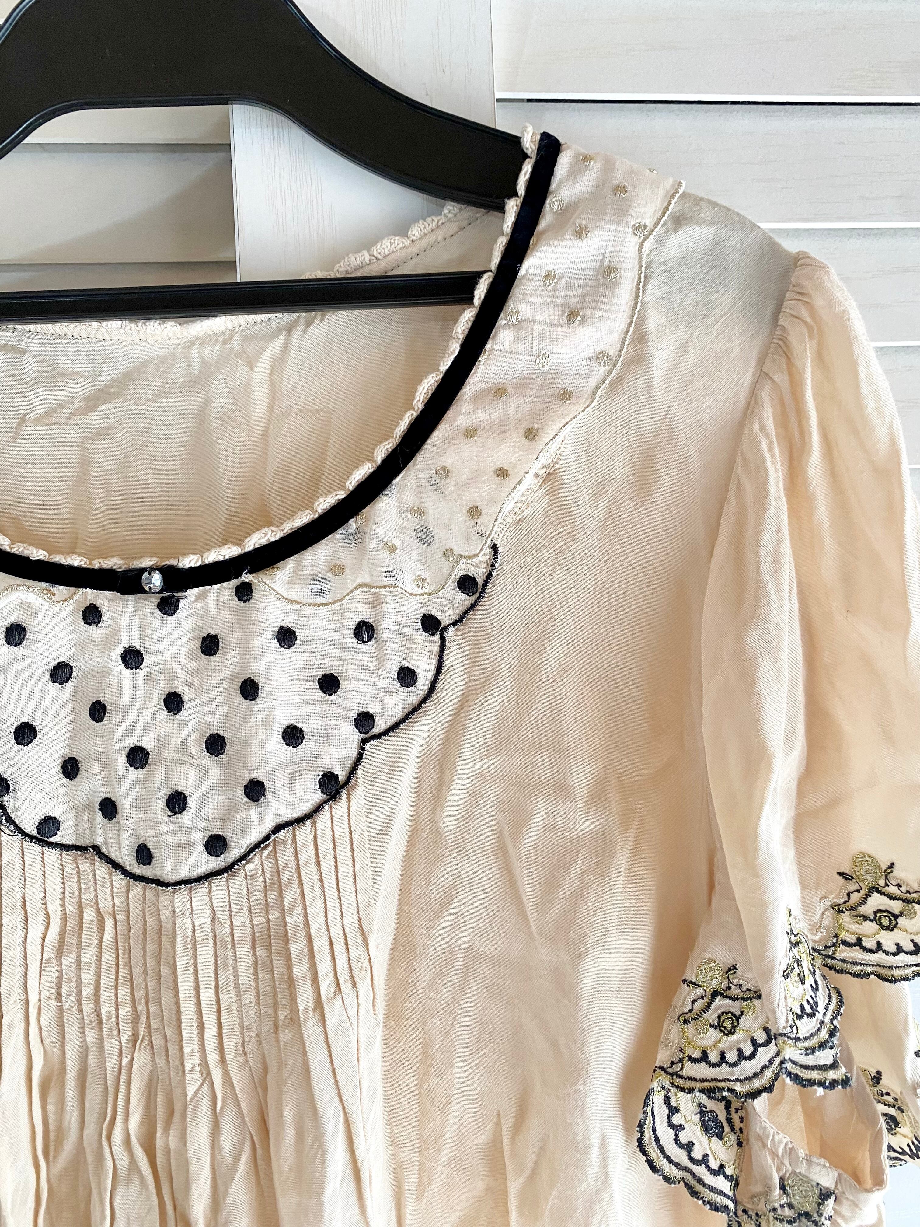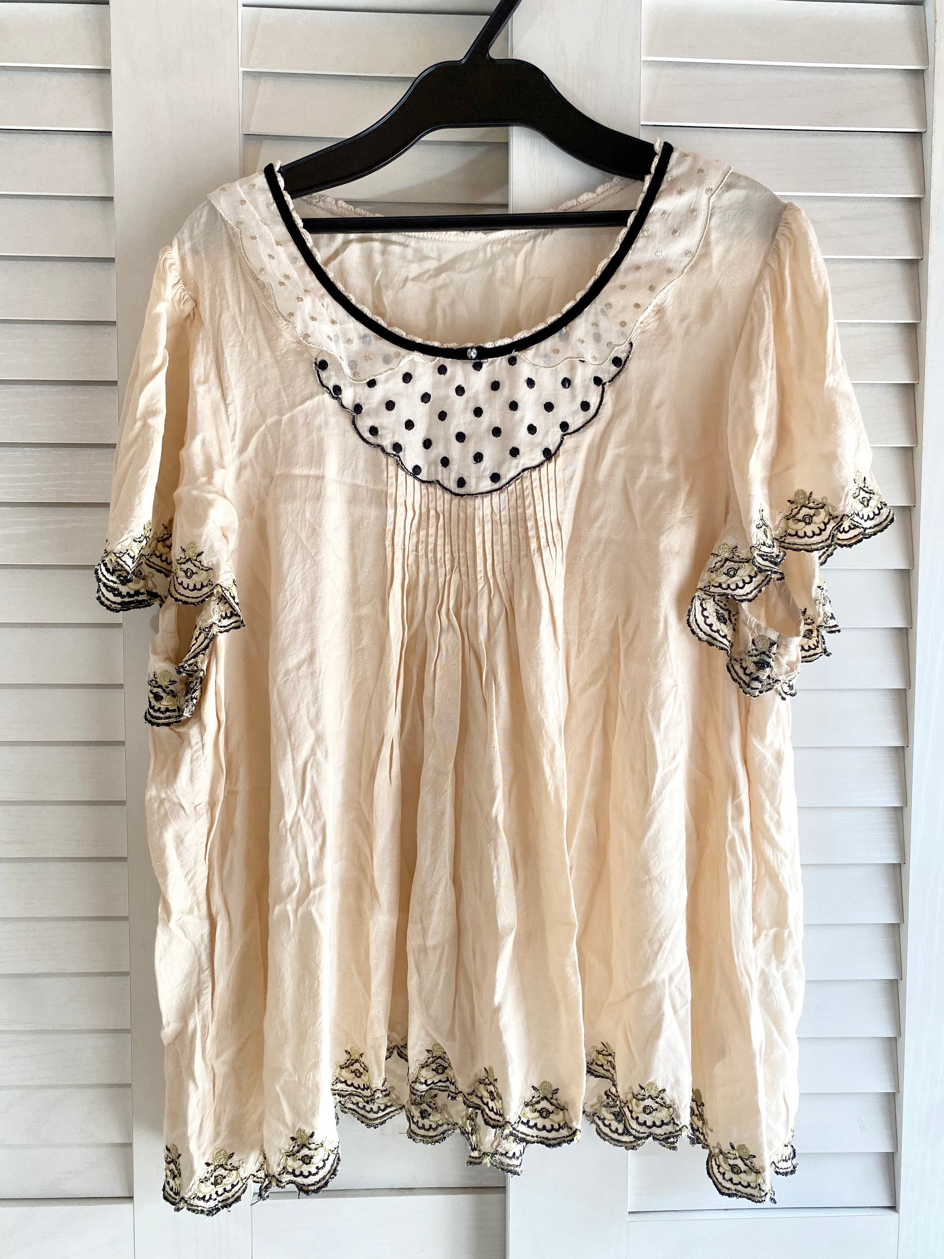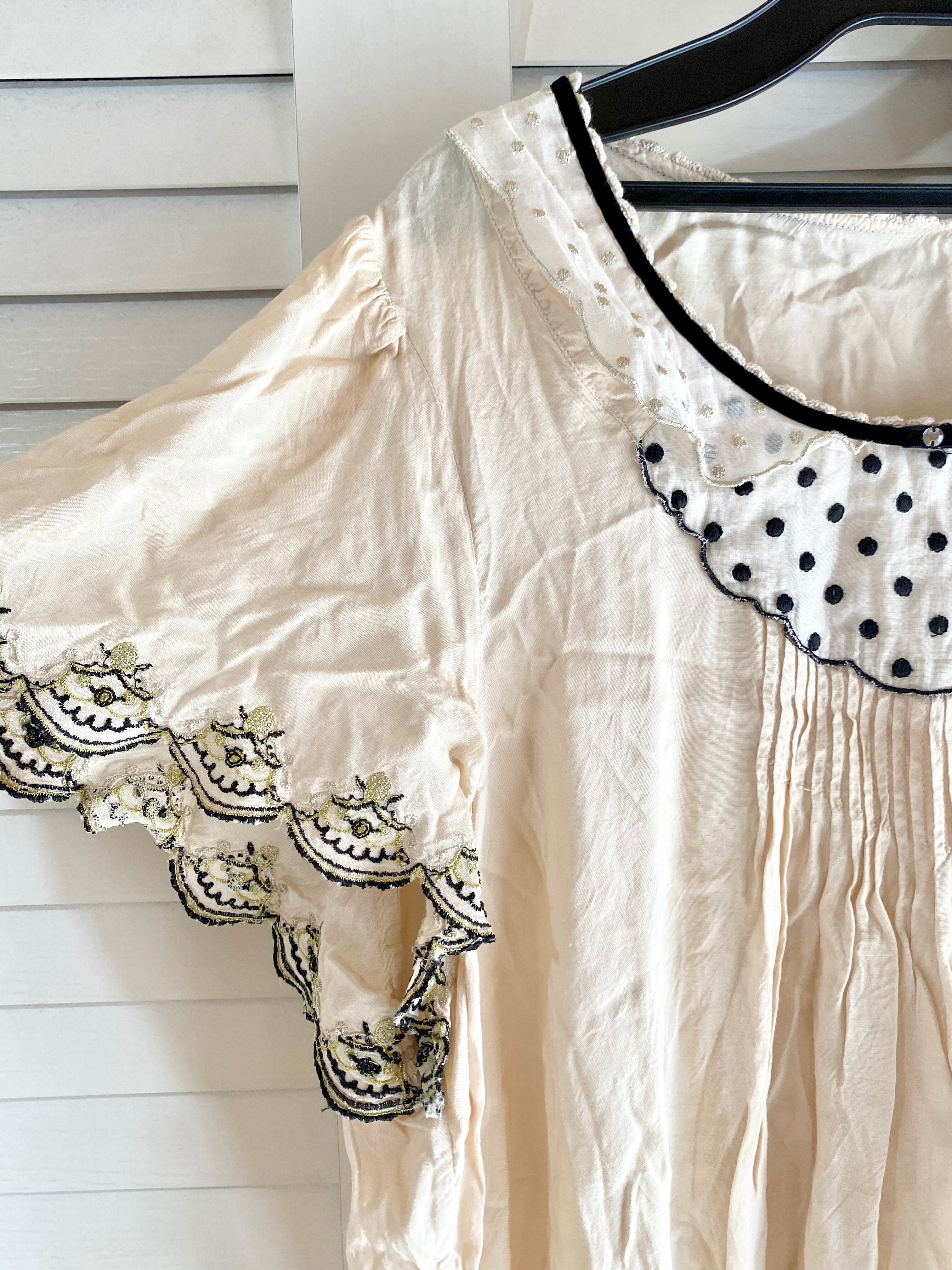 #216 Franche Lippee サーカステント刺繍レース ドットカラー&ヨーク フレアーブラウス アンティーククリーム