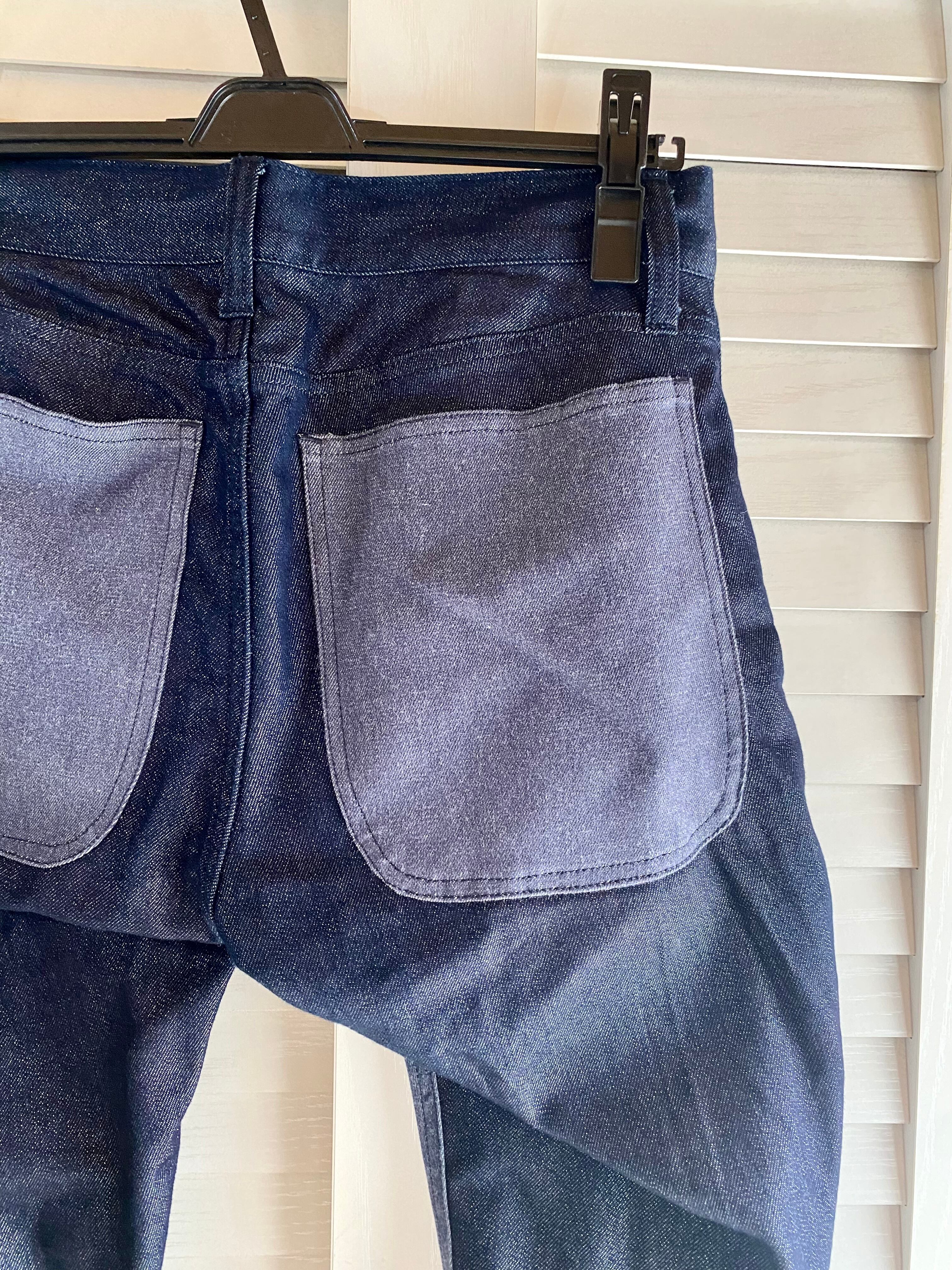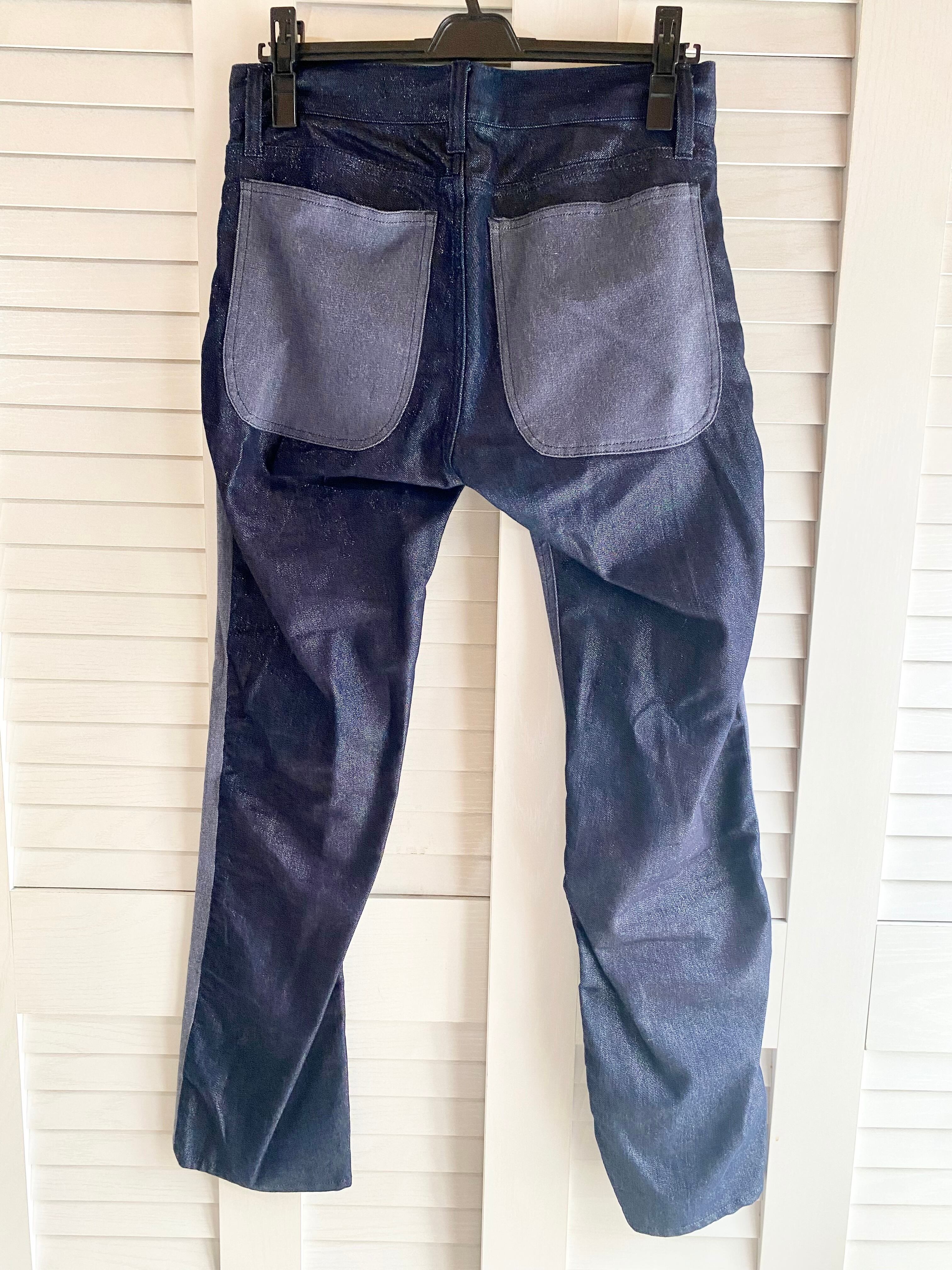 #216 TSUMORI CHISATO バイカラーラメデニム ストレートストレッチパンツ インディゴ