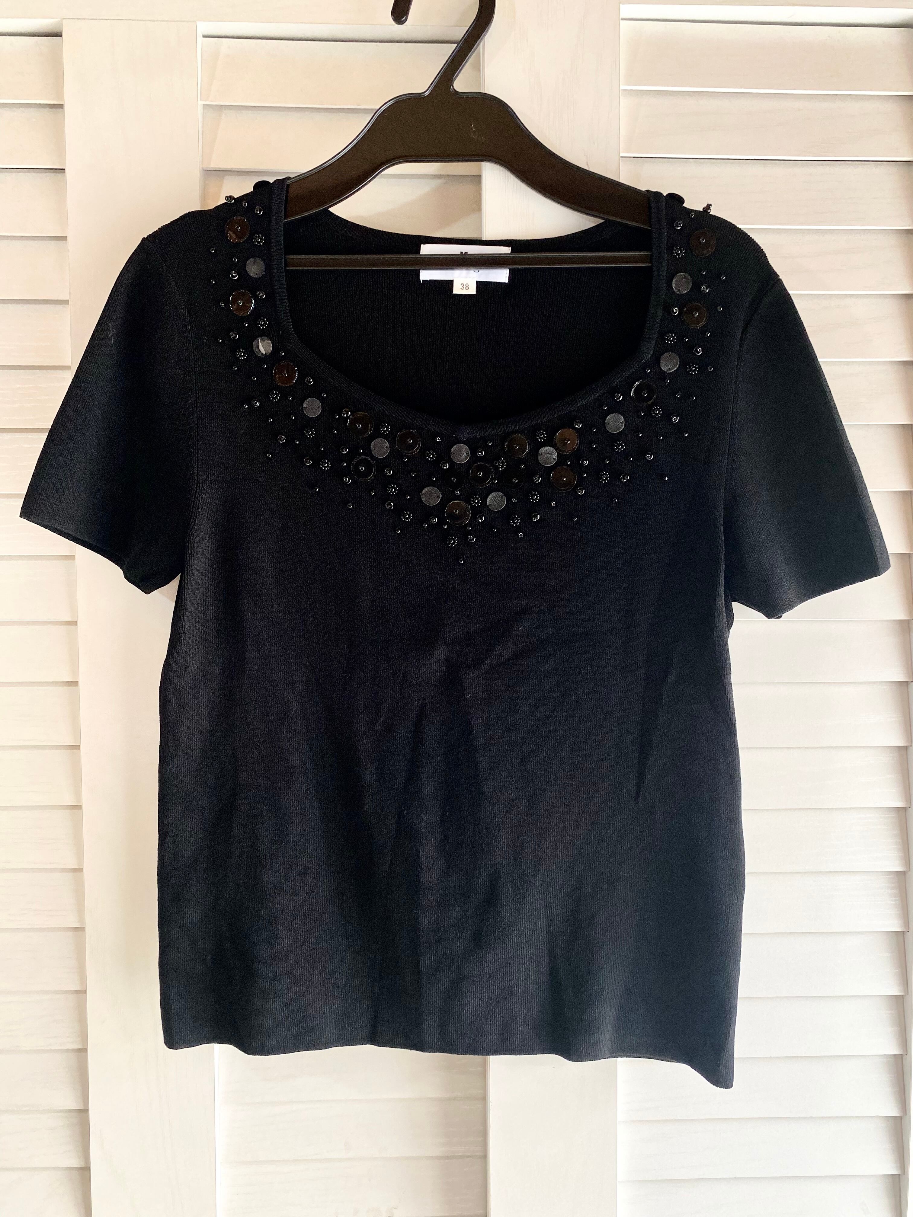 #216 courreges ビジューデザイン レーヨンナイロンニット アンサンブルプルオーバートップス ブラック