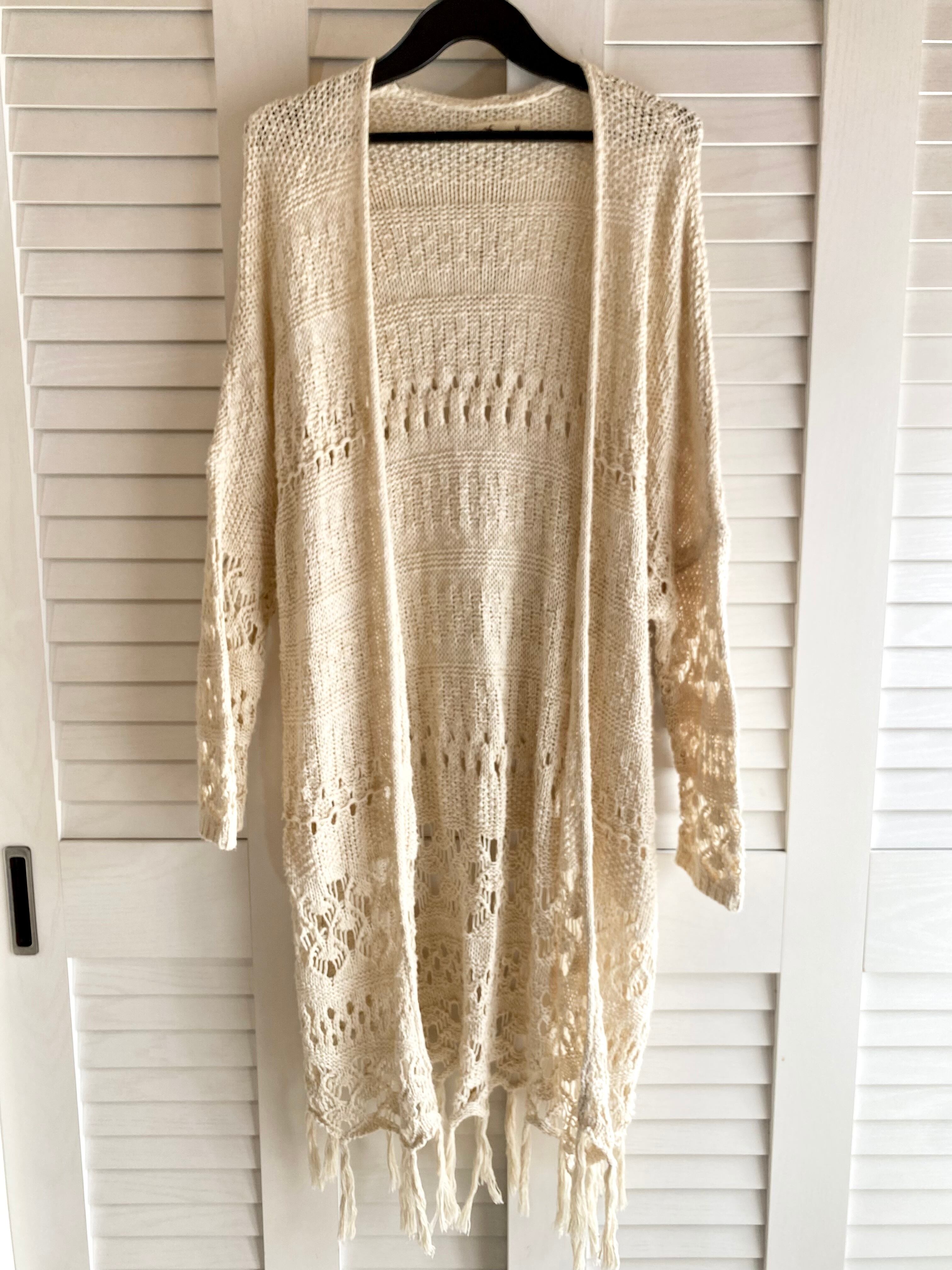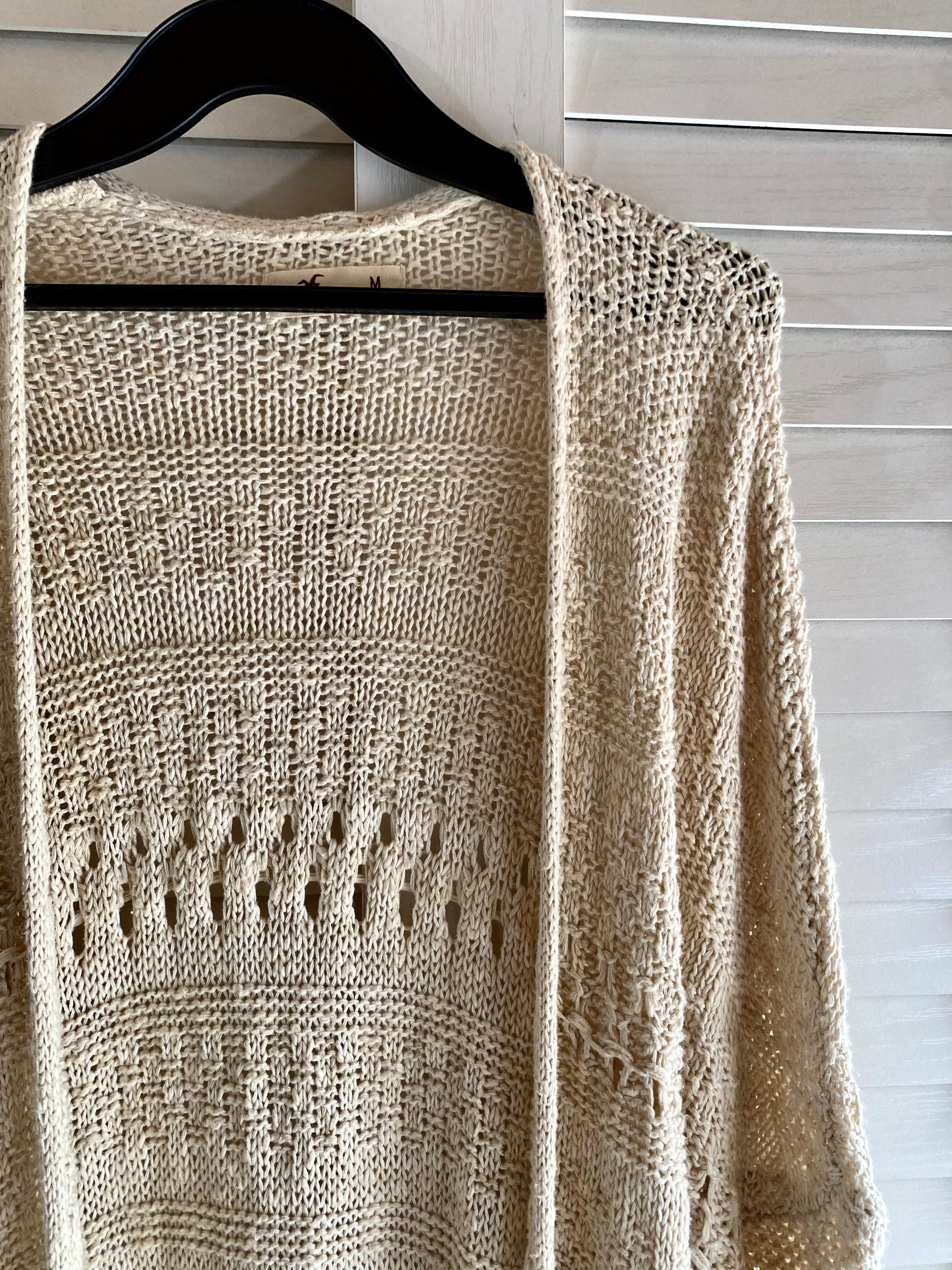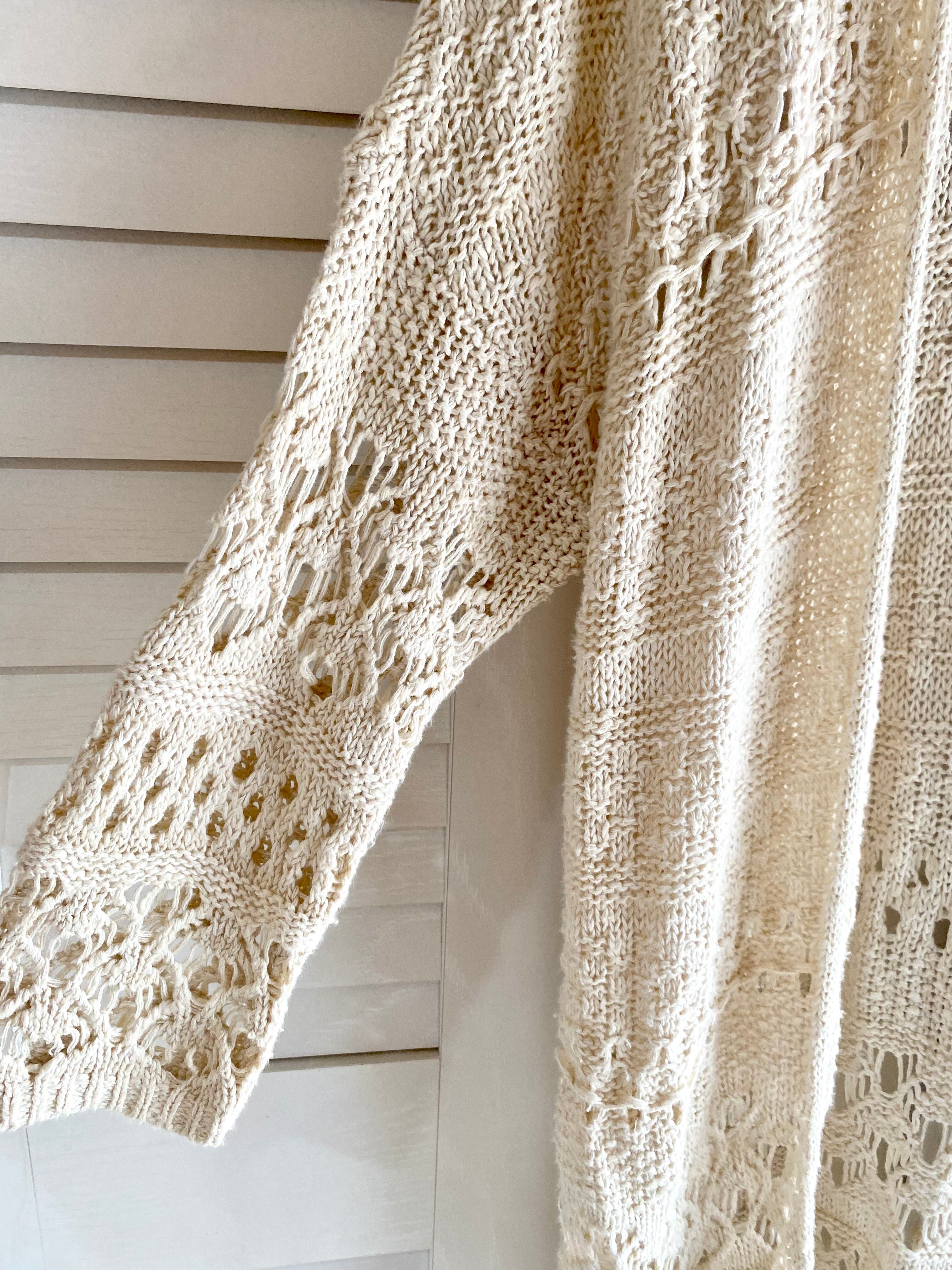 専用◎#216 HOLLISTER 透かし編みコットンニットロングカーデ アイボリー