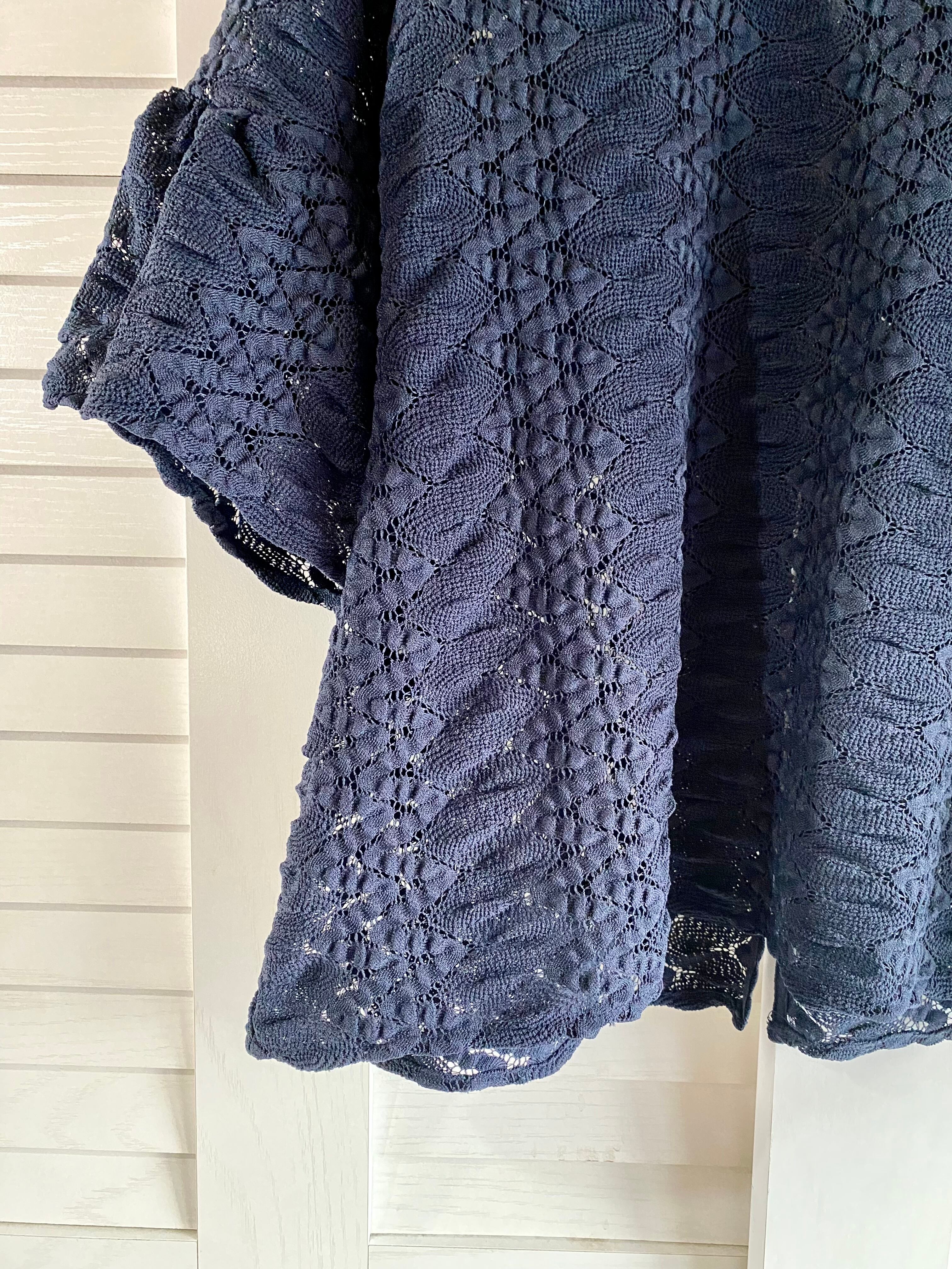 ★nano UNIVERSE ストレッチ総レースバックオープンブラウス ネイビー