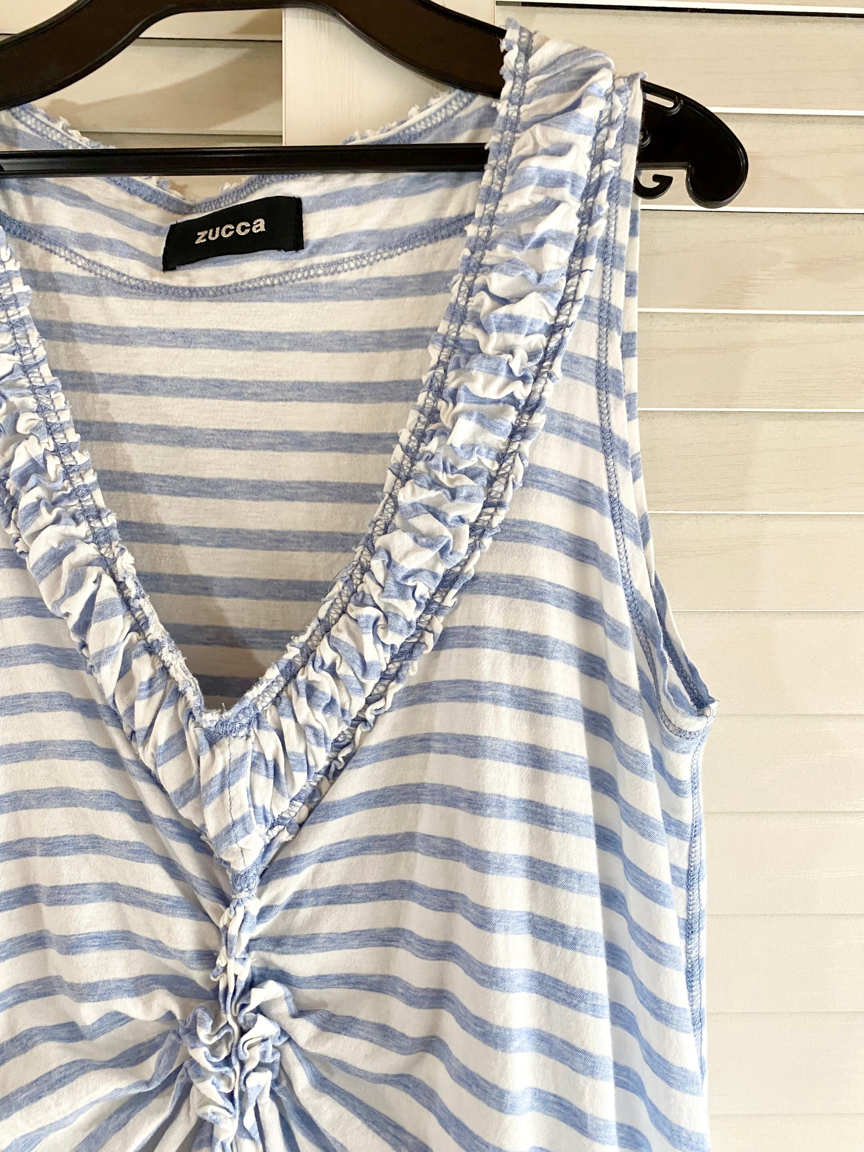 #217 ZUCCa デザイン天竺ボーダータンクトップ ライトブルー