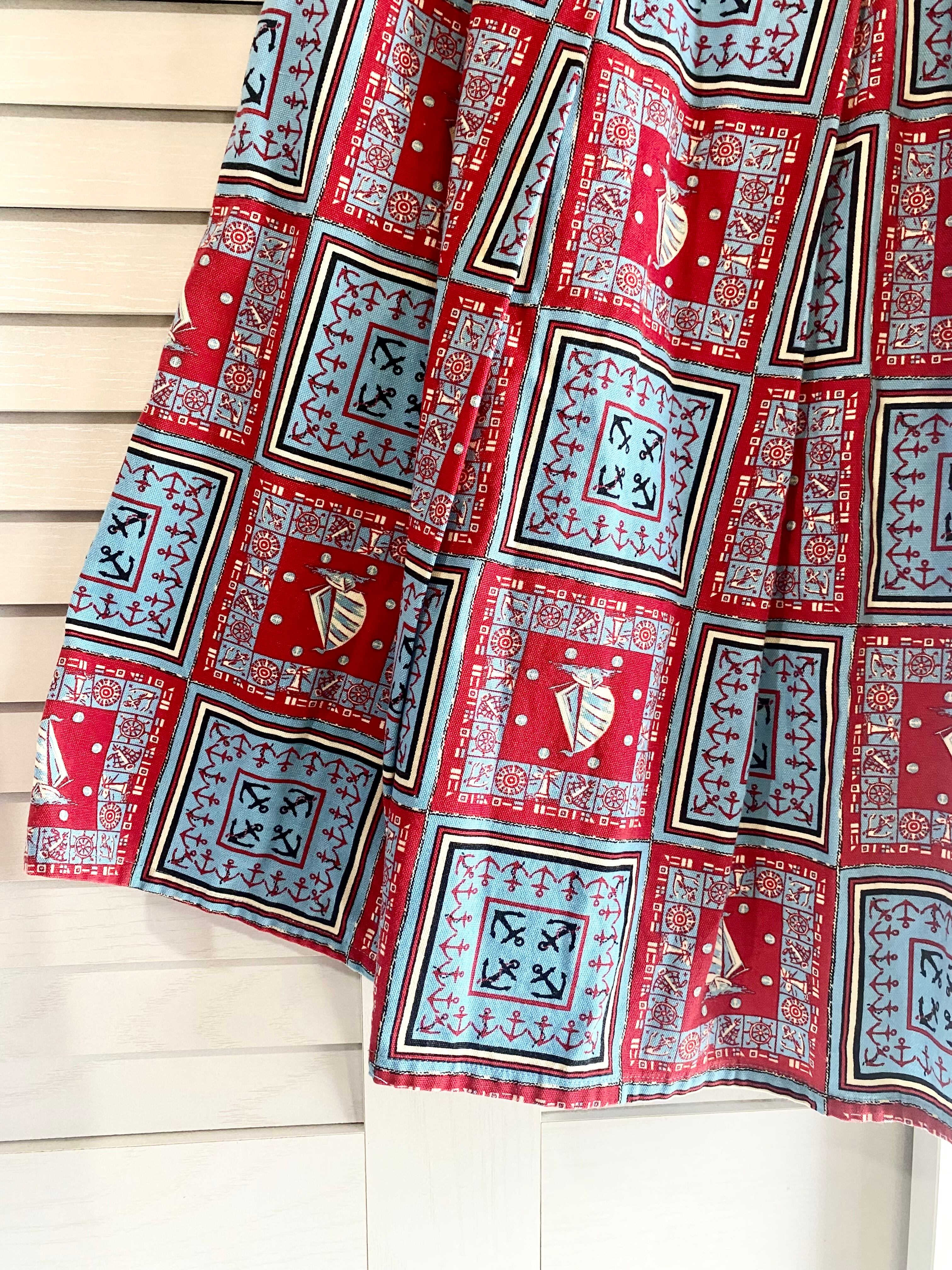 専用◎❤︎RUGGED FACTORY マリンバンダナ柄タックプリーツフレアースカート ライトブルー×レッド