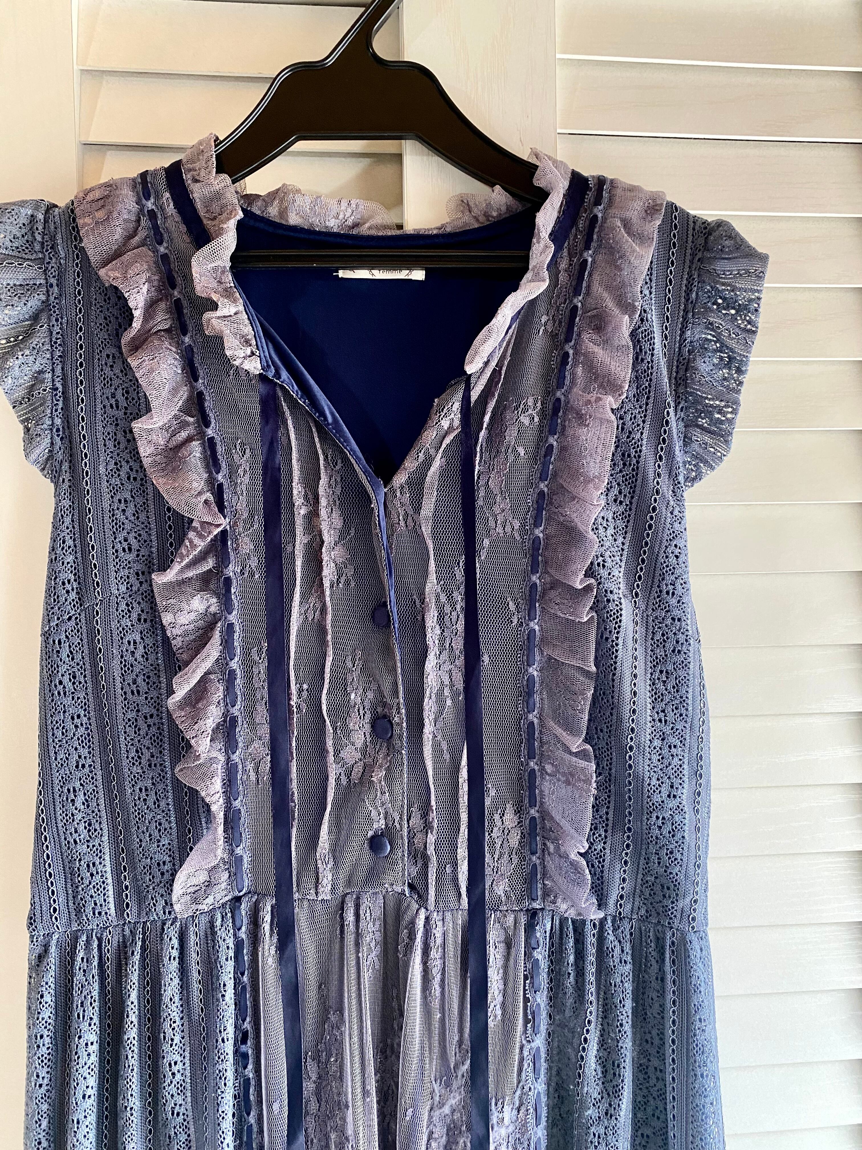 ★axes femme クラシカルストレッチチュールレース ノースリーブワンピ ネイビー×ブルーグレー×グレーベージュ