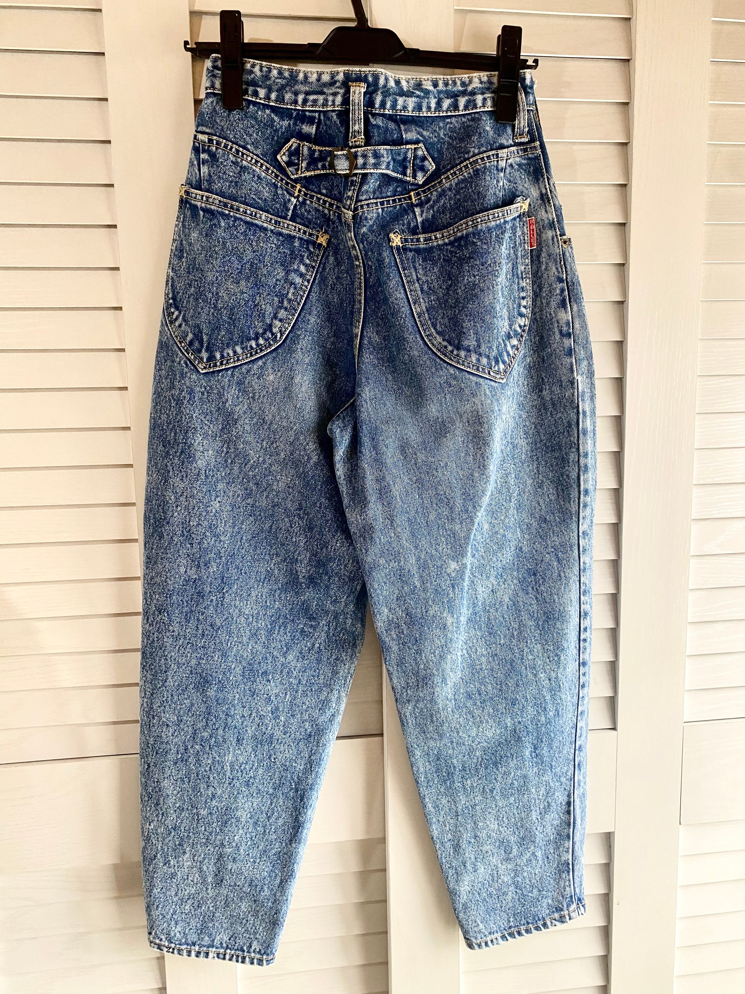 #227【古着屋購入】80Sヴィンテージ ケミカルデニム デザインペグトップジーンズ ブルー