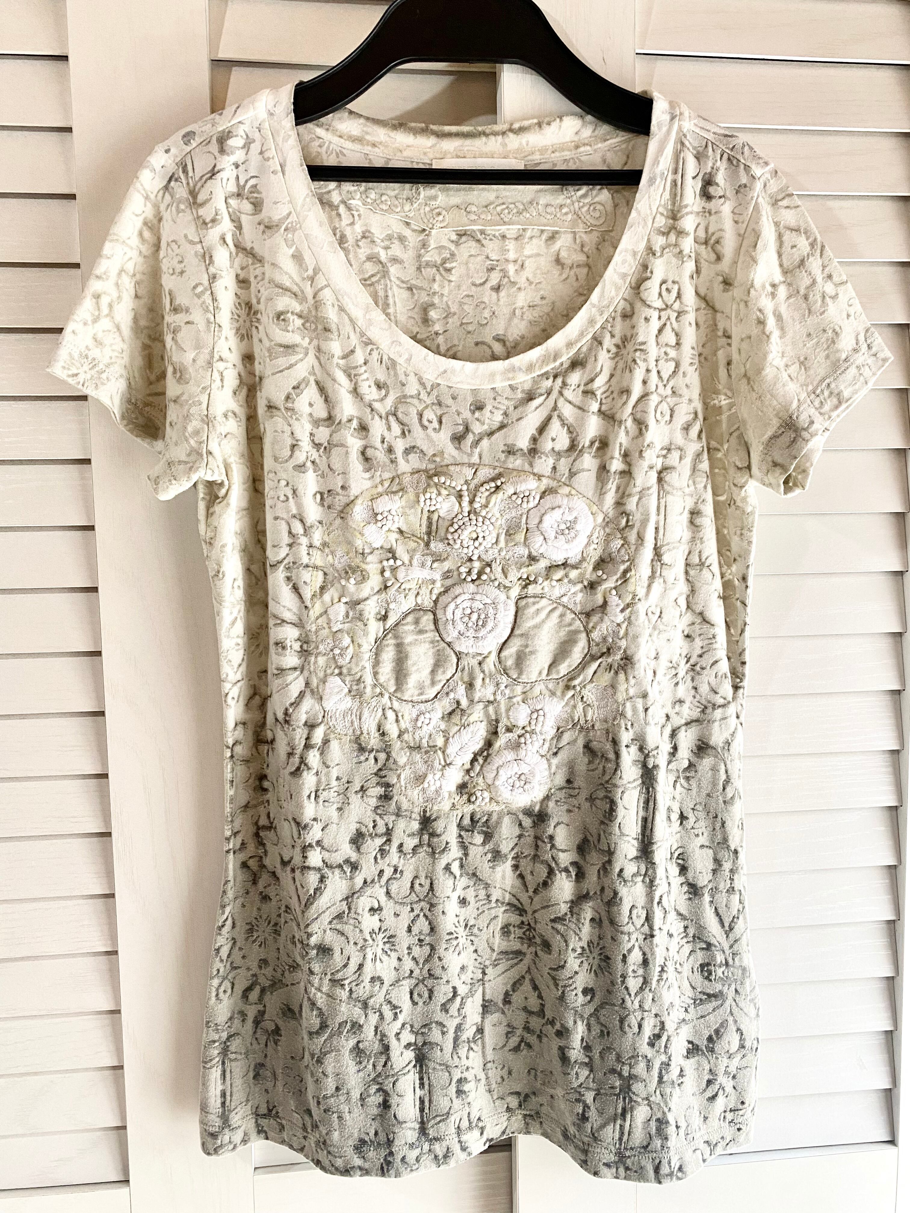 ❤︎ SCERVINO 定価3万!アラベスク透かしジャガード グラデ染め刺繍カットソー クリーム