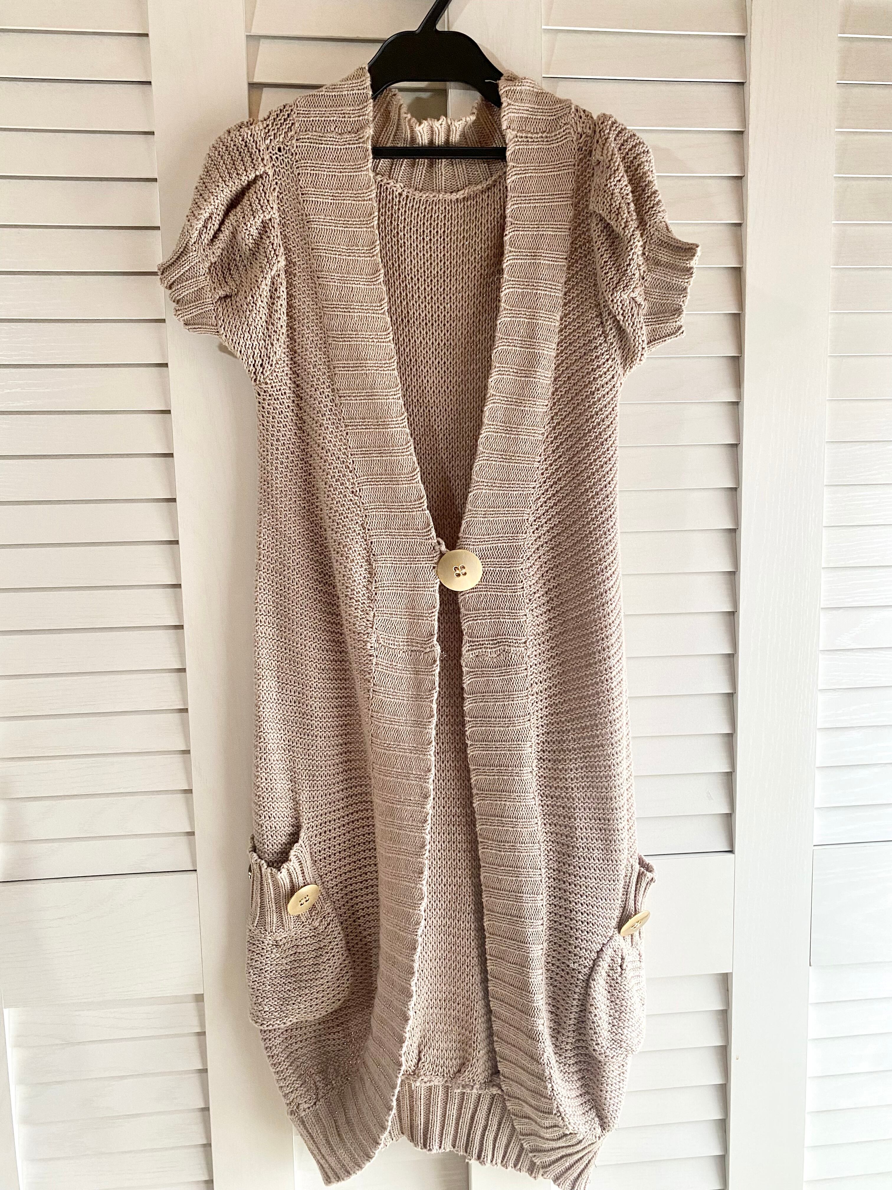 専用◎★GRACE CONTINENTAL BIGボタン ゴールドヤーン入り コットンポリミドル丈カーデ ベージュ
