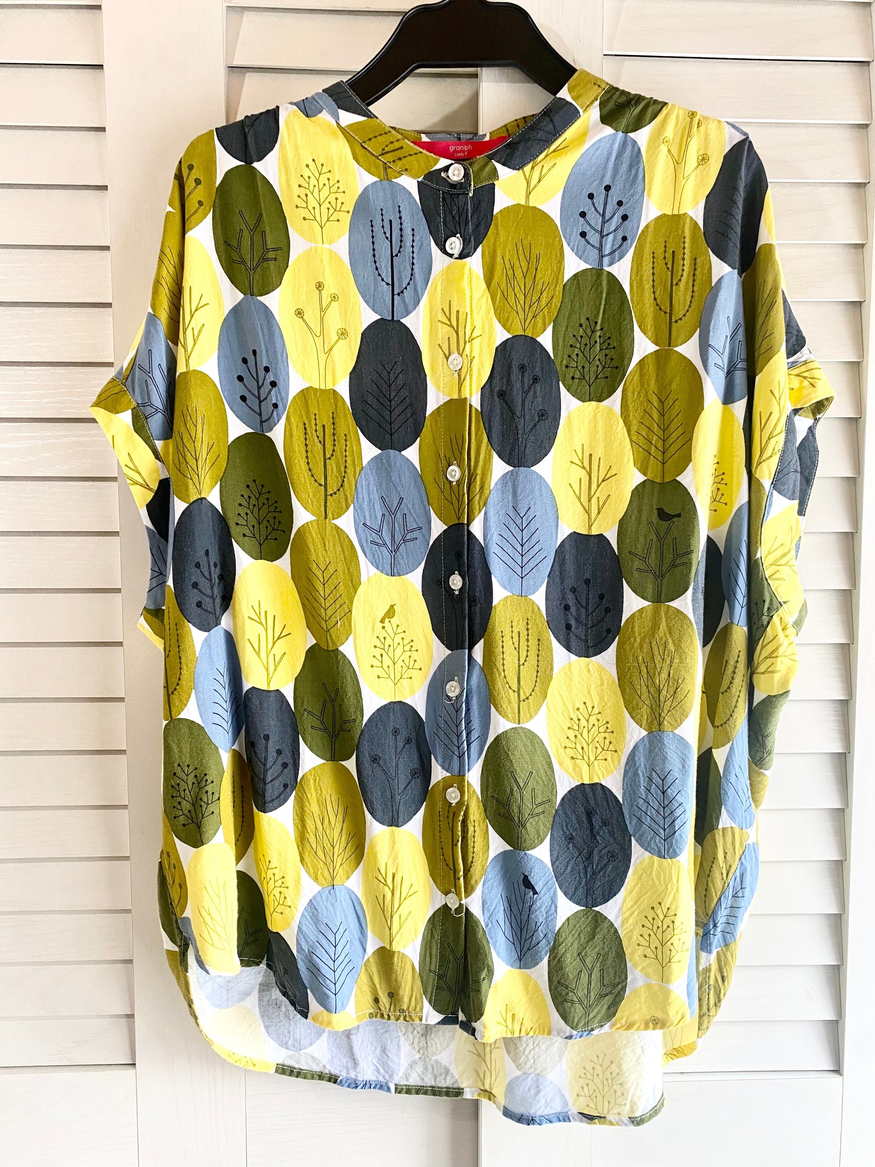 #218 graniph 北欧 森プリント フレンチスリーブ レーヨンブラウス イエロー
