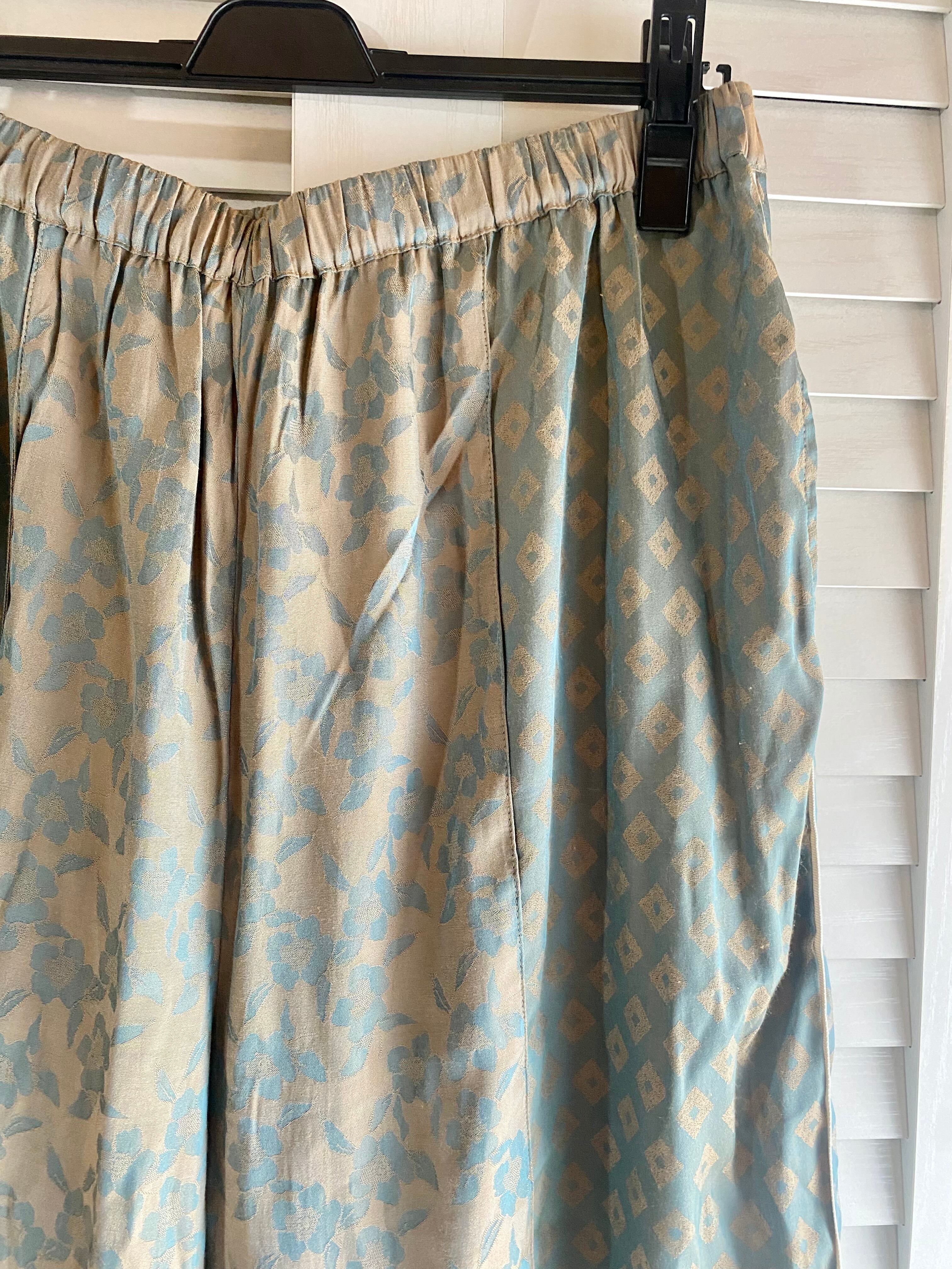 #218 AS KNOW AS シャンブレージャガードサテンコンビ ルーズワイドパンツ ターコイズブルー×ベージュ