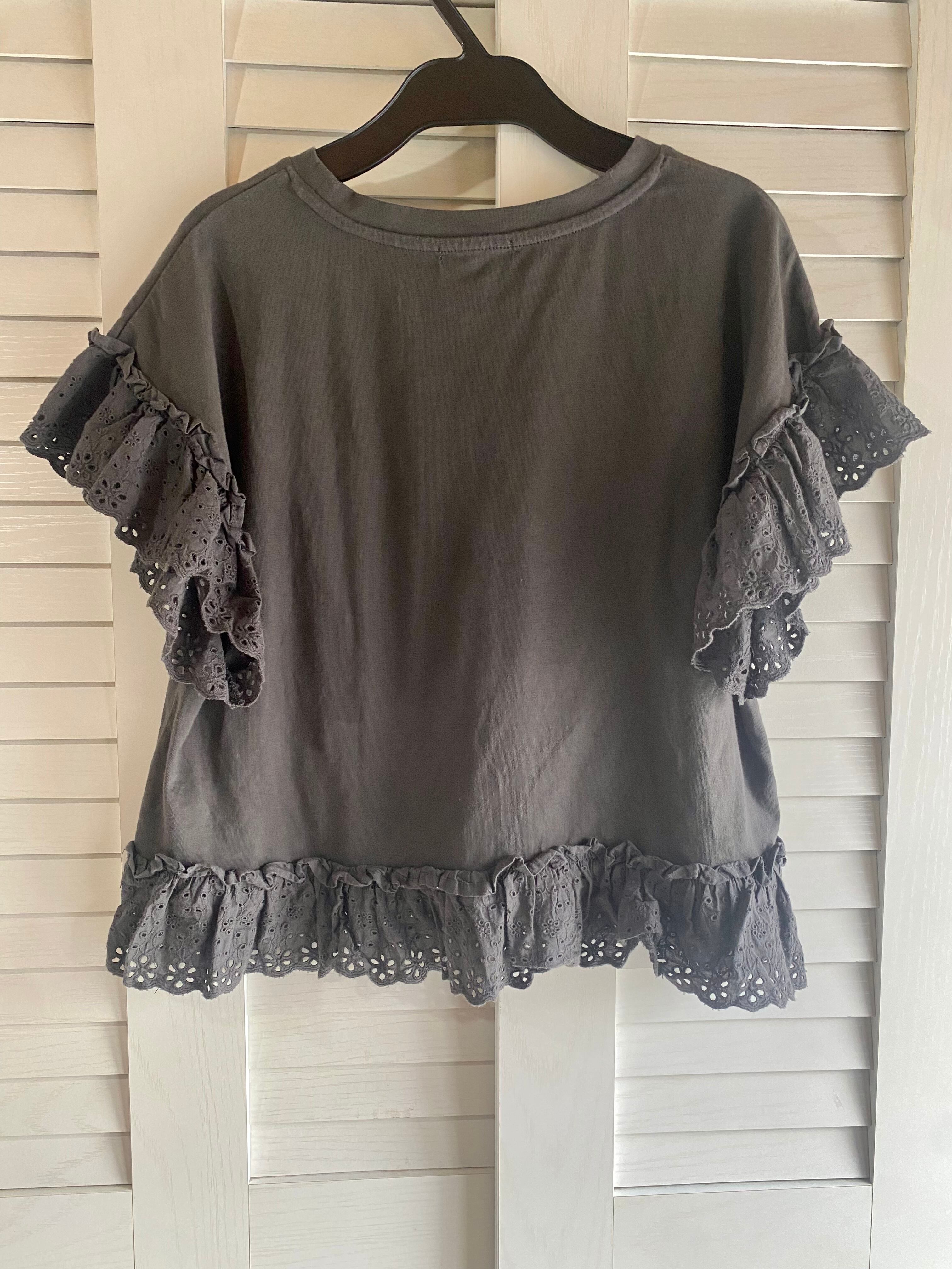 #218 OLIVE des OLIVE リアルフラワープリント カッティングレースヘムカットソー スミクロ