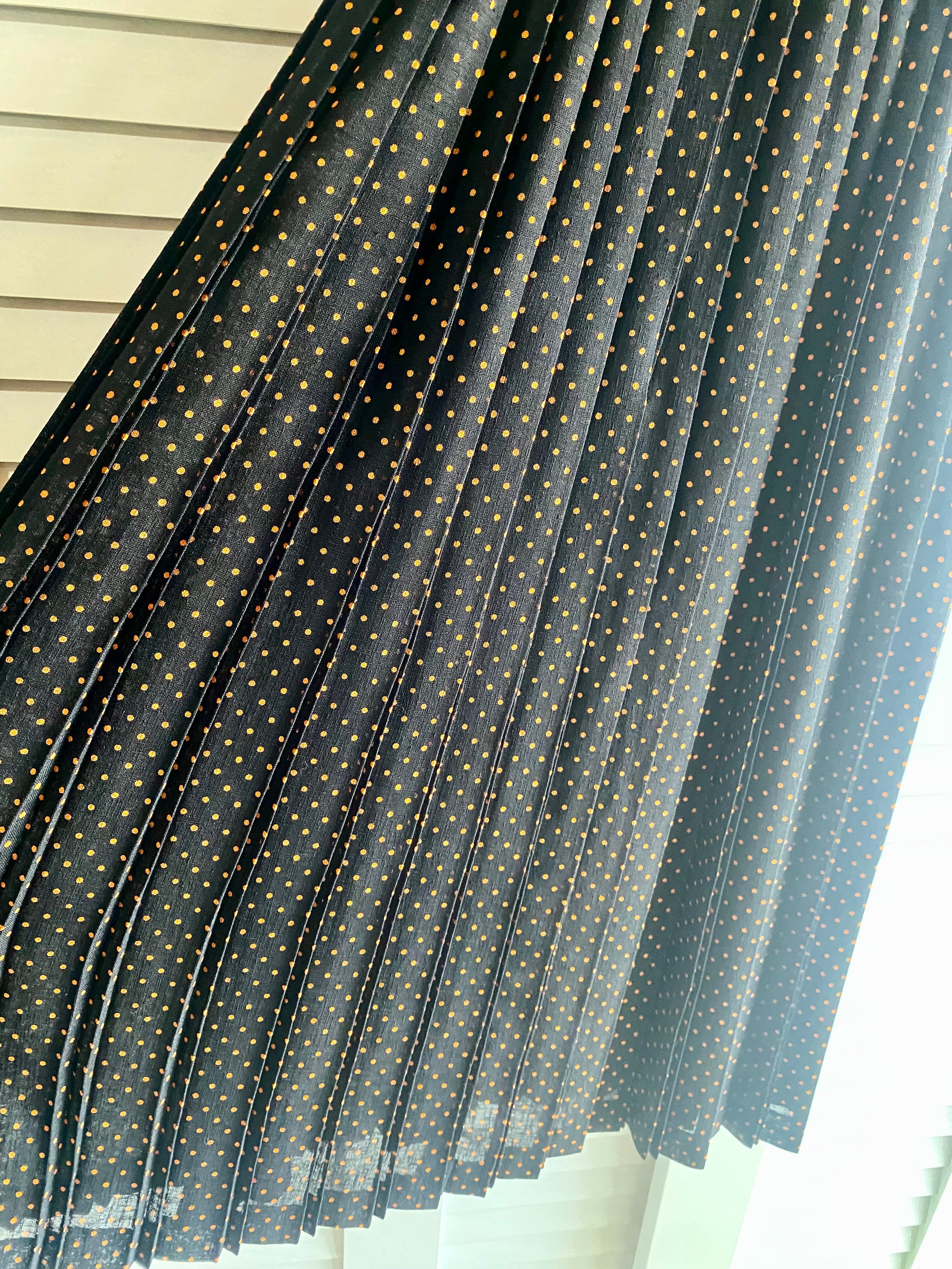 #218【古着屋購入】60s70sヴィンテージ 落ち葉刺繍レース ドットプリーツワンピ ブラック