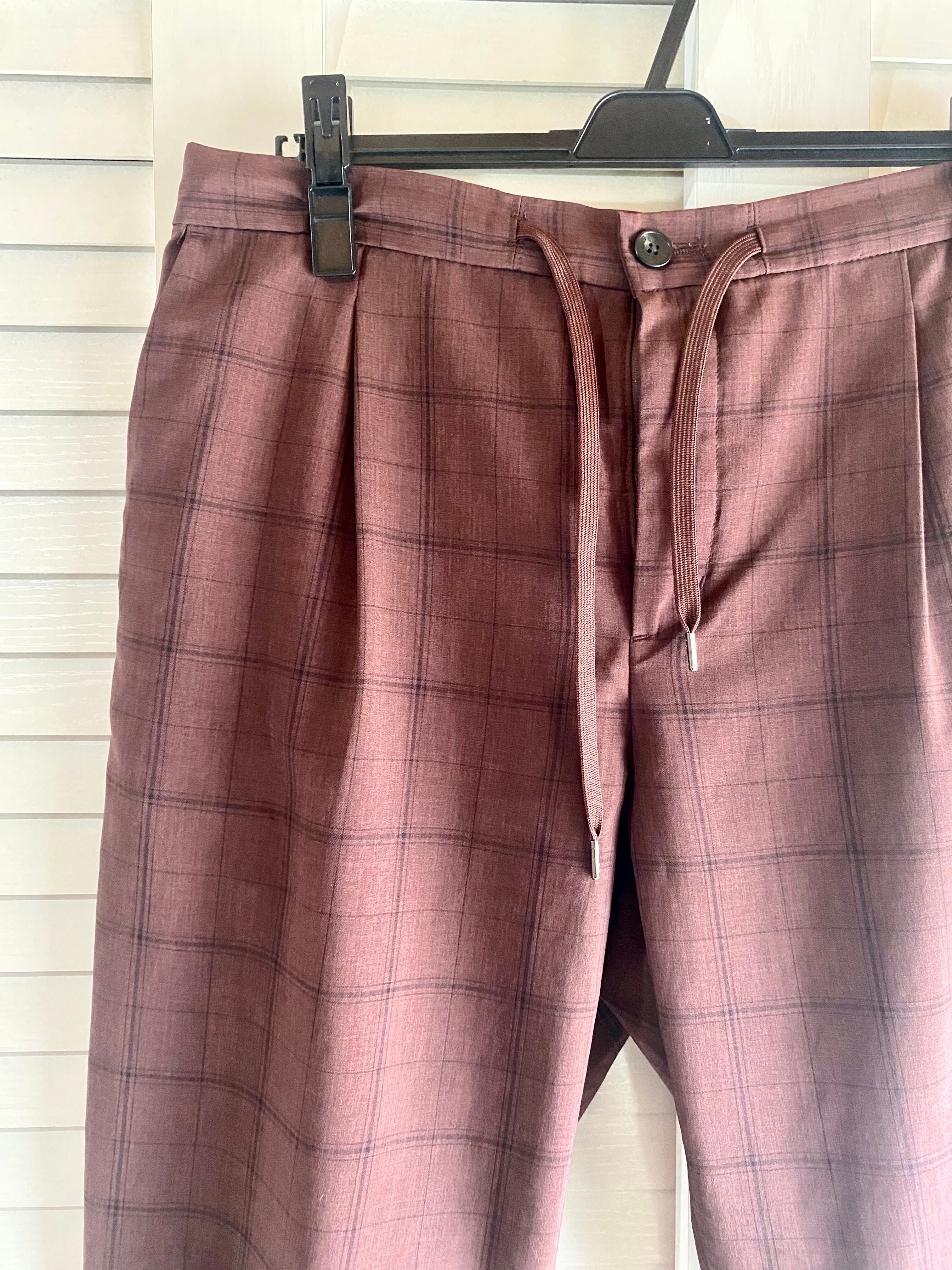 #218 GLOBAL WORK ペンシルチェック ワンタックテーパードパンツ ブラウン