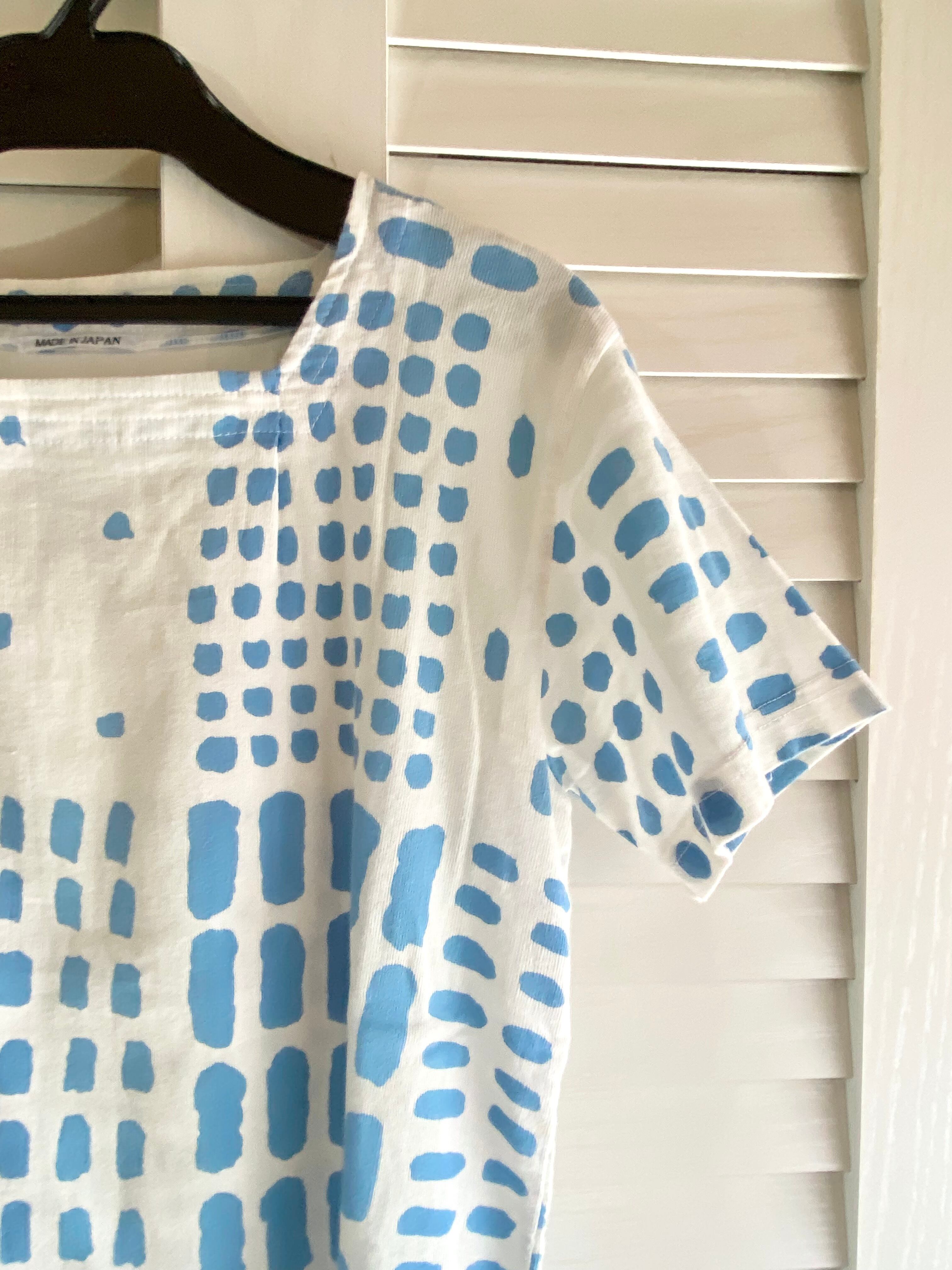 #219 SOUSOU 高橋織物コラボ アートプリントTシャツ オフホワイト×ライトブルー