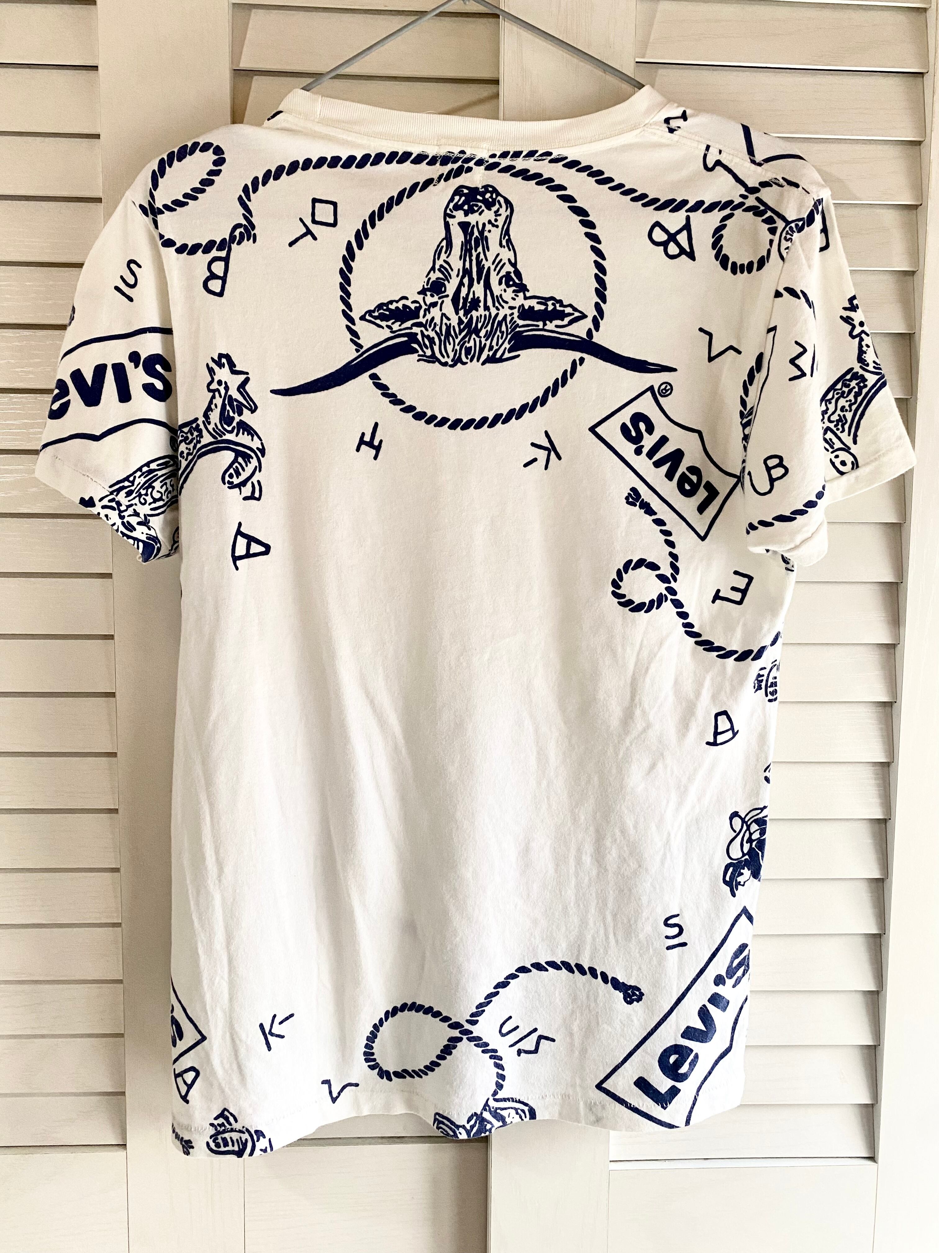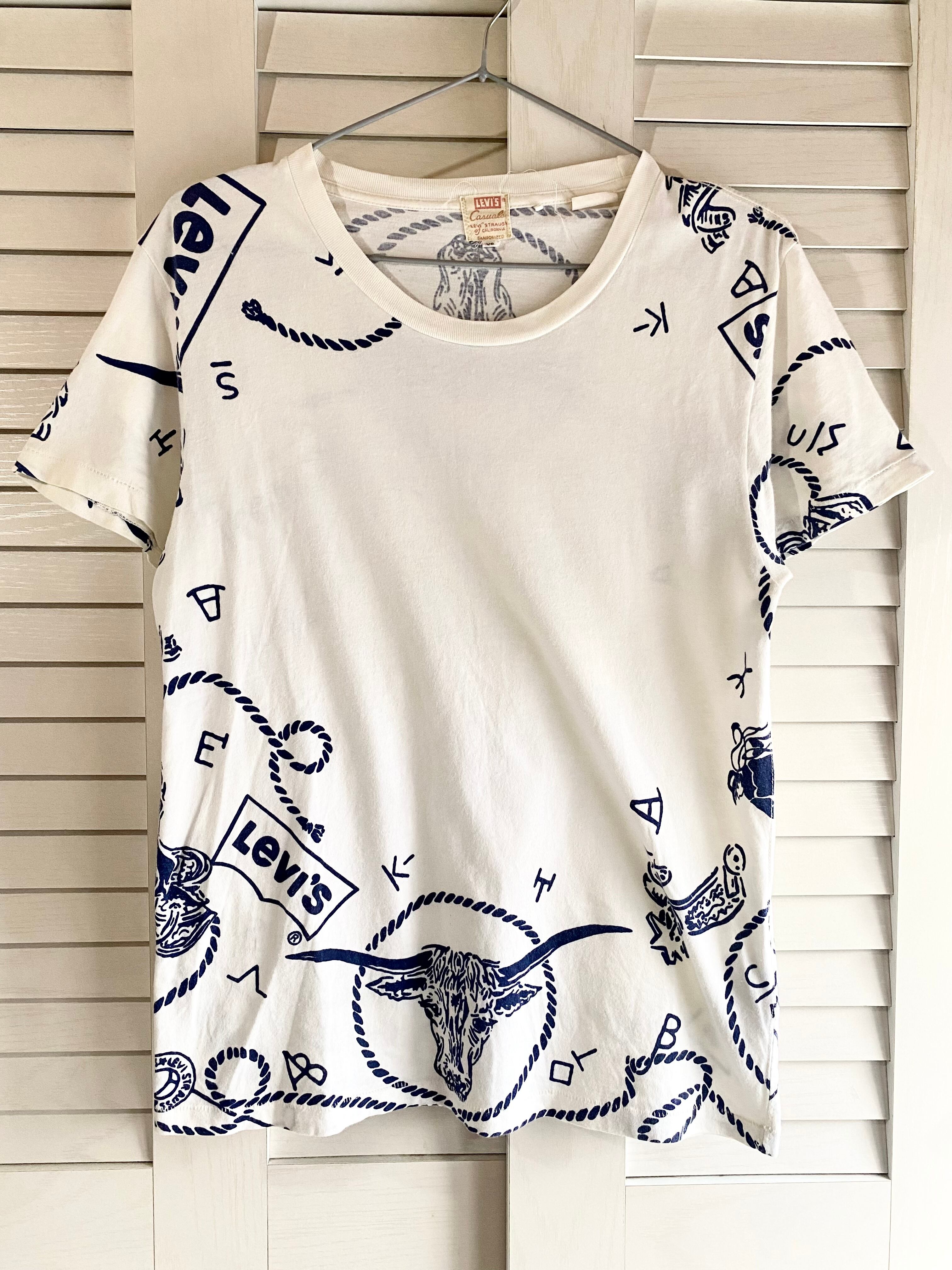 #220【古着屋購入】激レア!70sヴィンテージ Live's カウボーイプリントTシャツ オフホワイト×ネイビー